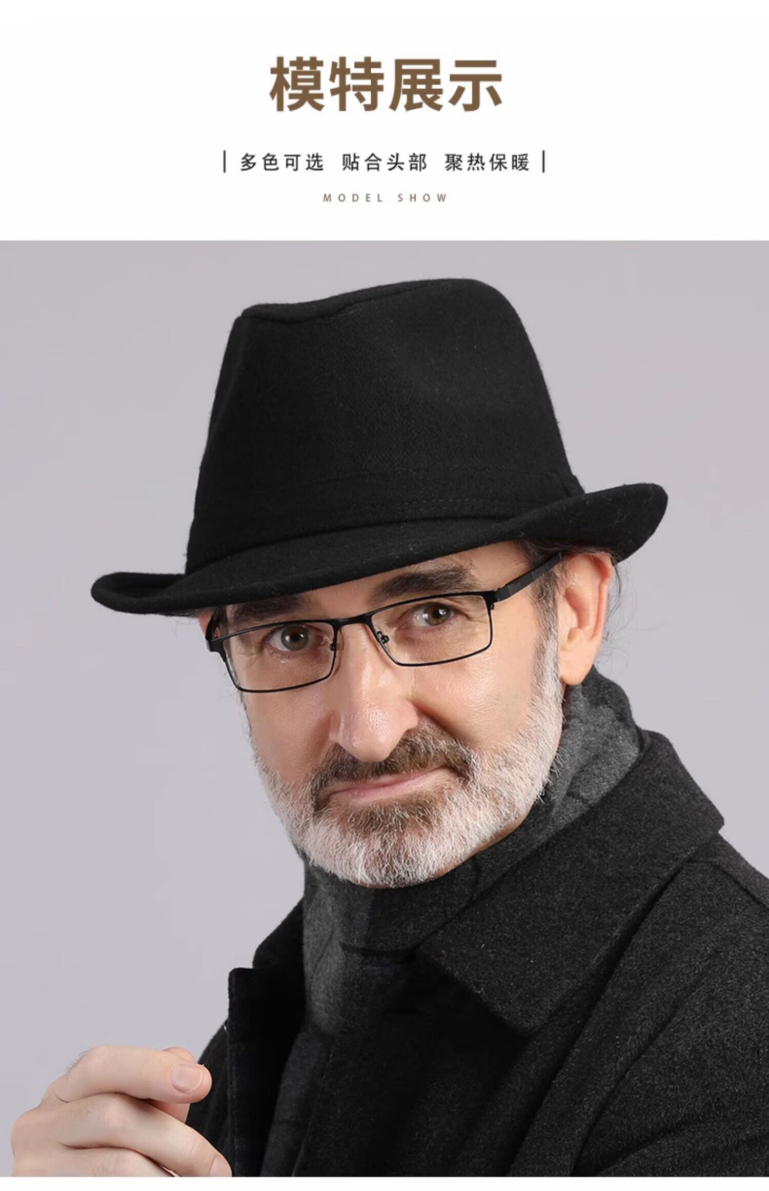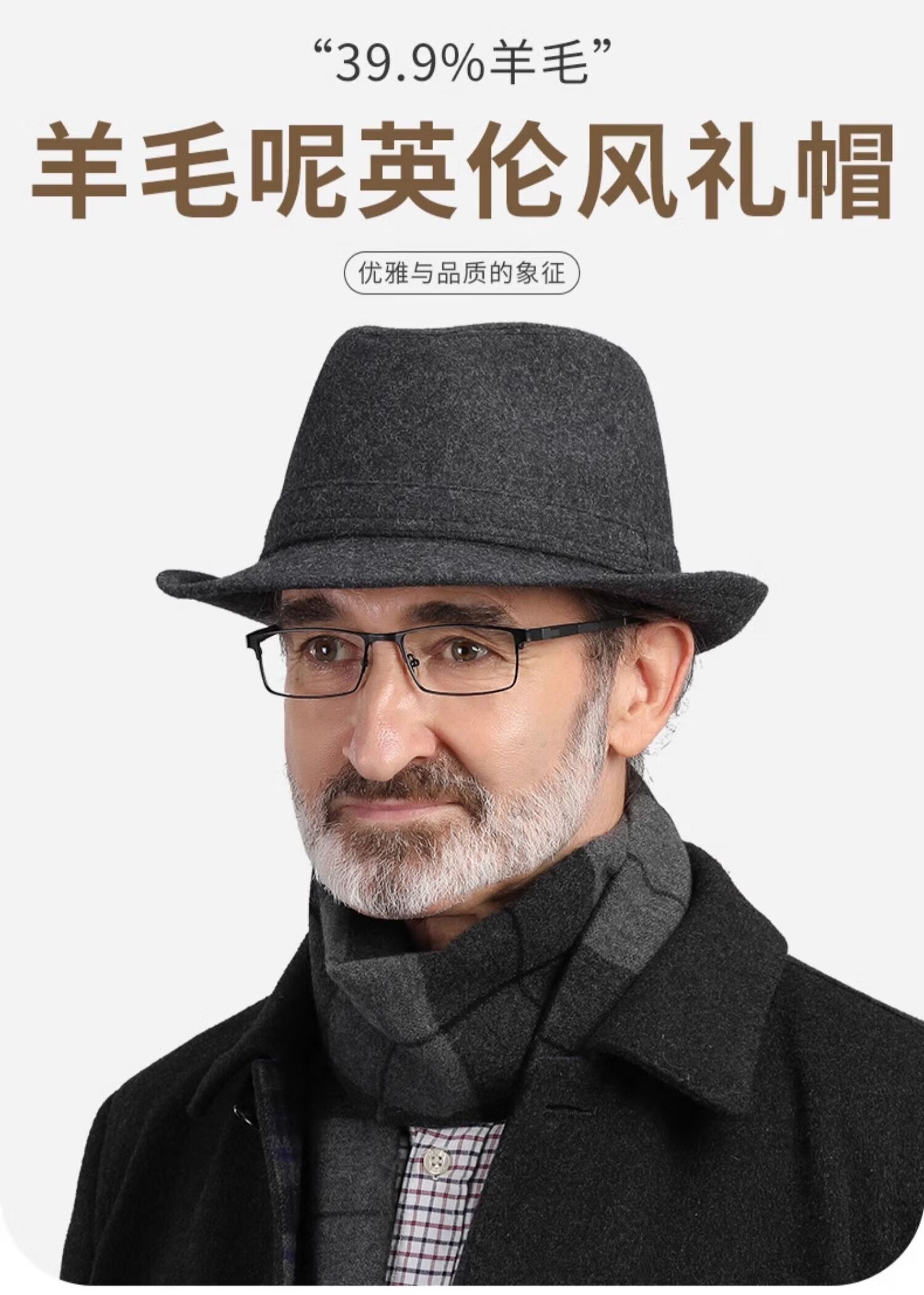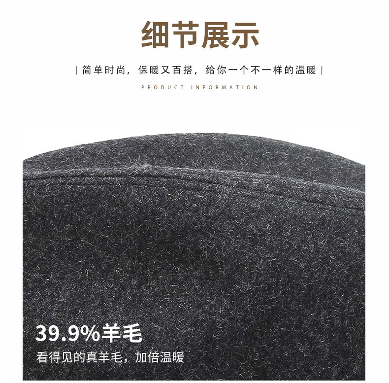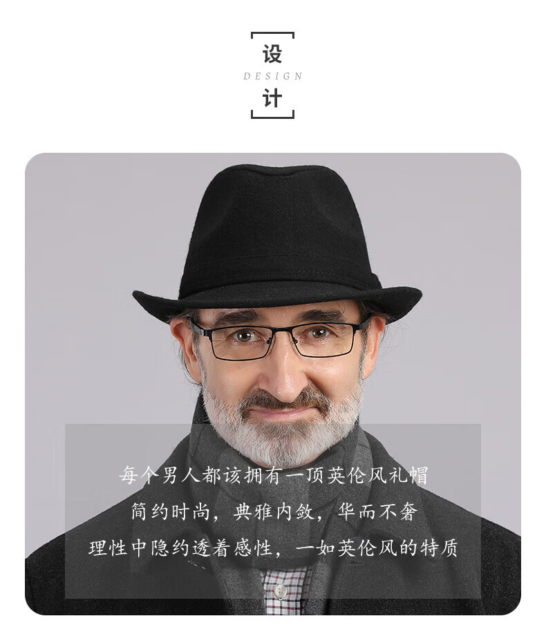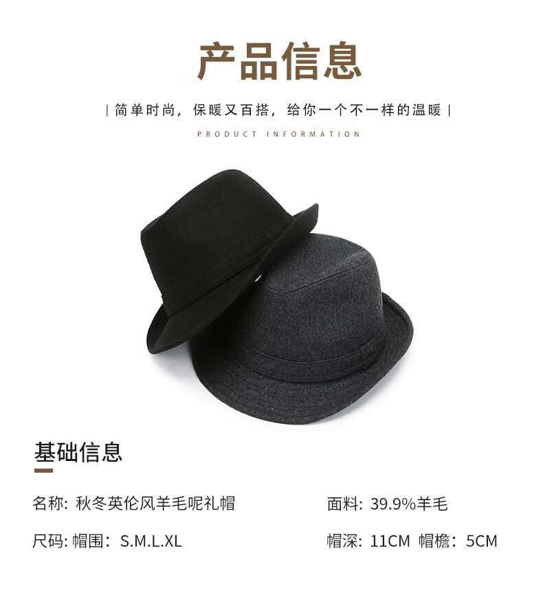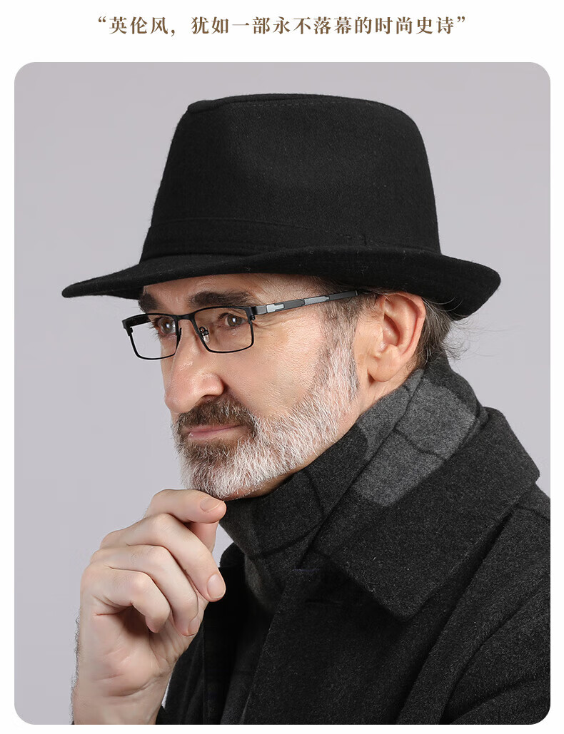 What a cool top hat for middle-aged and elderly men, high-end spring and autumn woolen woolen warm jazz hat, winter dad and elderly retro gentleman hat, dark gray S (55-56cm)