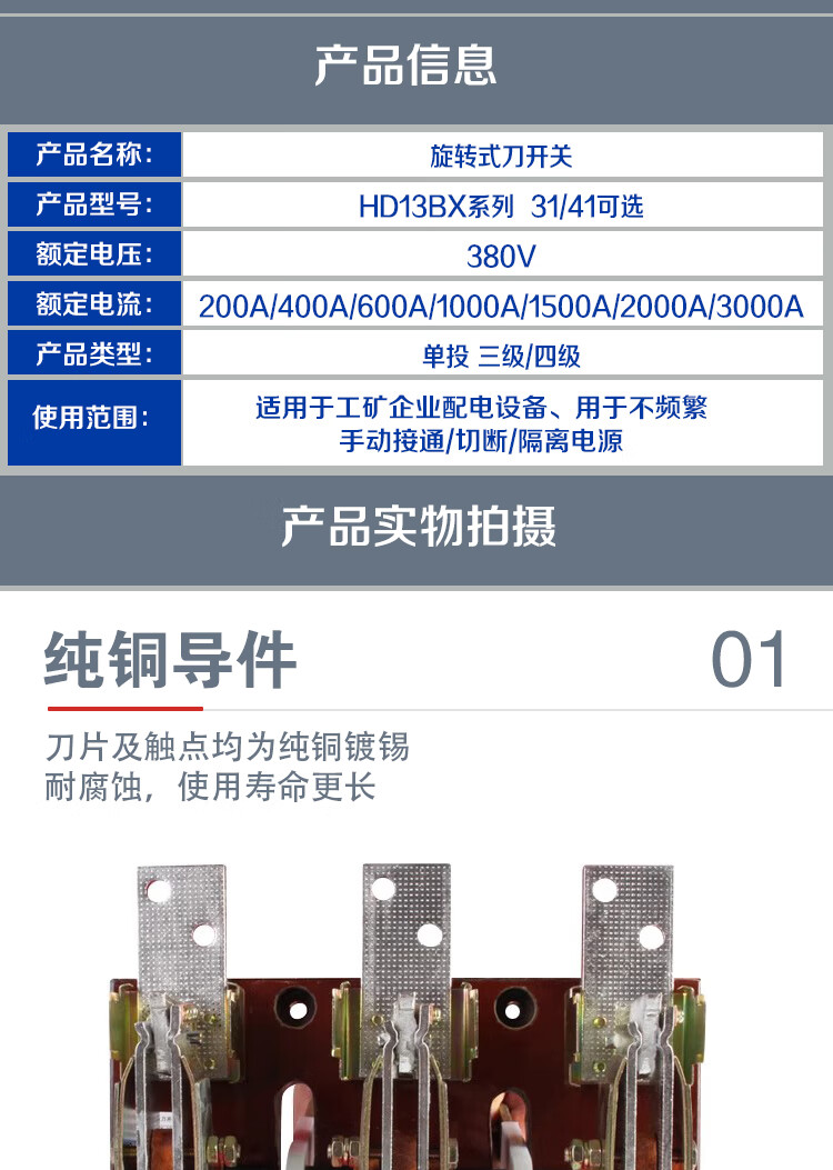 1000A Knife Switch Rotary Switch Copper Parts Isolating Switch Three-Phase Knife 1000A Knife Switch Rotary Switch