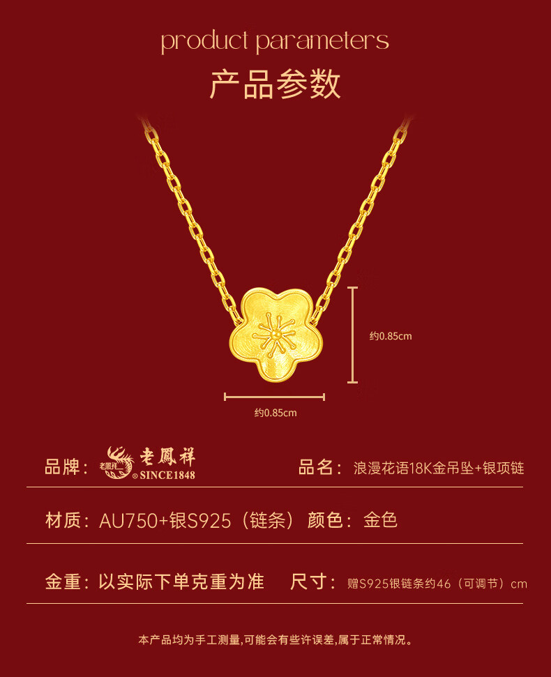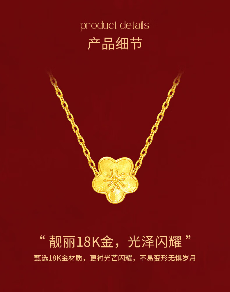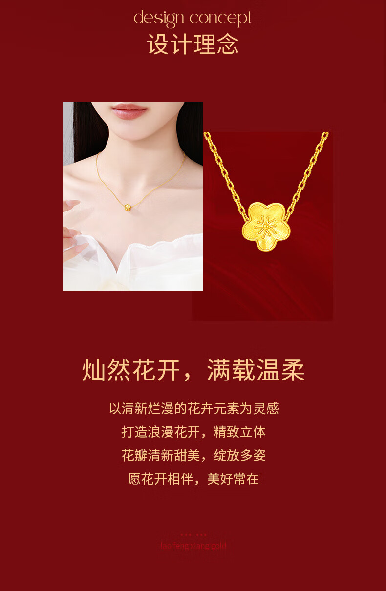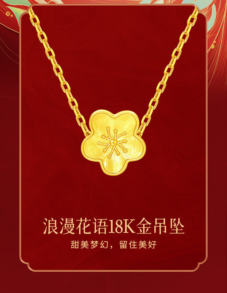 Lao Fengxiang 18k gold pendant for girls, peach blossom clavicle chain, high-end anniversary birthday gift for girlfriend and wife, romantic and versatile new 18K gold pendant + silver necklace + brand gift box + certificate