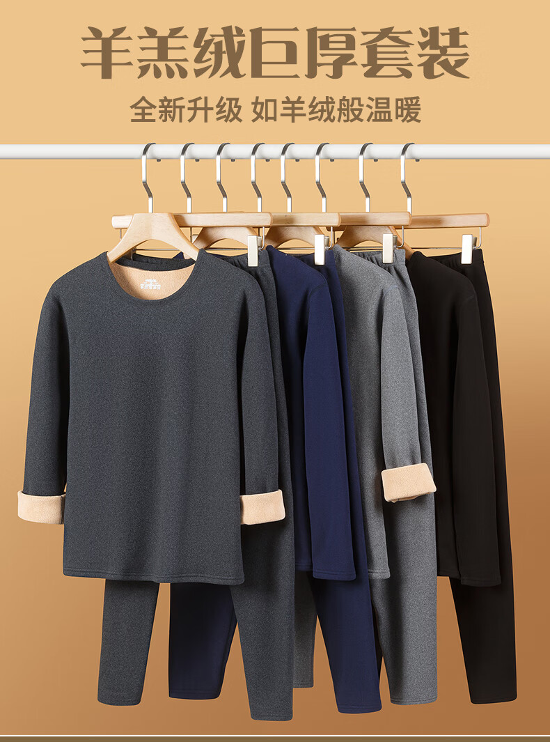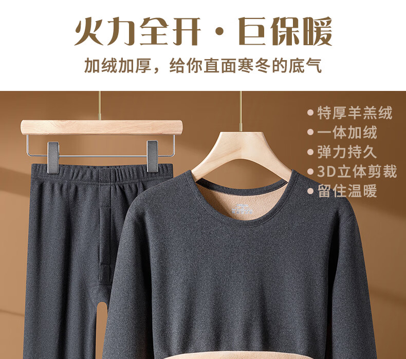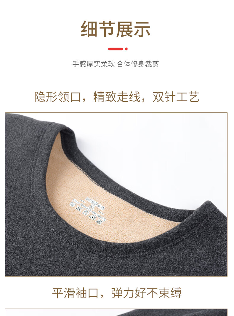 Camel hair thickened winter thermal underwear set men's thickened velvet heating autumn clothes long johns bottoming shirt inner layer camel hair thick warm light gray \half turtleneck 2XL recommended 130-150Jin Jin equals 0.5 kg