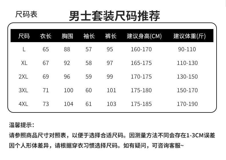 China (cm) 165 / 88-90 170 / 96-98 175 / 108-110 180 / 118-122 185 / 126-130