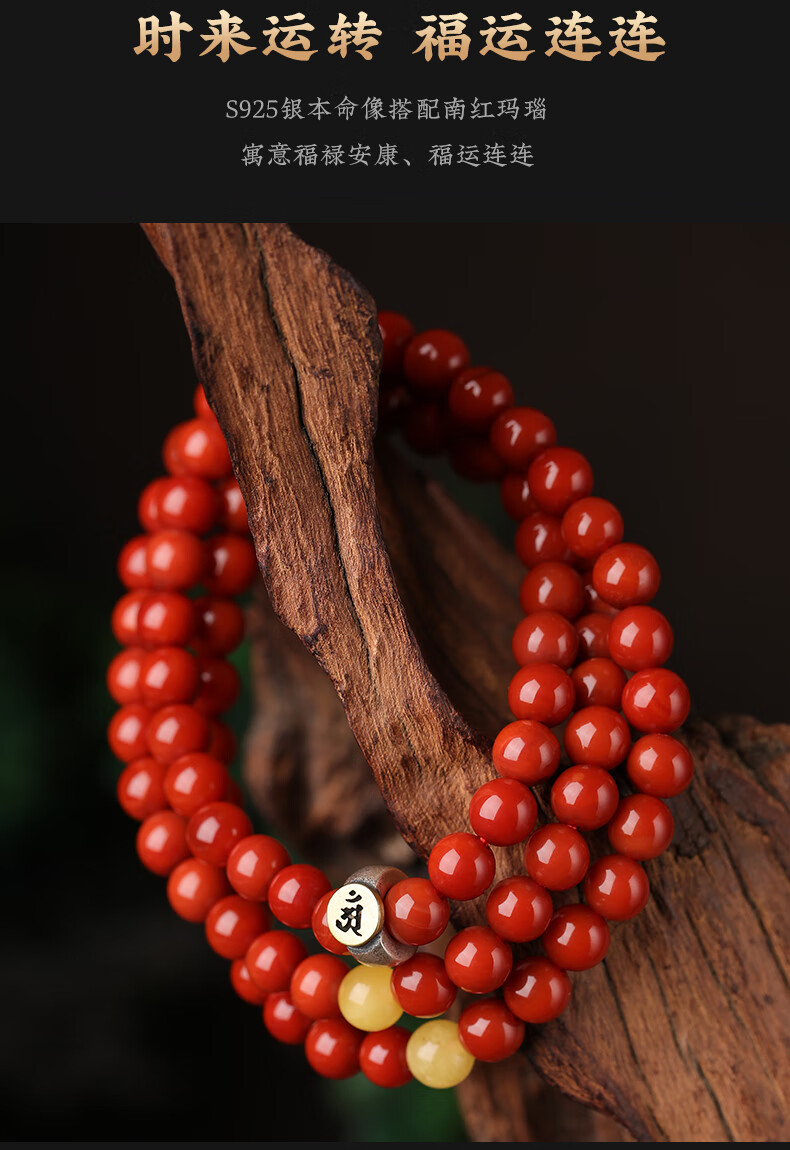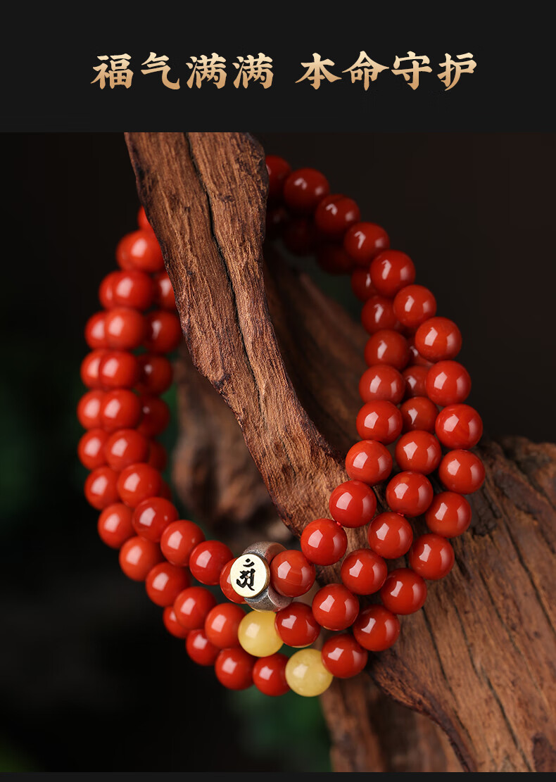 La Yun Feiyin Natural Southern Red Multi-circle Bracelet for Men and Women with Sichuan Materials Persimmon Red Agate Beeswax Bracelet for the Year of the Life and a Protective Buddha Bead. Nanhong Beeswax Multi-circle 6mm. Please note the zodiac sign when placing an order.