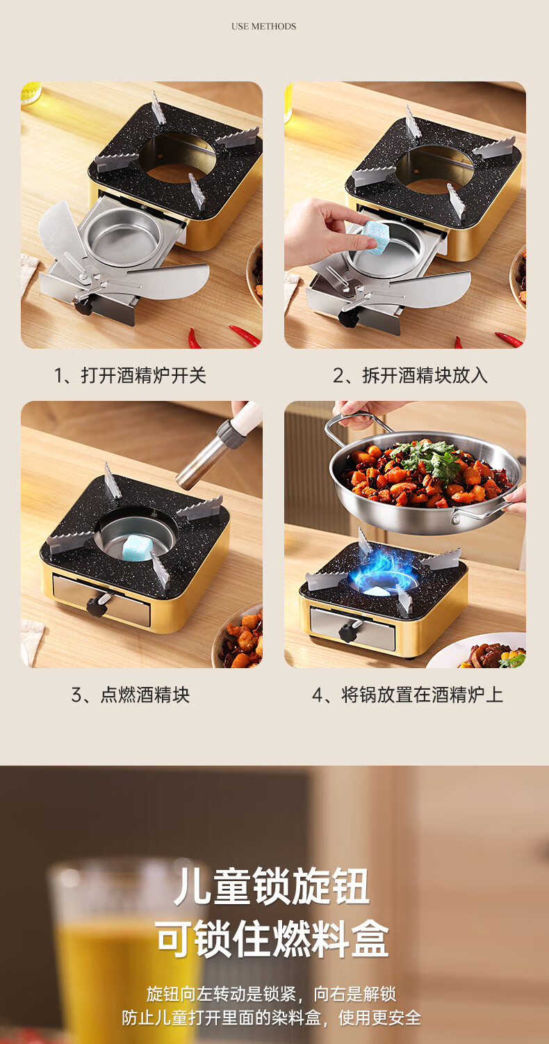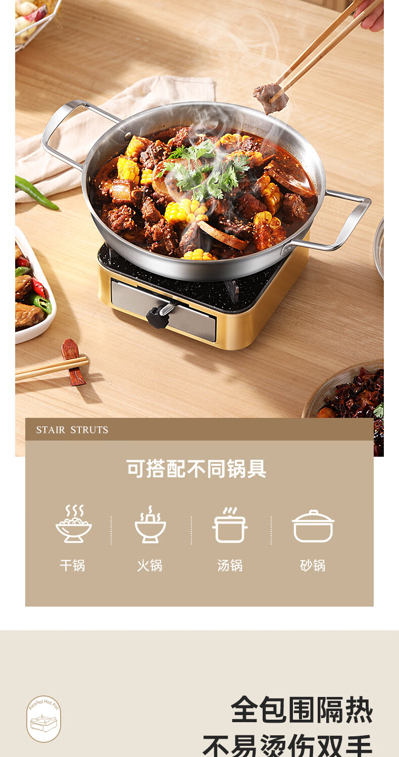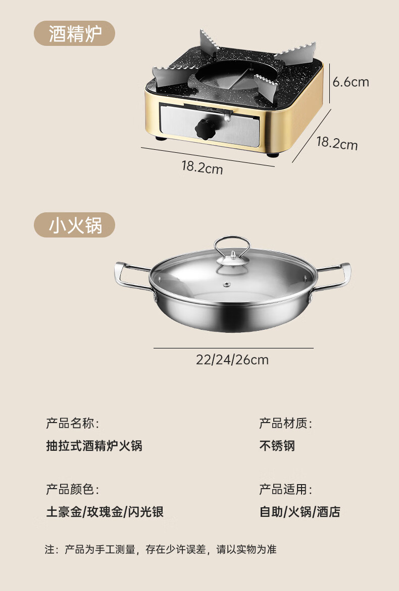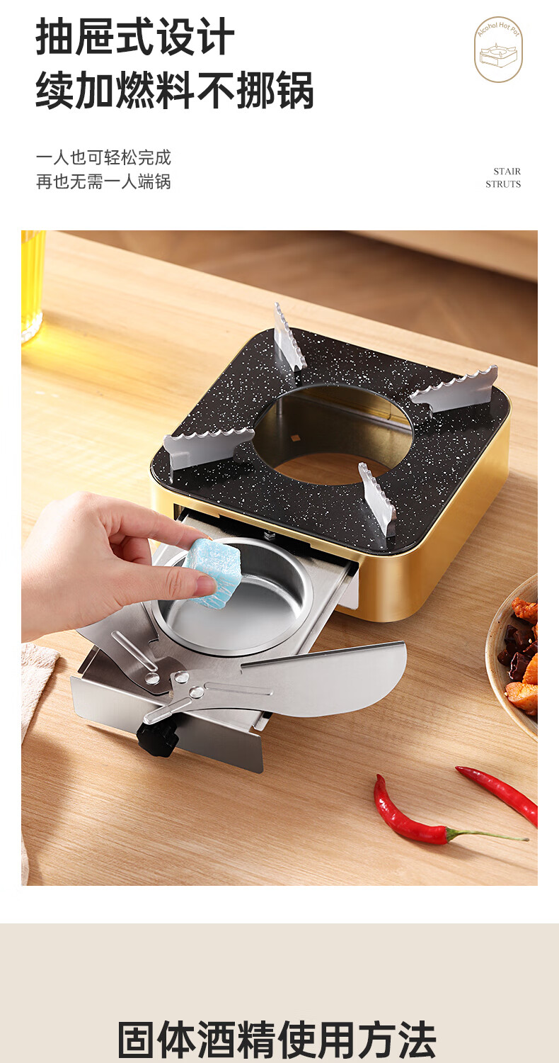Estufa de alcohol sólido pequeña olla caliente tipo cajón doméstico olla seca olla comercial de acero inoxidable olla abierta panel de piedra médica especial/estufa de alcohol extraíble portátil 18 cm
