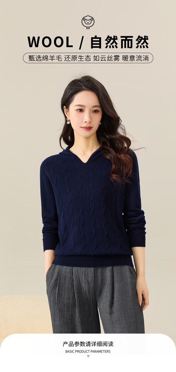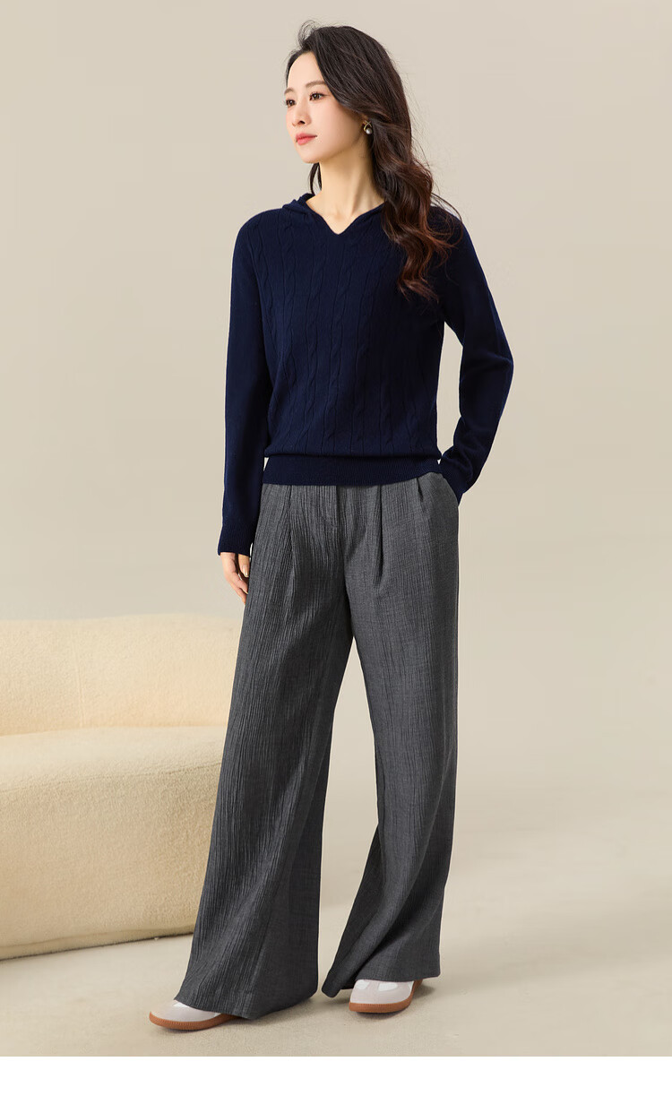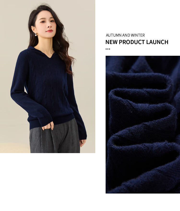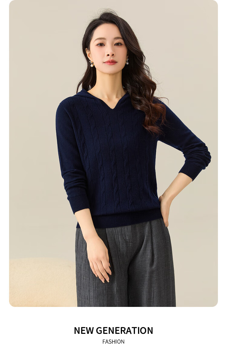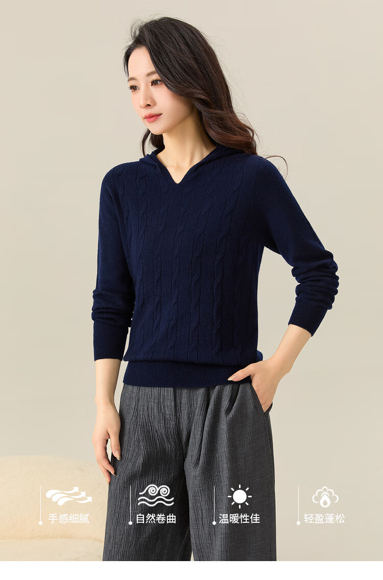 Chunzhu Broken code pick-up, autumn and winter new 100% wool hooded knitted sweatshirt cable age-reducing casual women's woolen sweater Shangqing 2XL (130-150Jin Jin equals 0.5 kg)