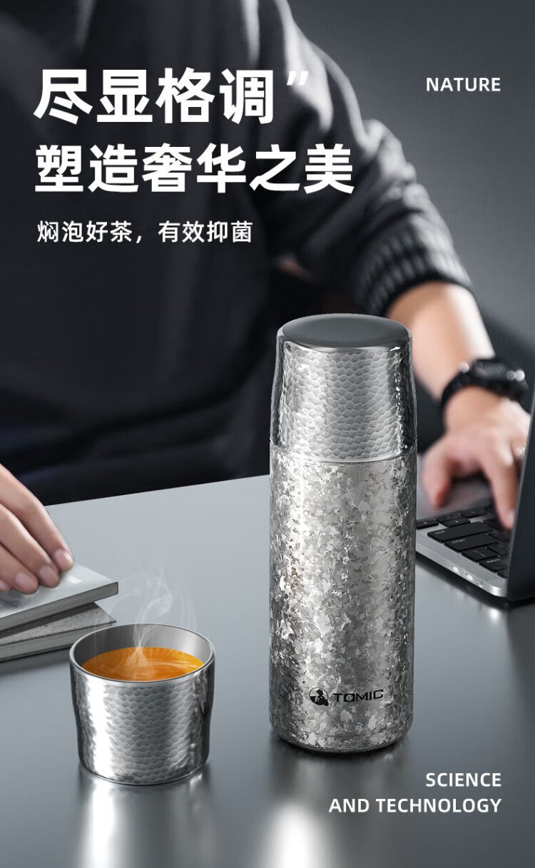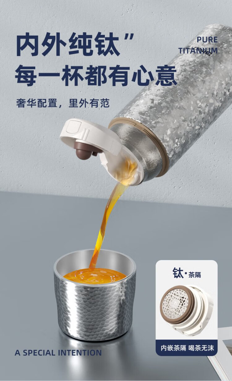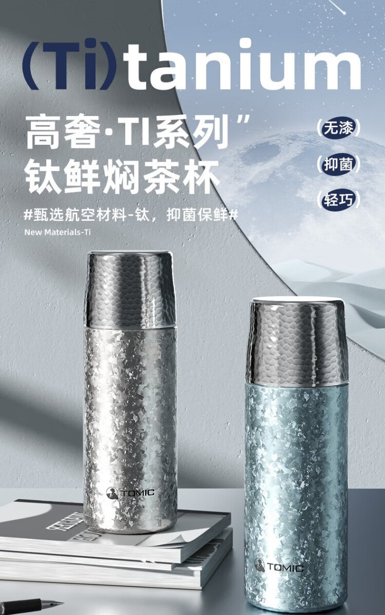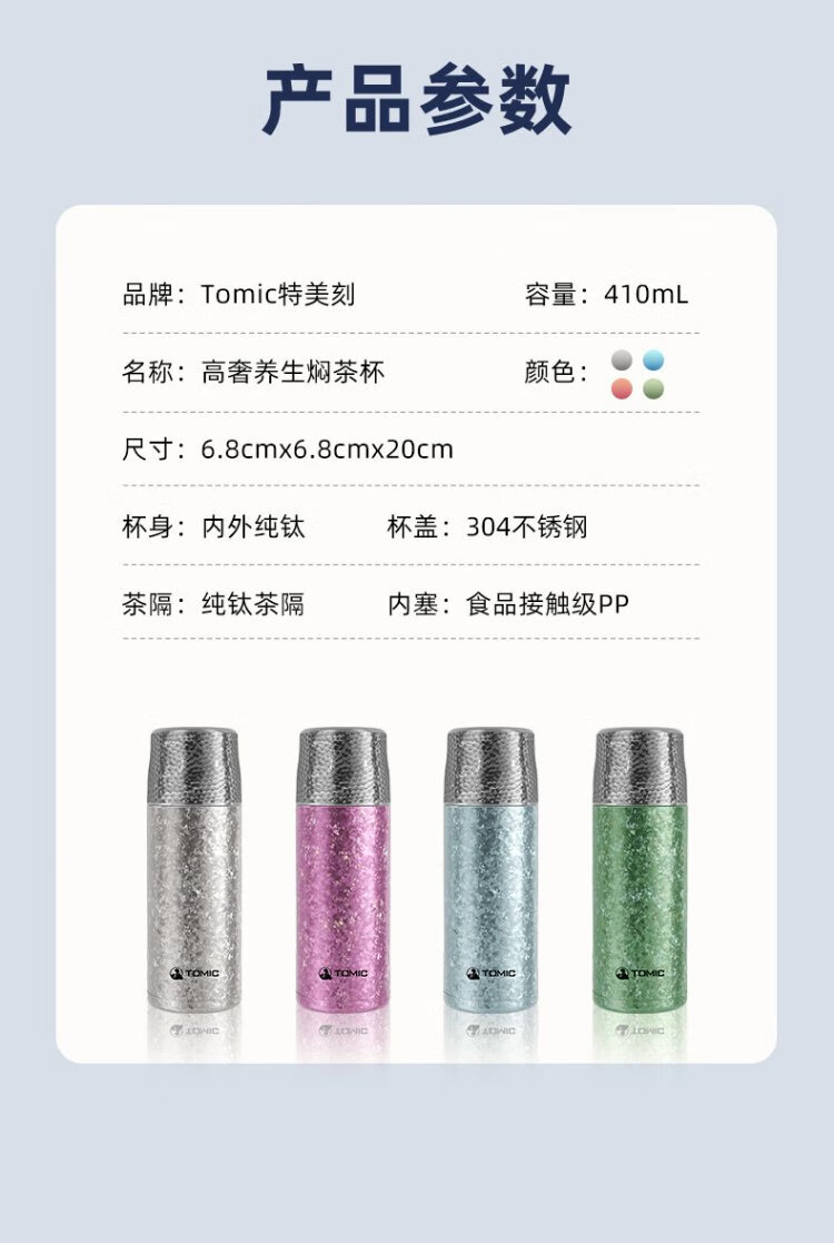 TOMIC Outdoor Insulated Cup Large Capacity Tea Water Separation Cup Healthy Stewed Tea Birthday Gift Christmas New Year Gift White Rose Pure Titanium Cover Mechanical Inner Stopper 410ml