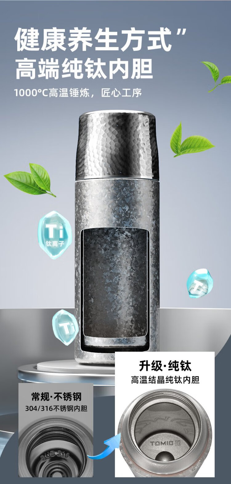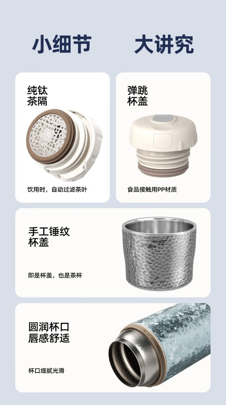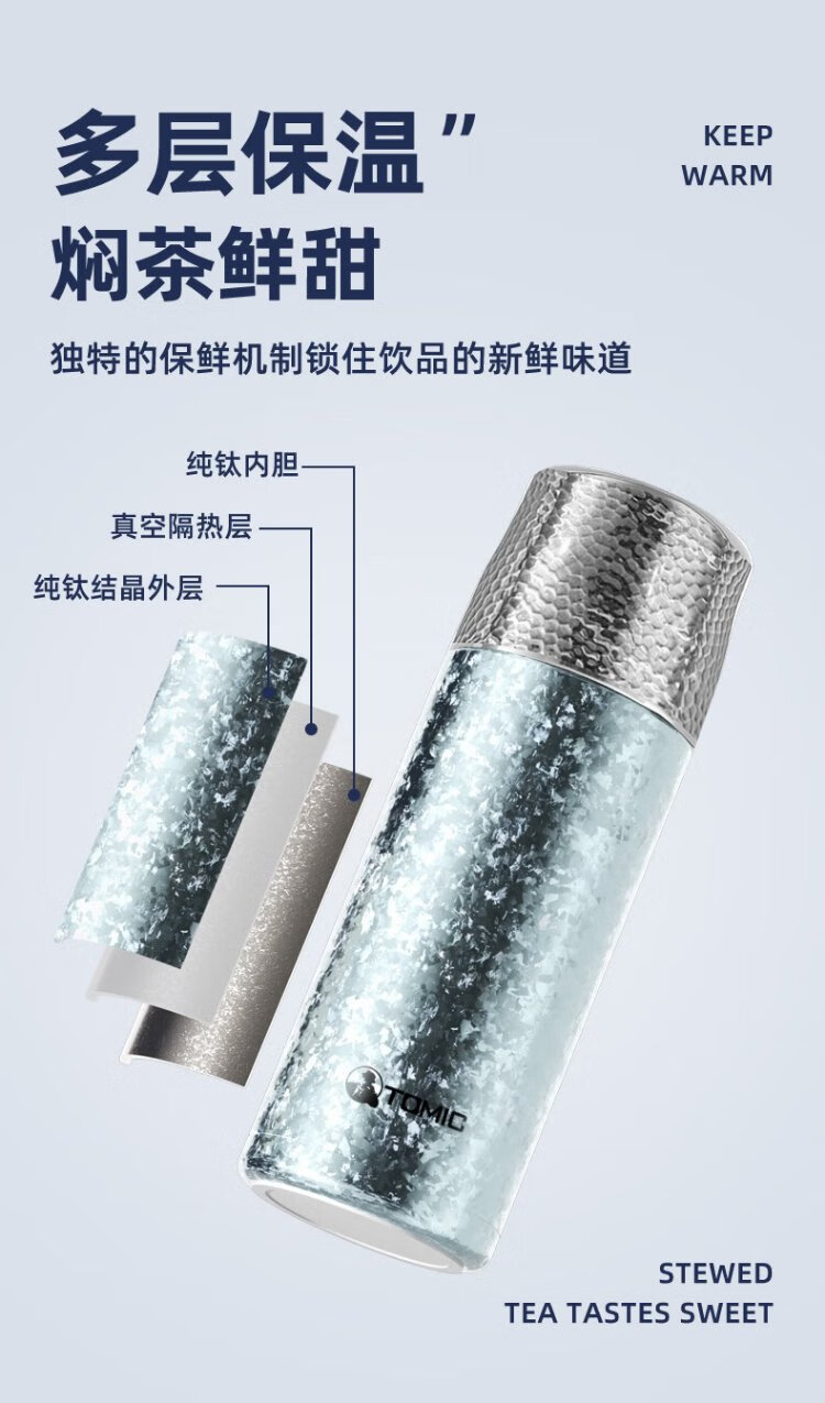 TOMIC Outdoor Insulated Cup Large Capacity Tea Water Separation Cup Healthy Stewed Tea Birthday Gift Christmas New Year Gift White Rose Pure Titanium Cover Mechanical Inner Stopper 410ml