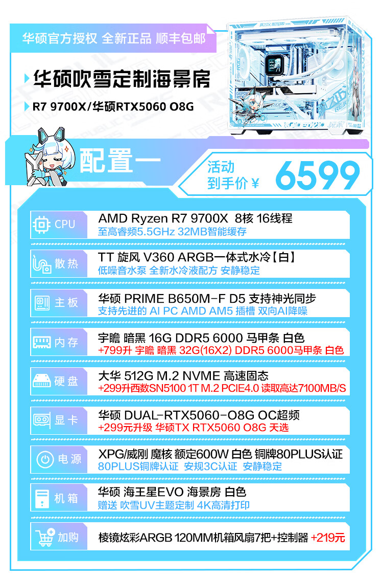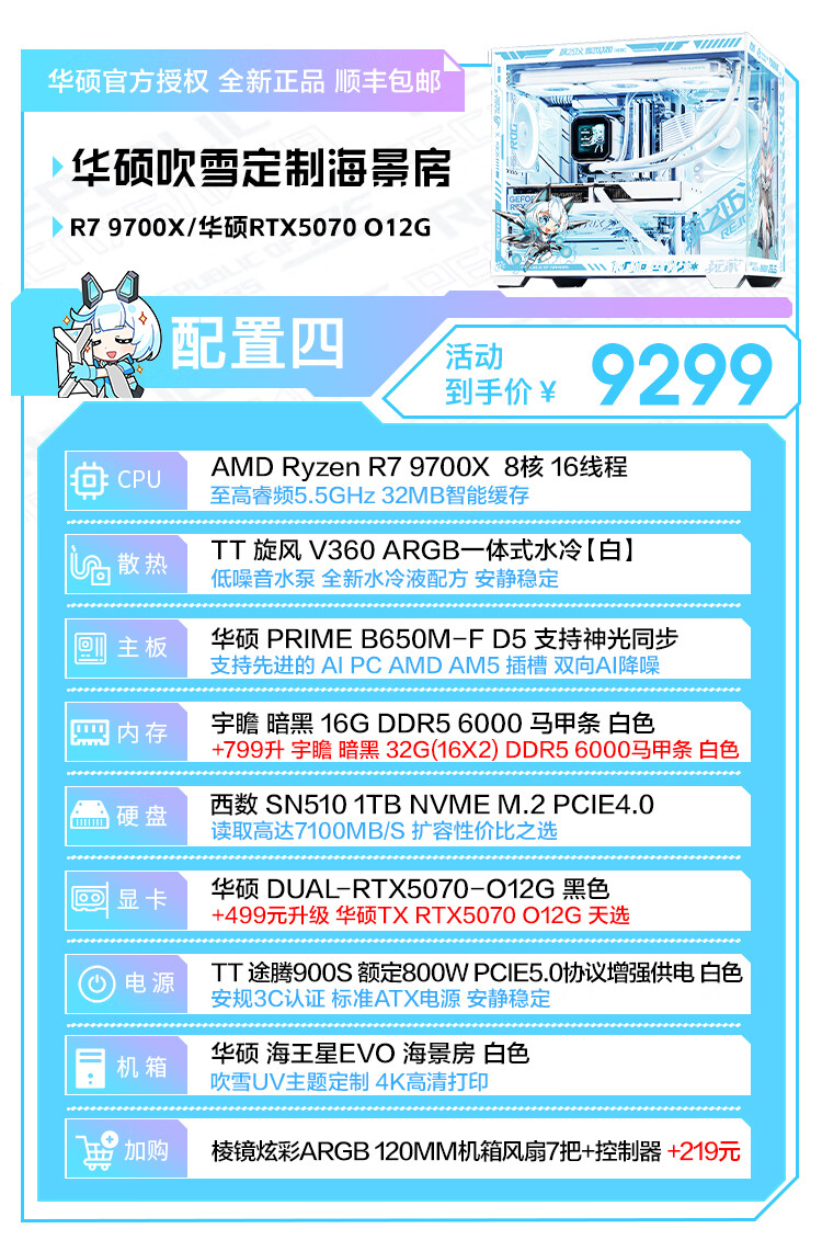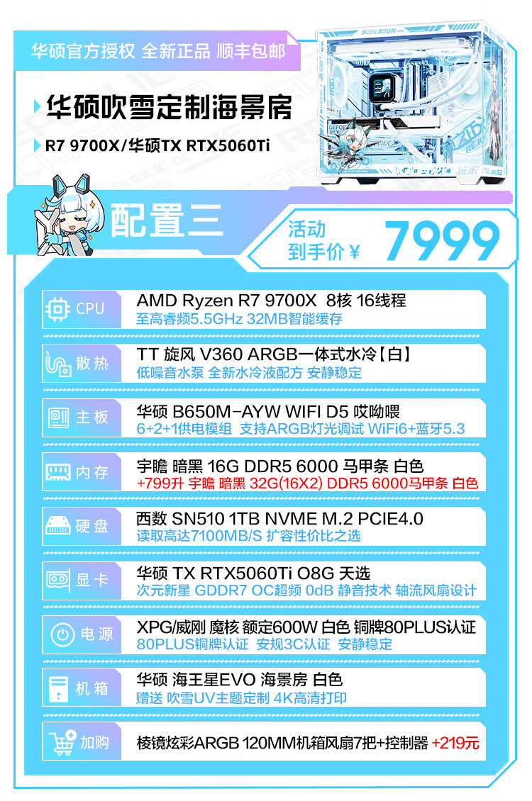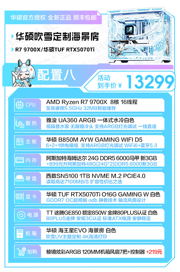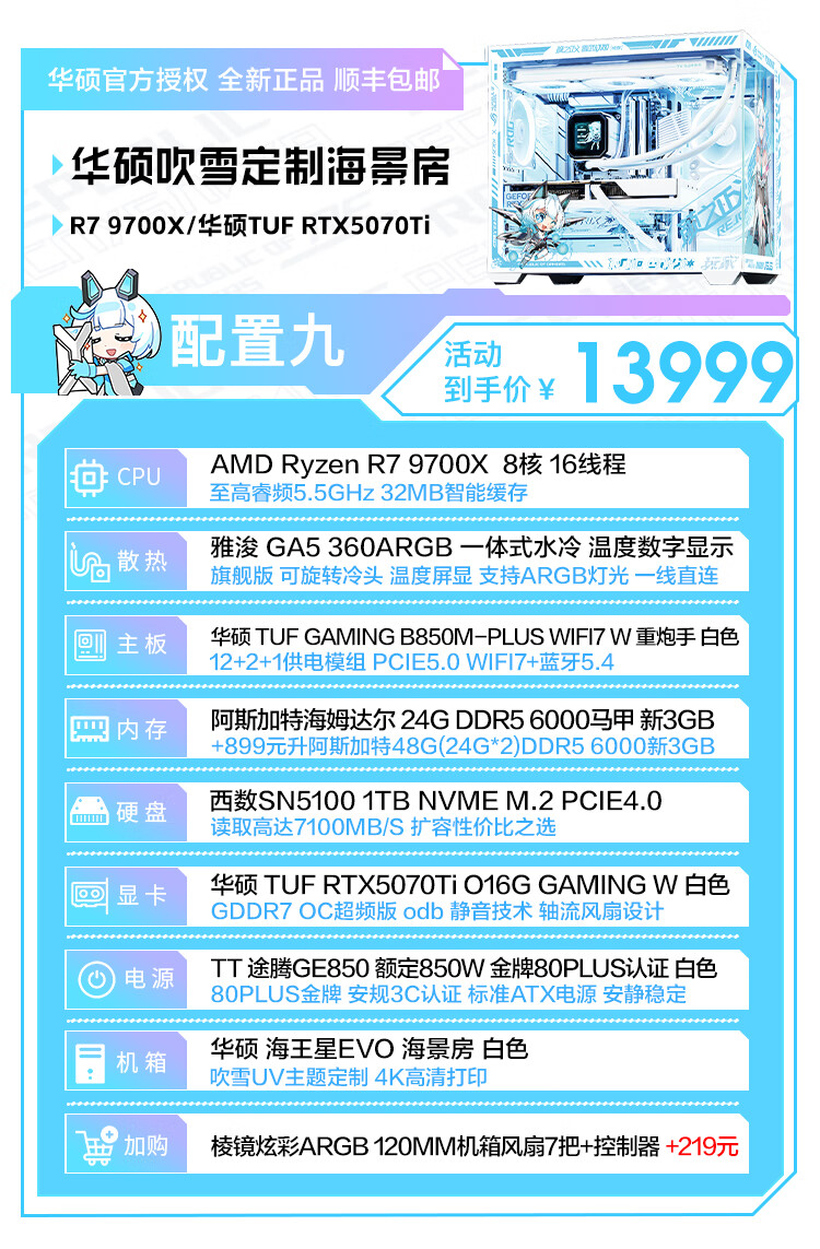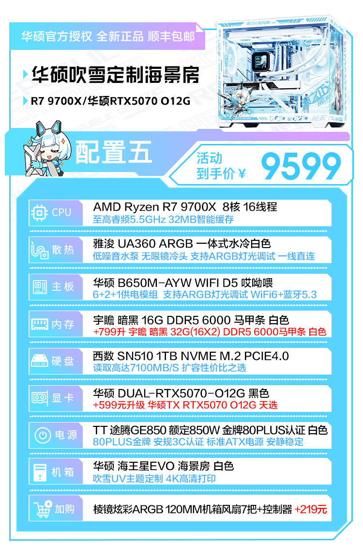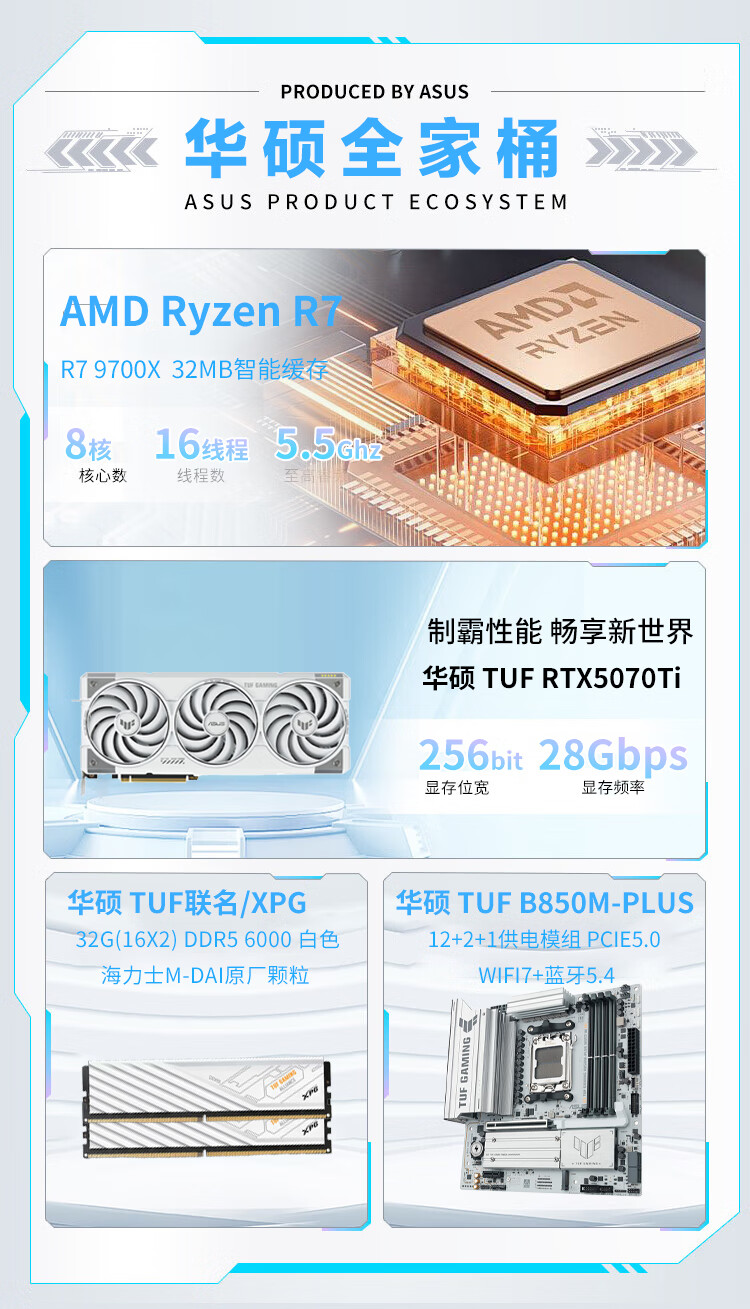 ASUS ROG Family Bucket Brand Subsidy R7 9700X ASUS RTX5070 Tianxuan Host 5070Ti Desktop Computer Game Live Design Rendering DIY Assembly Complete Machine Configuration 1 R7 9700X+RTX5060
