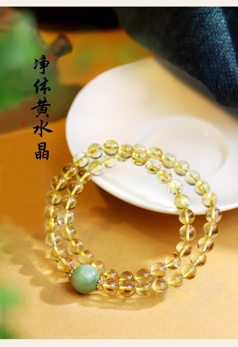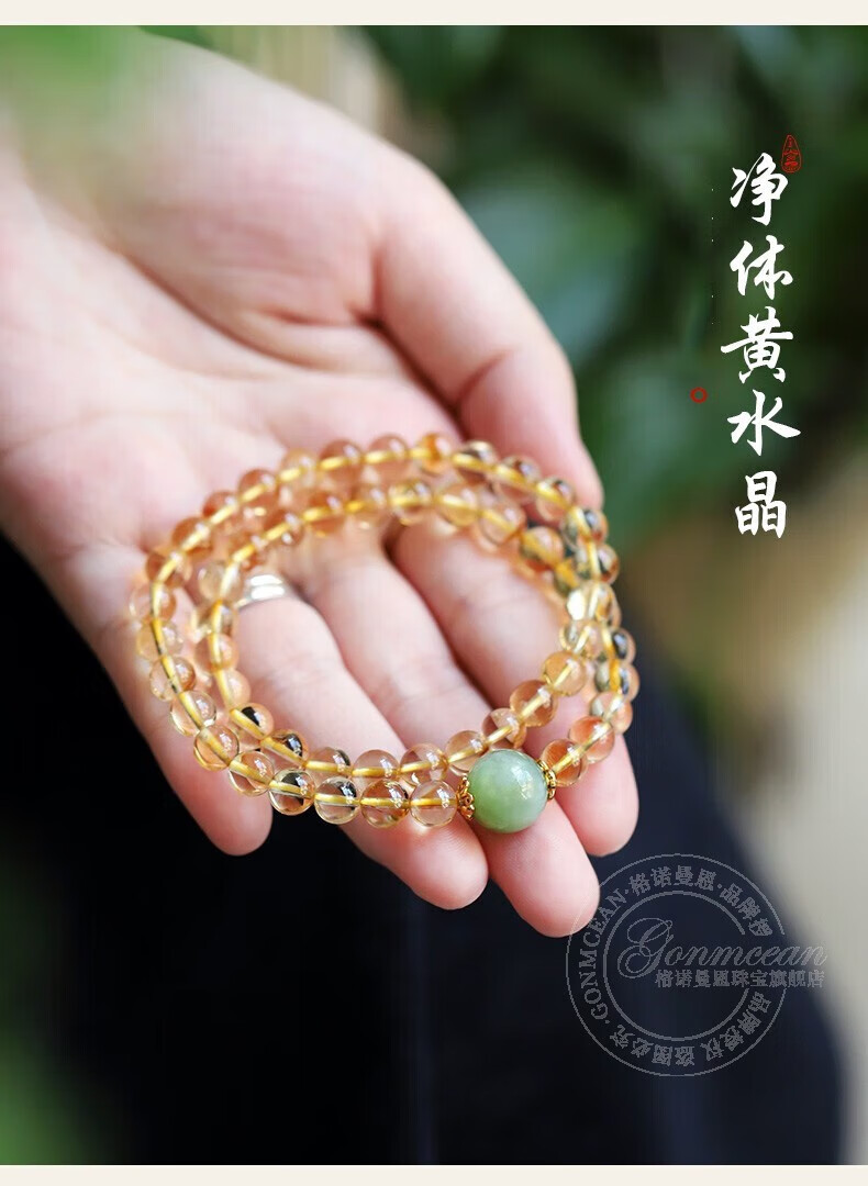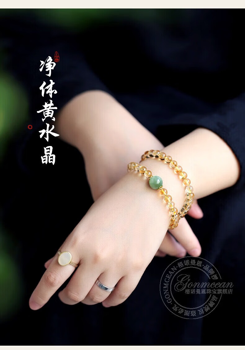 Mengdong Jinyu Brazilian Pure Body Citrine Bracelet for Women High Translucent Crystal Bracelet for Women with Jasper Cat Eye Beads 6mm