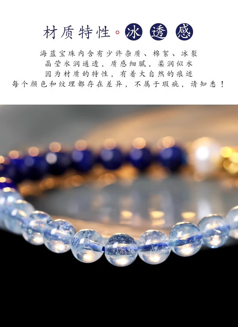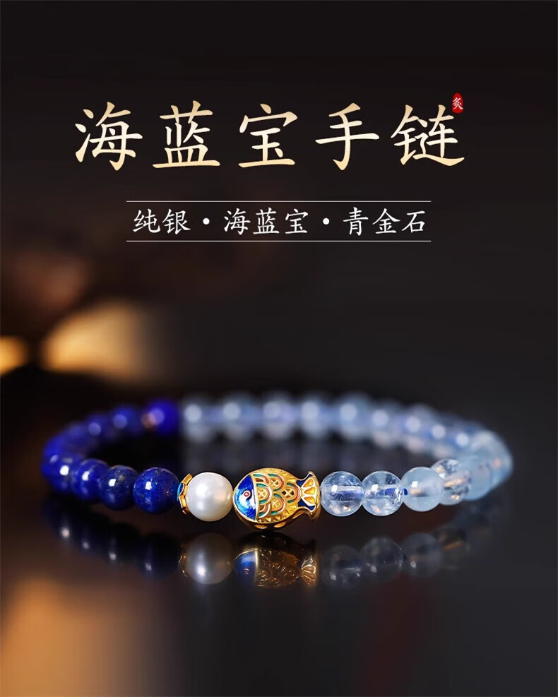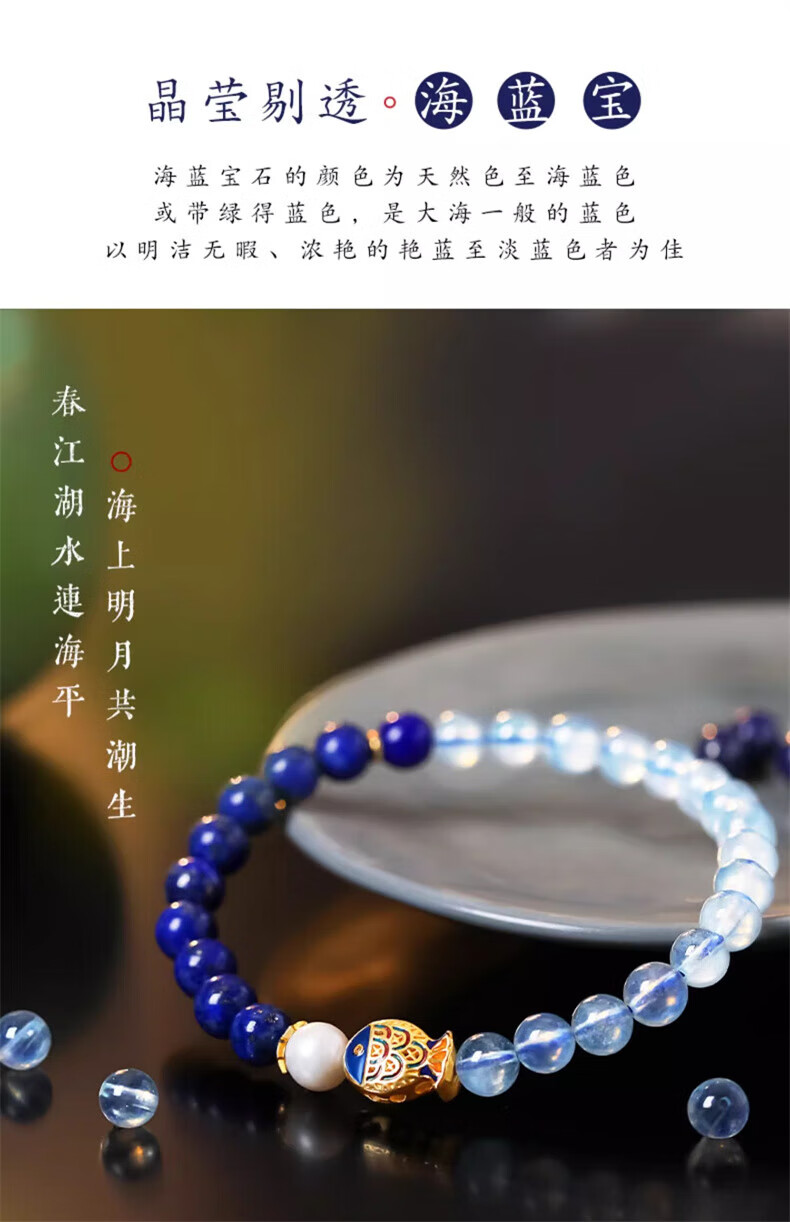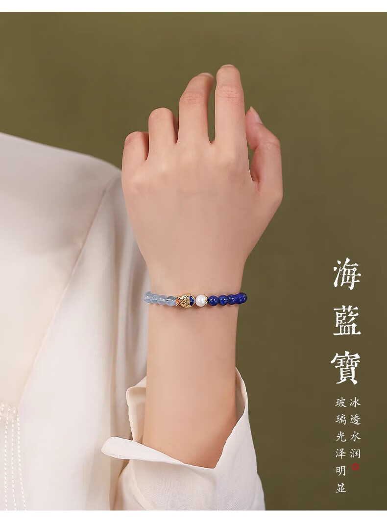 Mengdong Brazilian Aquamarine Bracelet Lapis Lazuli Pearl Women's Blue Crystal Bracelet for Anniversary Holidays