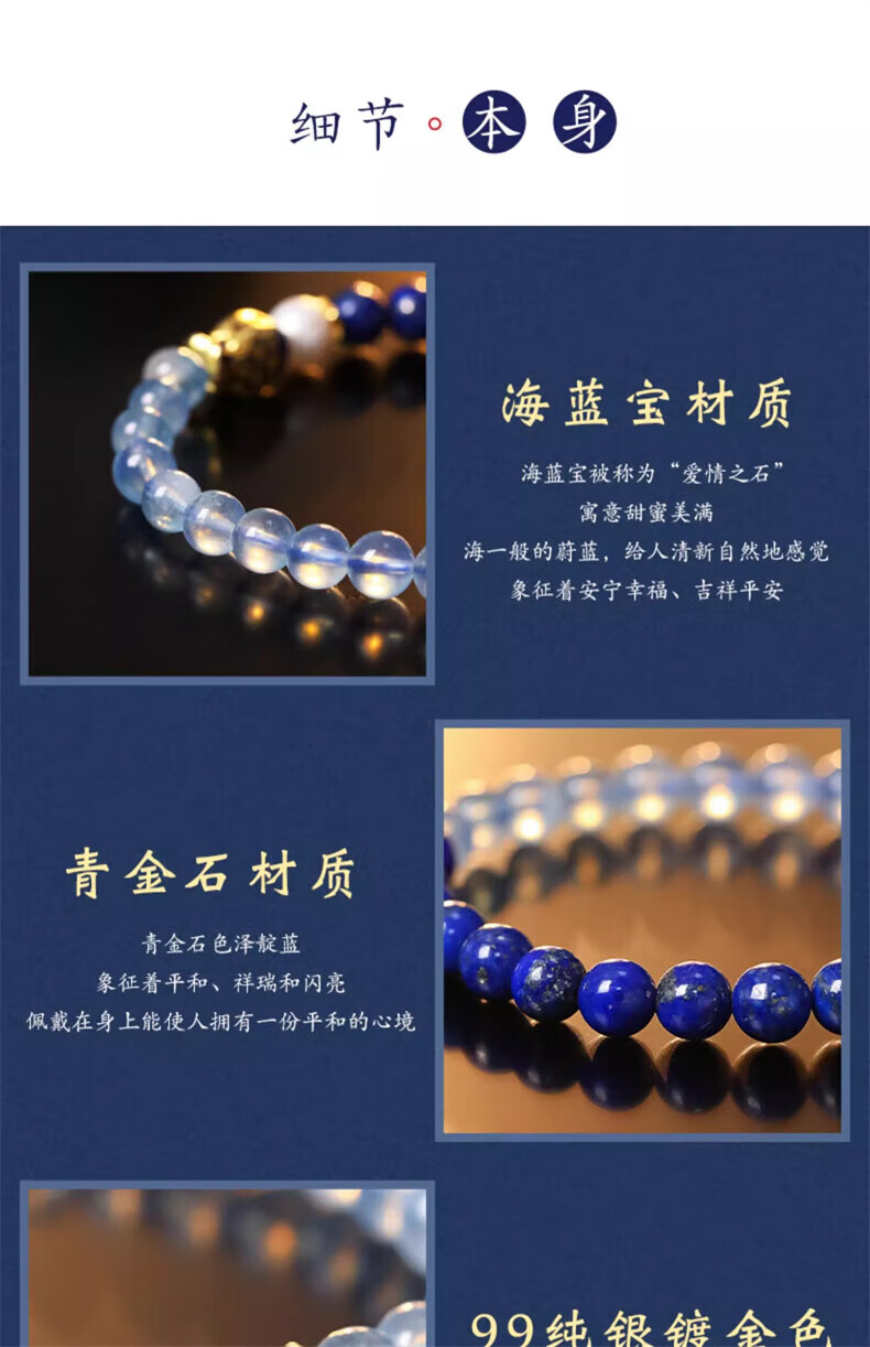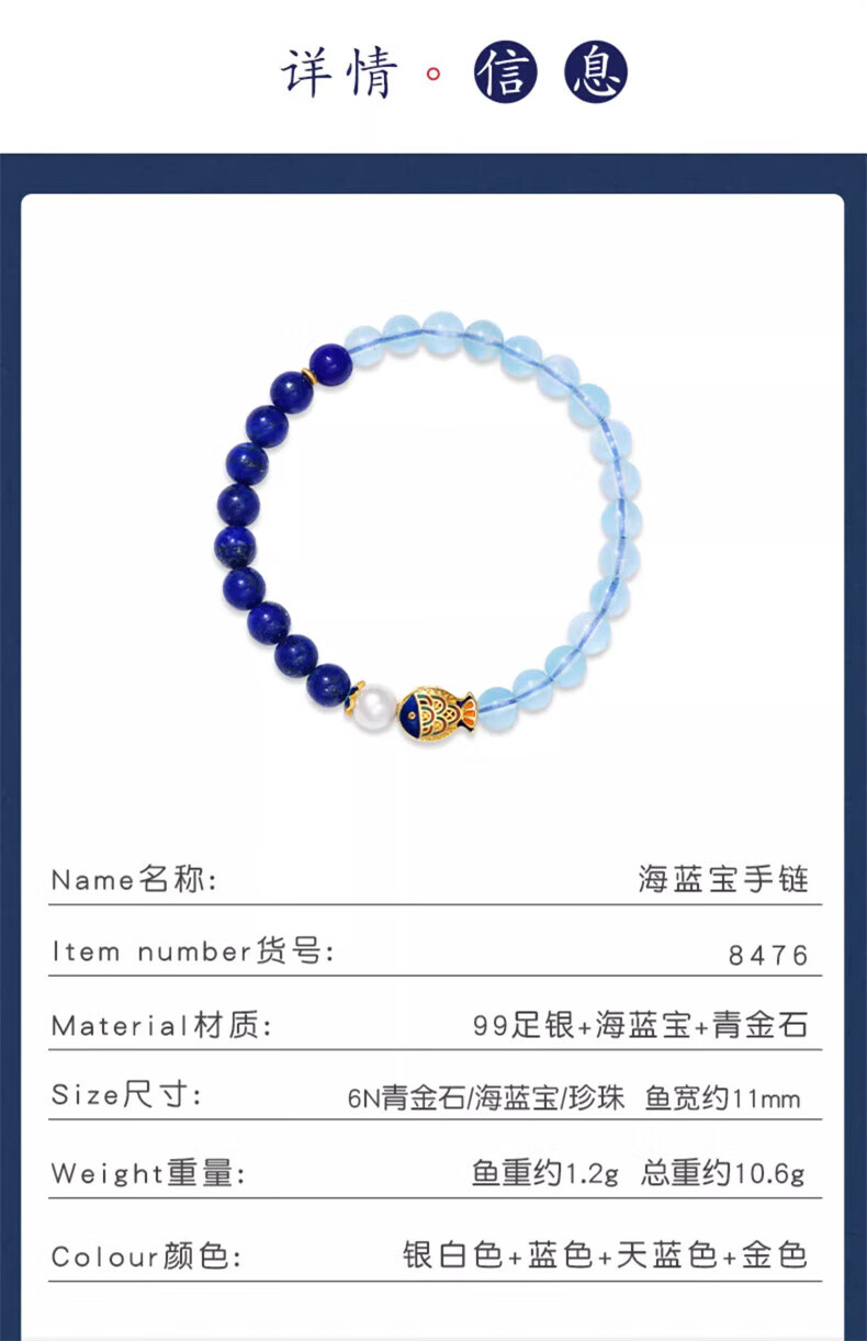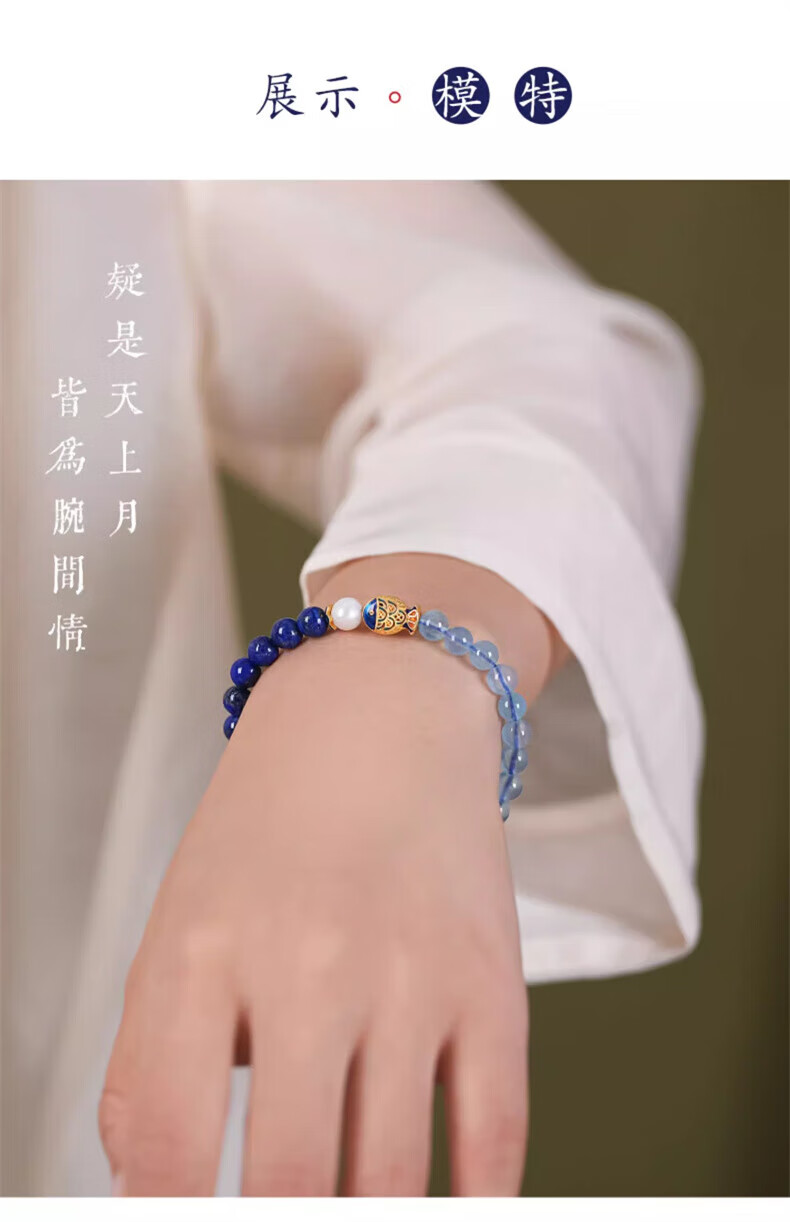 Mengdong Brazilian Aquamarine Bracelet Lapis Lazuli Pearl Women's Blue Crystal Bracelet for Anniversary Holidays