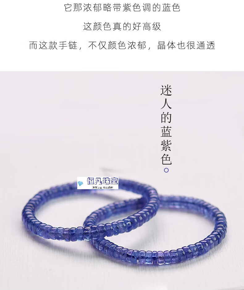 Mengdong tanzanite bracelet for women, blue gemstone, purple bare stone loose beads, single circle couple crystal plate bead bracelet, bead diameter is about 5mm