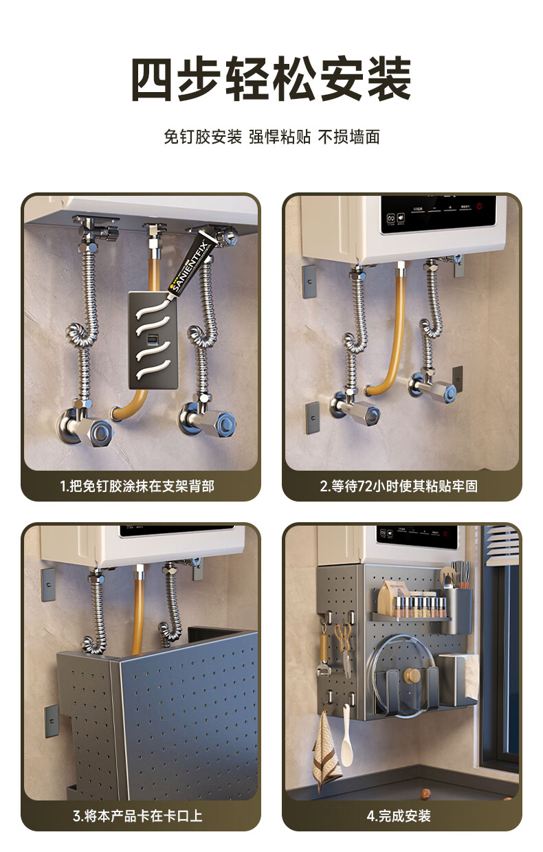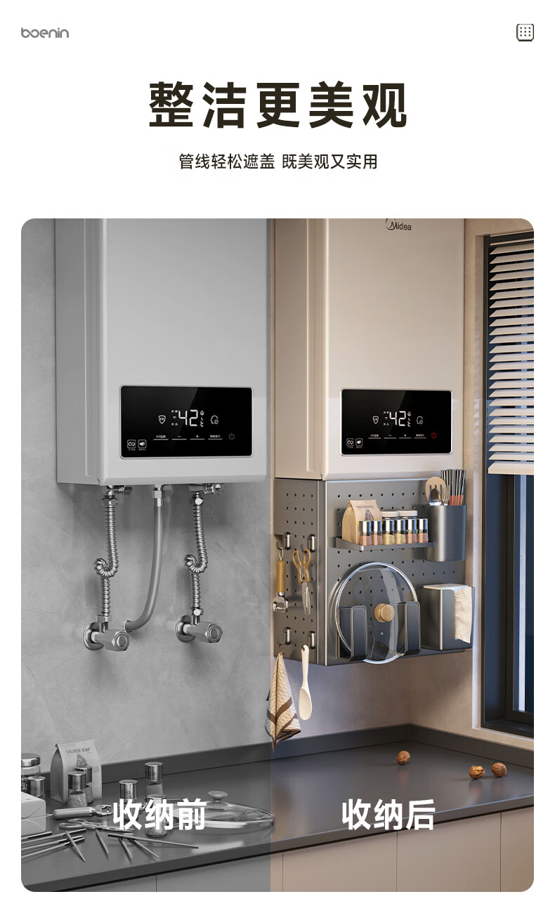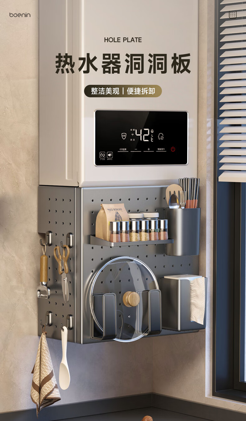 He Jiagong gas water heater pipe shield decorative hole board kitchen wall hanging below ugly boiler stove shelf gun gray width 35 height 30 depth 15 standard 4 hooks