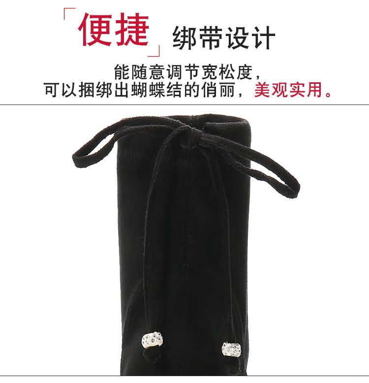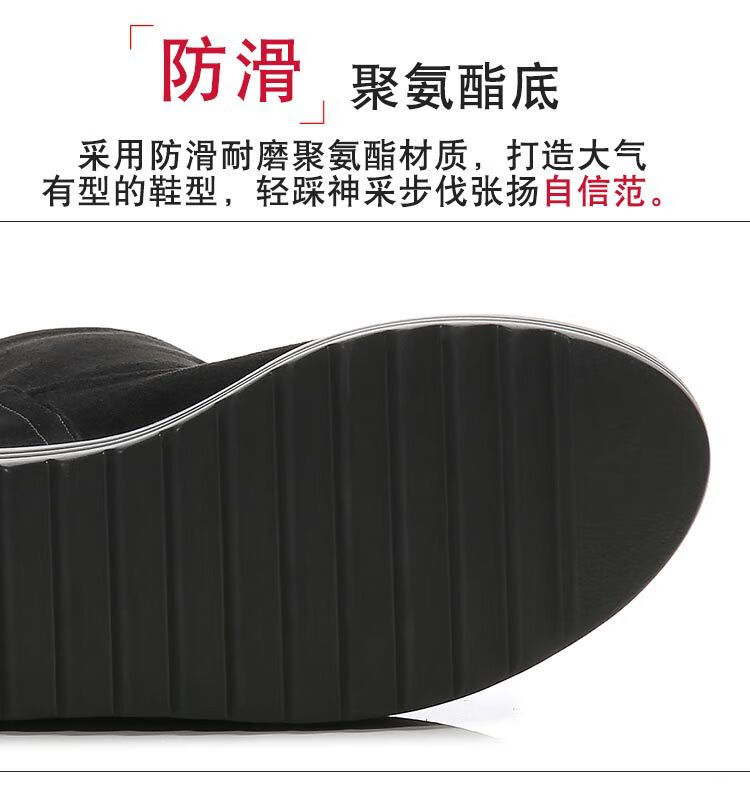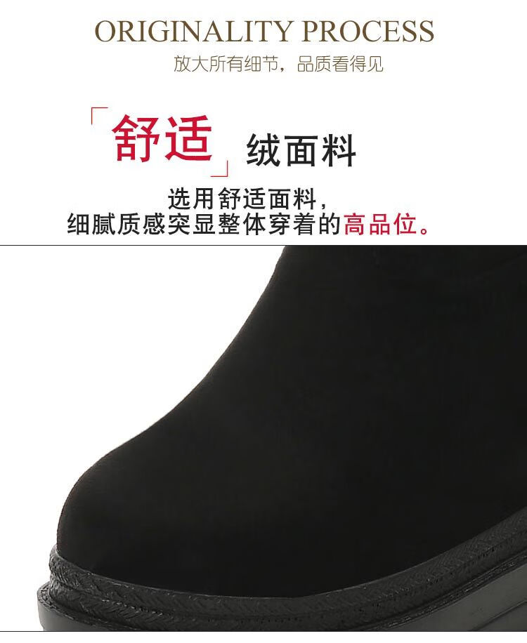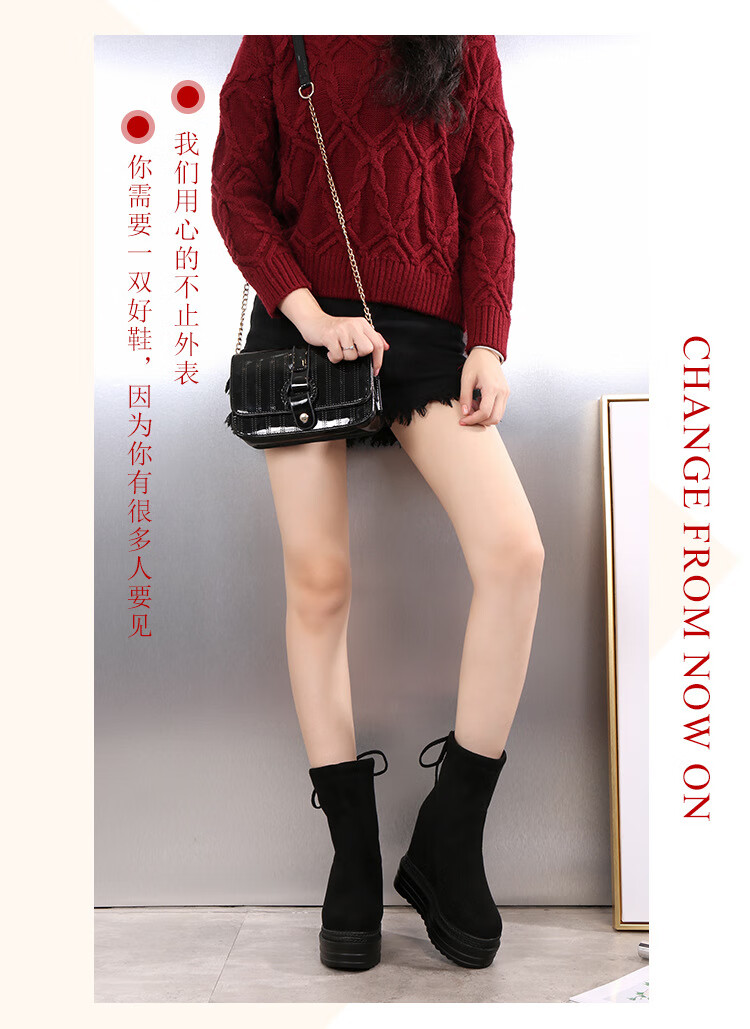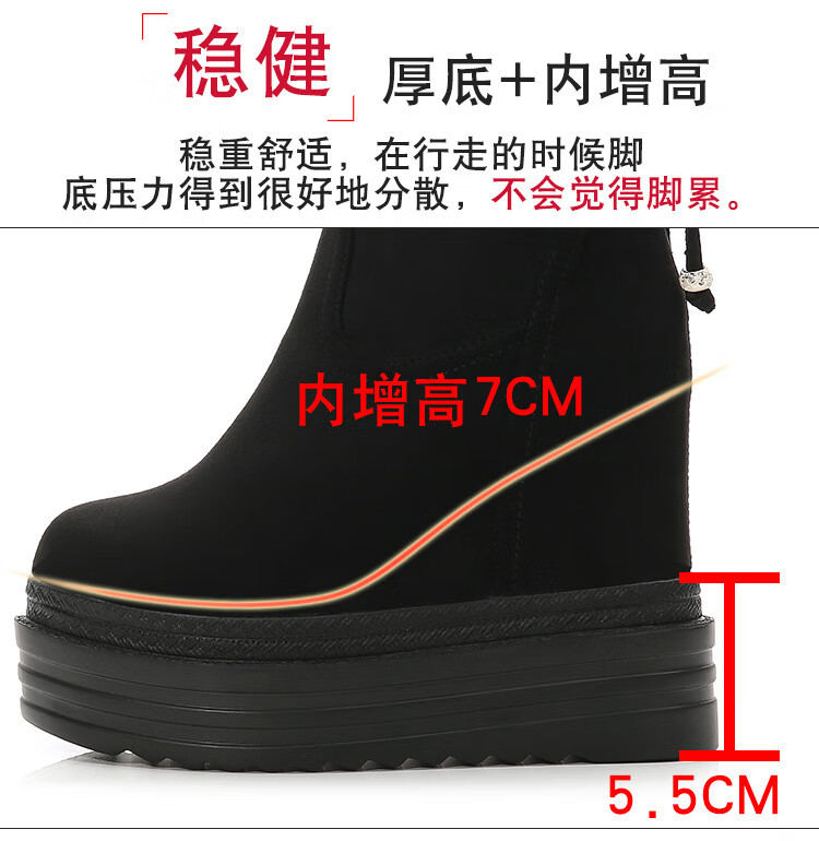 Woodpecker 2025 Autumn and Winter Inner Heightening Thick-soled Short Boots Wedge Super High-heeled Shoes 12CM Mid-calf Boots Suede Stretch Women's Boots Black Heel Height 11cm 34