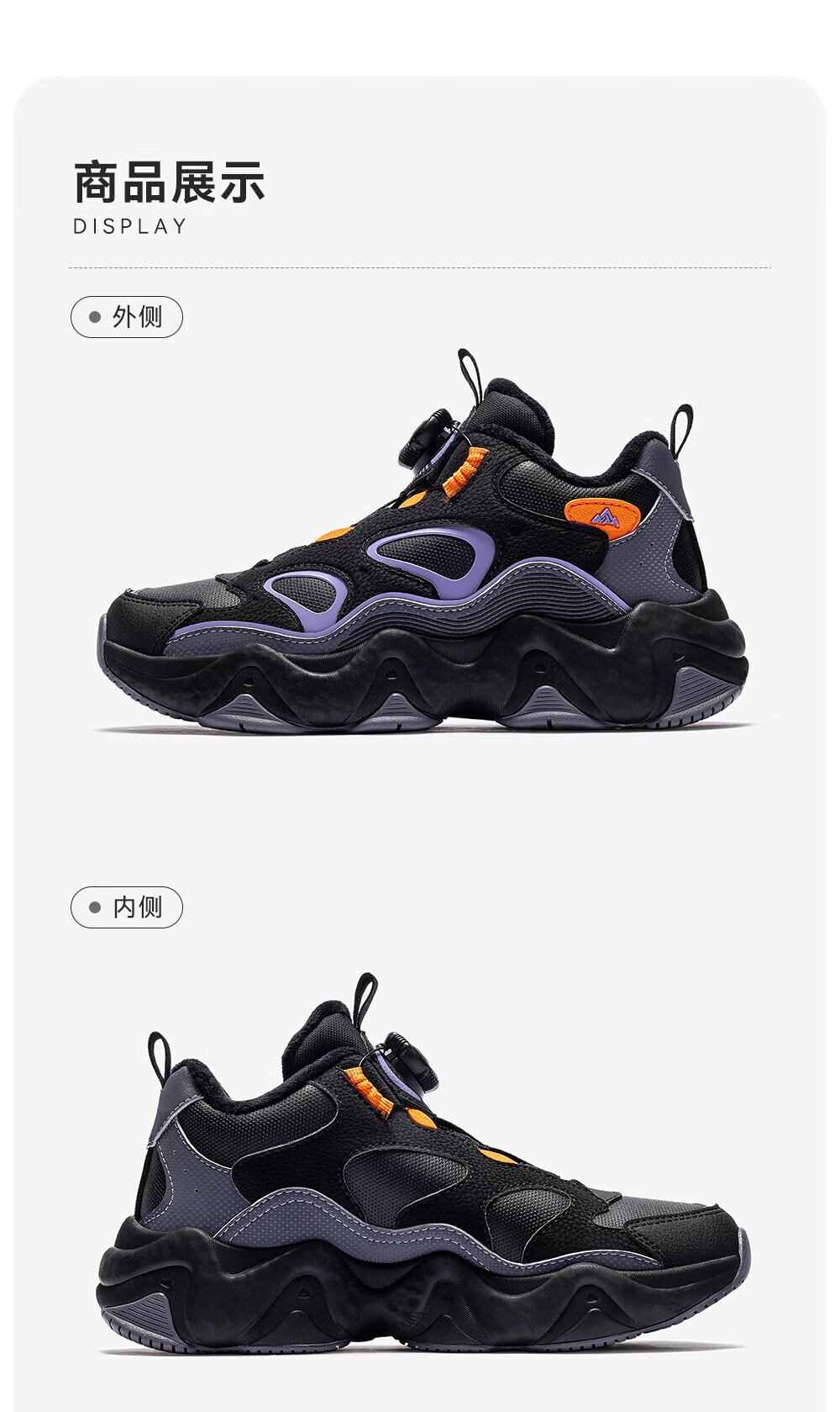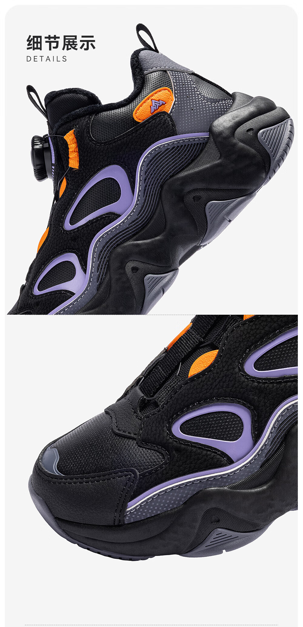 ANTA Children's Cotton Shoes, Boys' Shoes, Dun Dun Shoes, 2025 Winter New Revolution Velvet Warm Sports Shoes for Men, Black/Cold Gray/Thin Blue-1 35