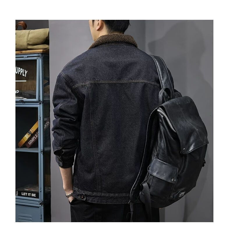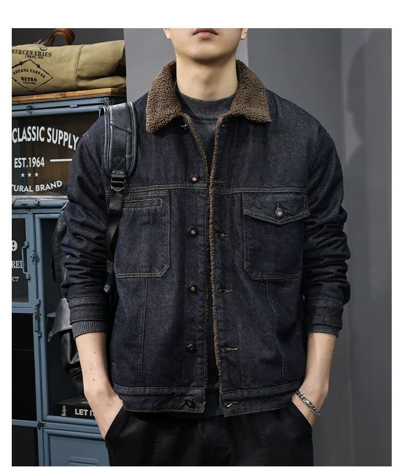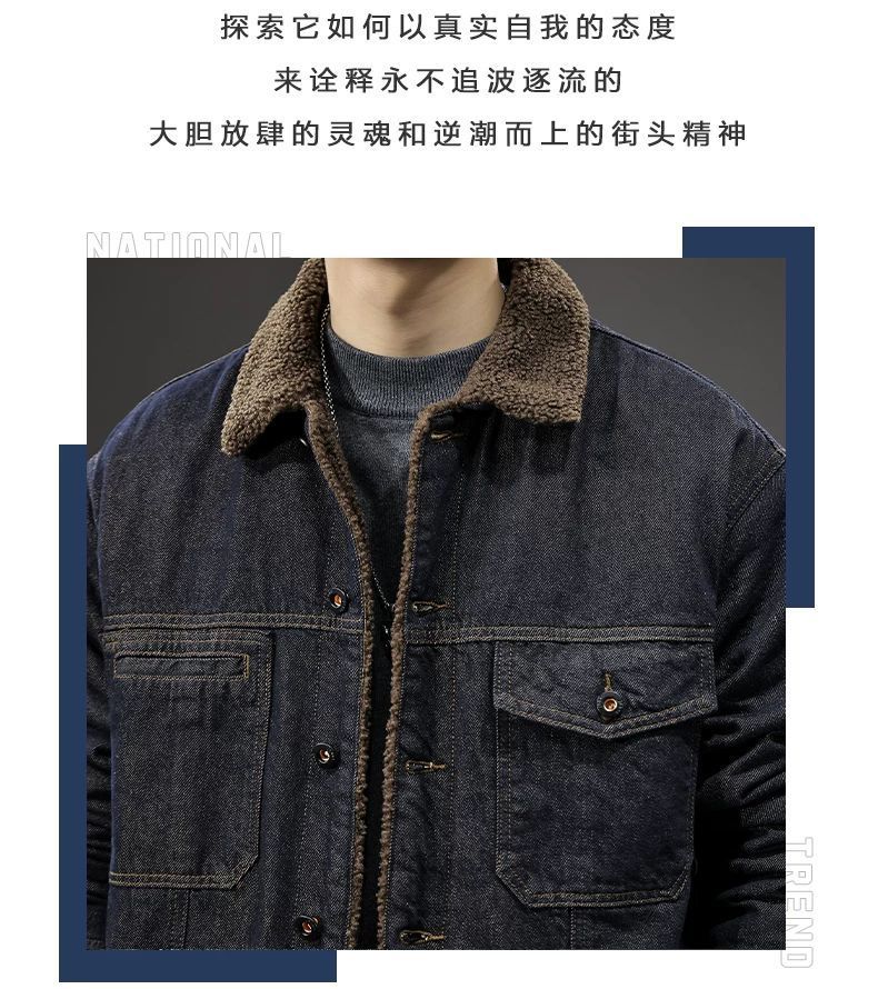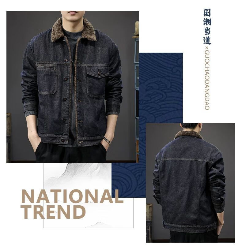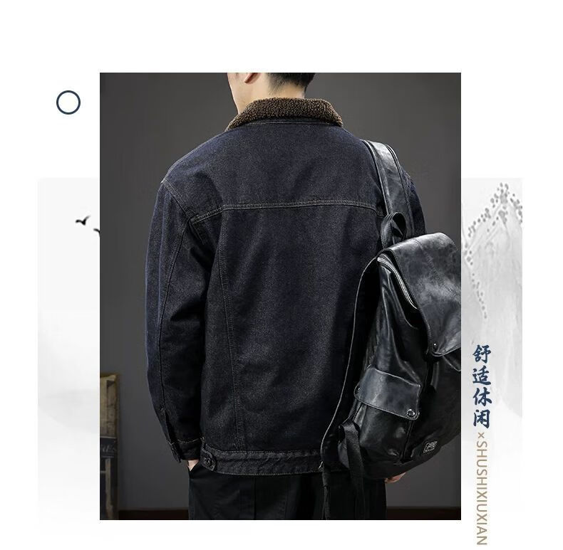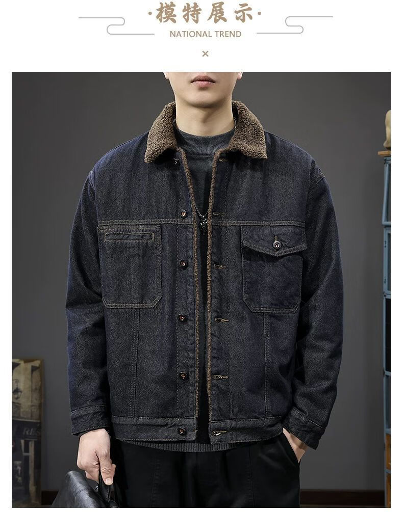 2025 winter velvet warm sherpa denim jacket men's American retro washed work jacket lapel cotton coat blue black velvet original high quality L recommended 110-125Jin Jin equals 0.5 kg