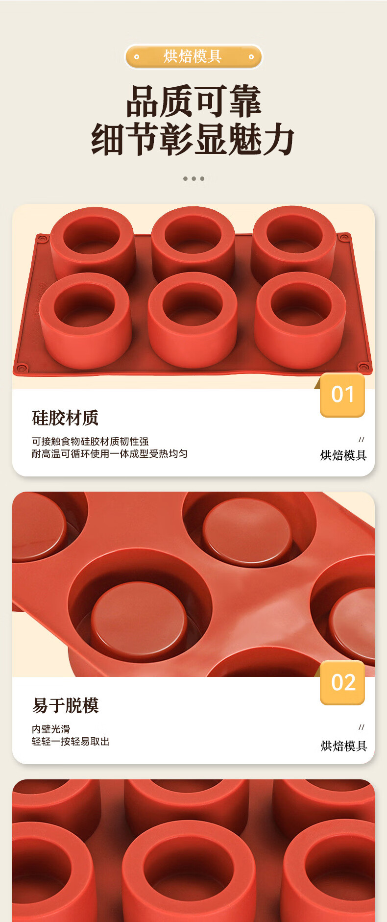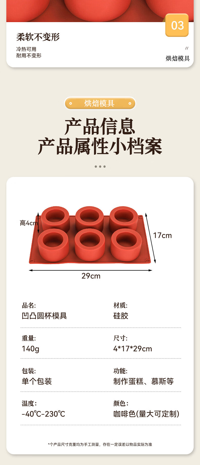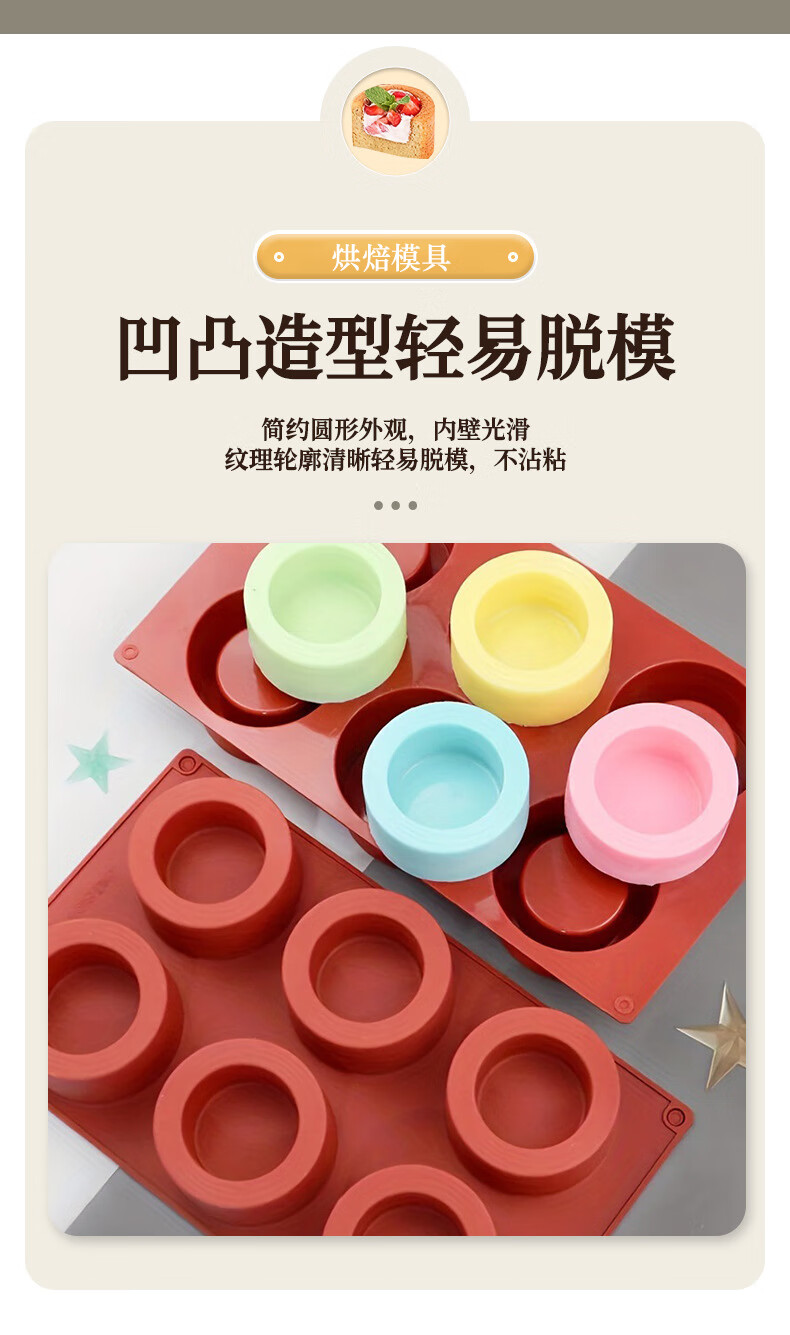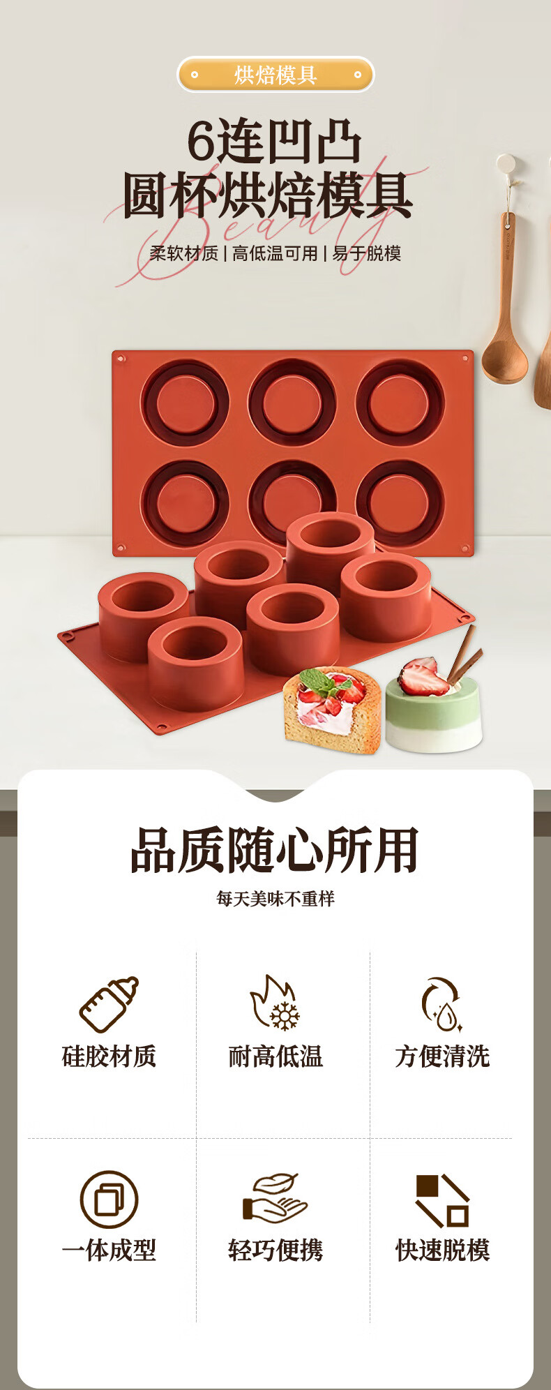 6 consecutive concave and convex hollow cake molds mousse muffin cup silicone dessert pudding chocolate flow baking tool brick red 6 consecutive cake molds