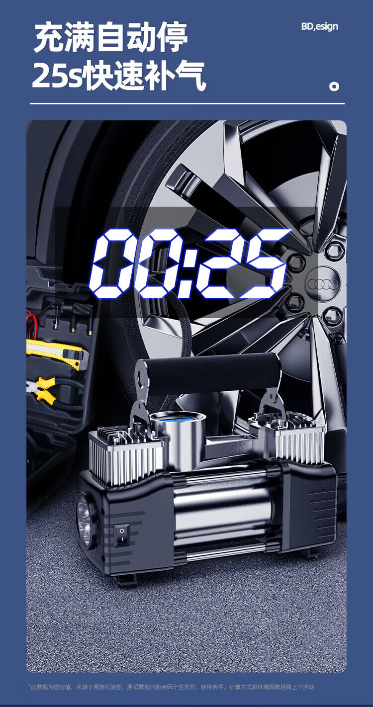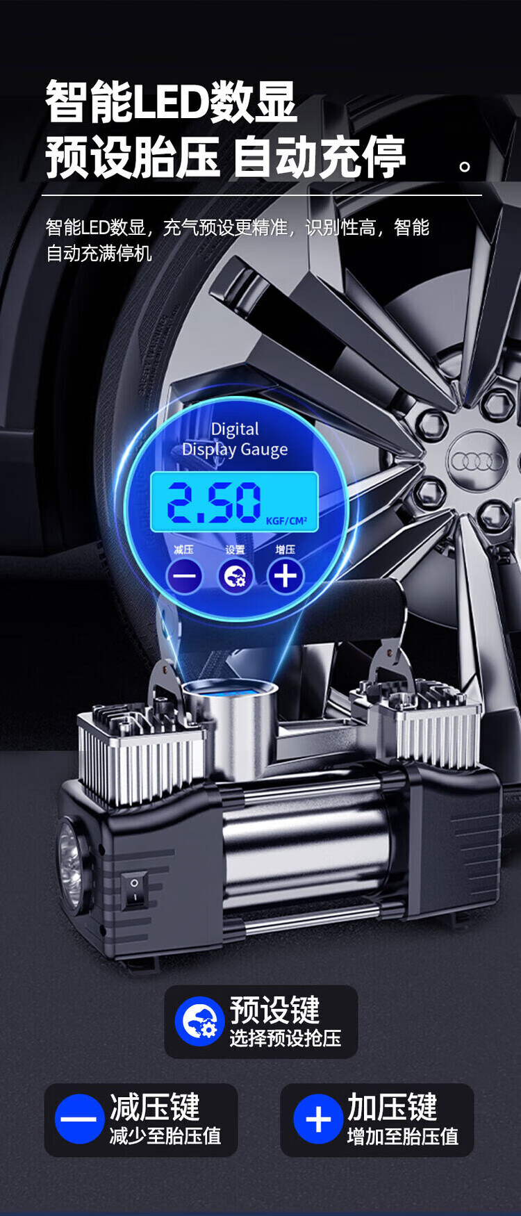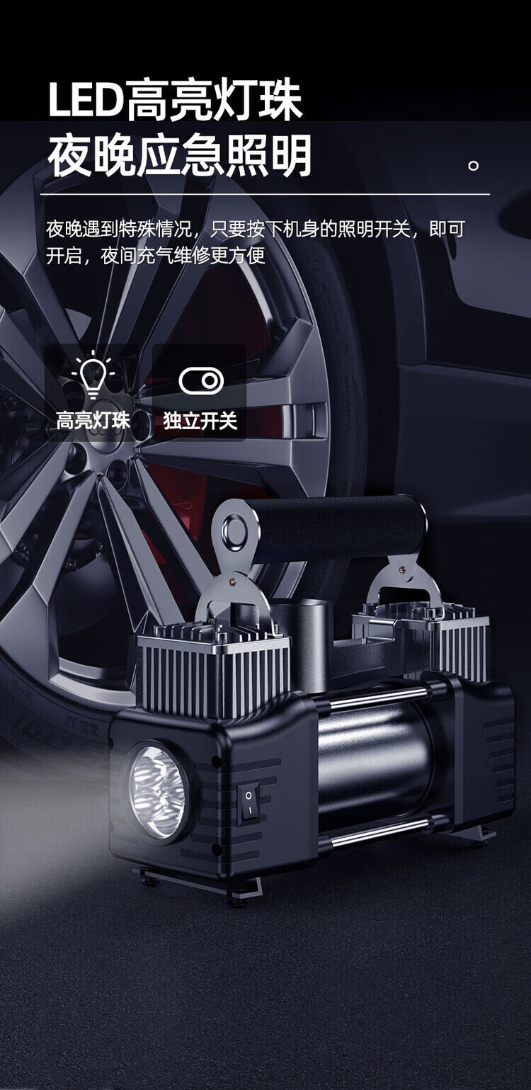Car air pump, portable tire pump for cars, double-cylinder electric air pump for cars, powerful double pump-digital display model, luxury