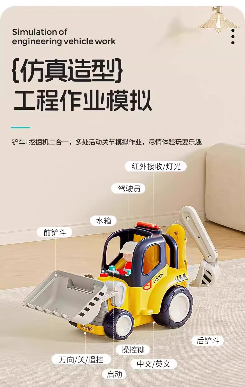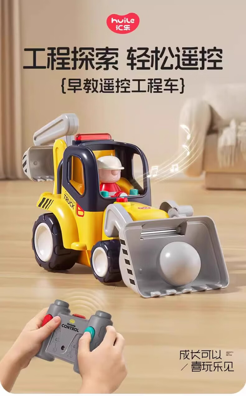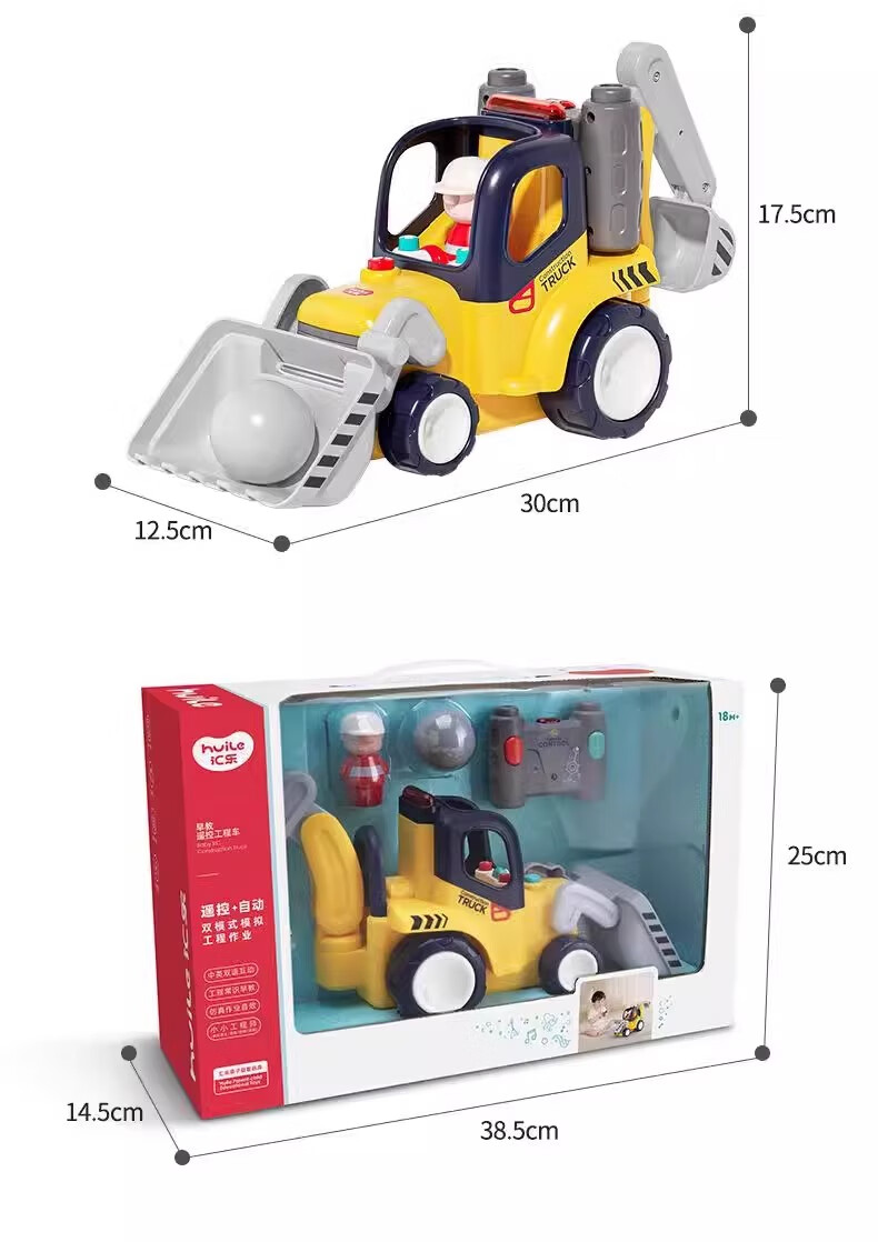 HUILE TOYS Early Education Remote Control Engineering Vehicle 1 3 Years Old Musical Bulldozer Model Fun Tool Car Children's Toy Gift Box Huile Remote Control Engineering Vehicle