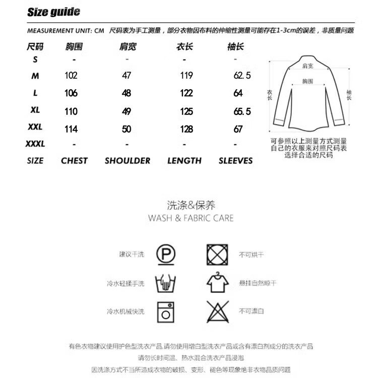 China (cm) 165 / 88-90 170 / 96-98 175 / 108-110 180 / 118-122 185 / 126-130