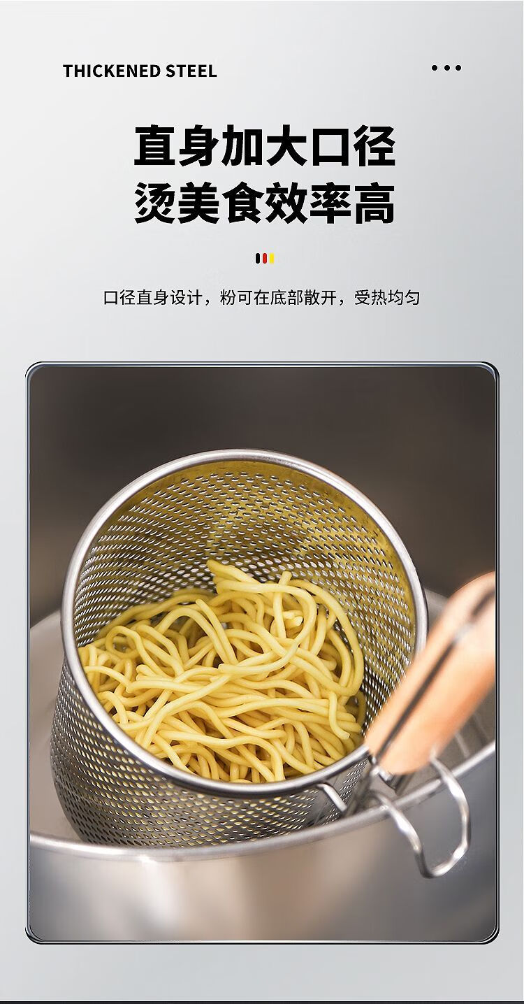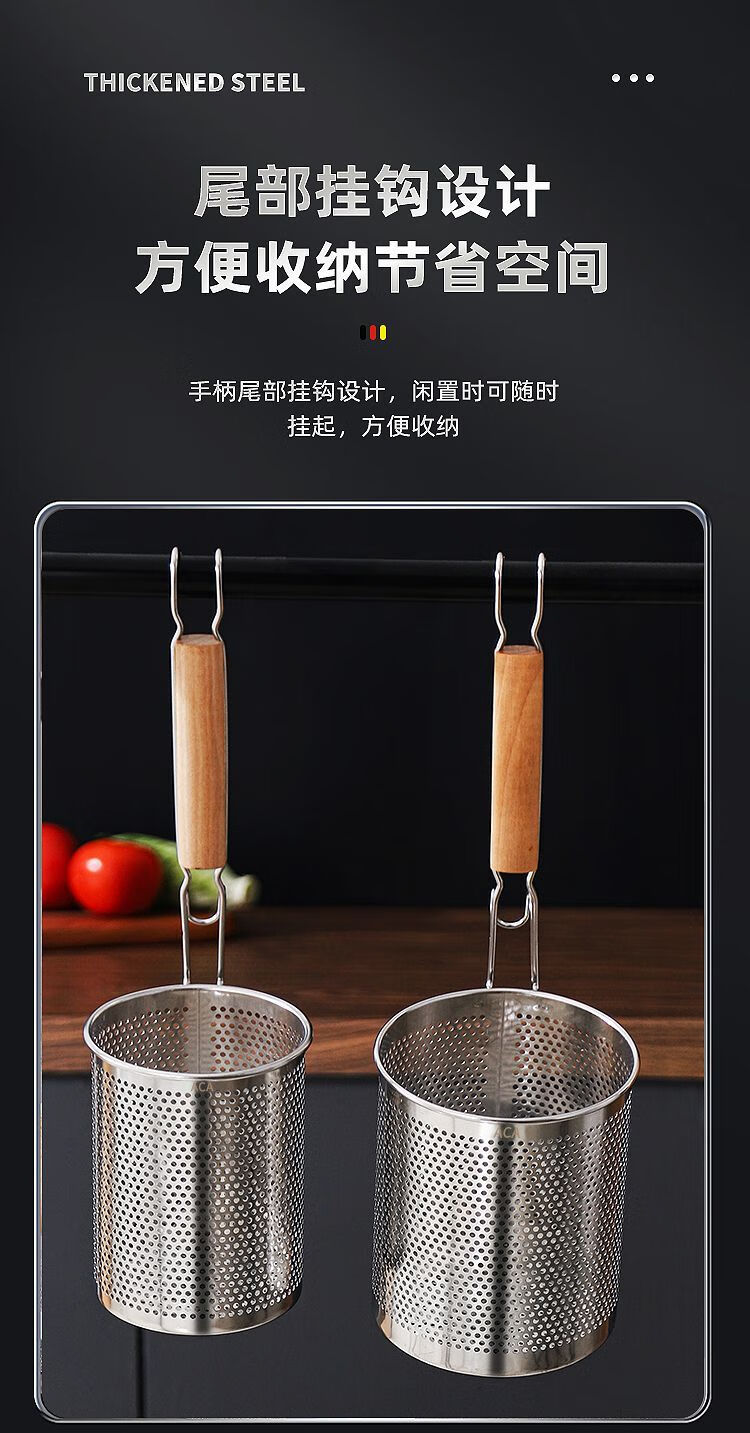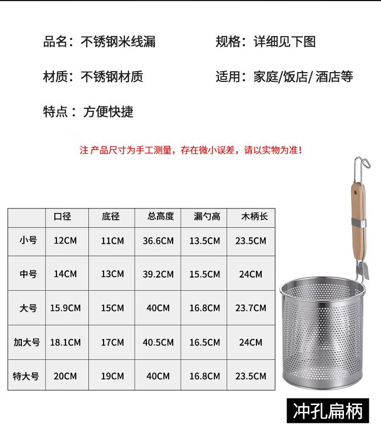 Stainless steel colander, spicy hot noodle filter, noodle spoon, cooking noodle spoon, hot vegetable basket colander, large colander 16cm - punched noodle fence flat handle