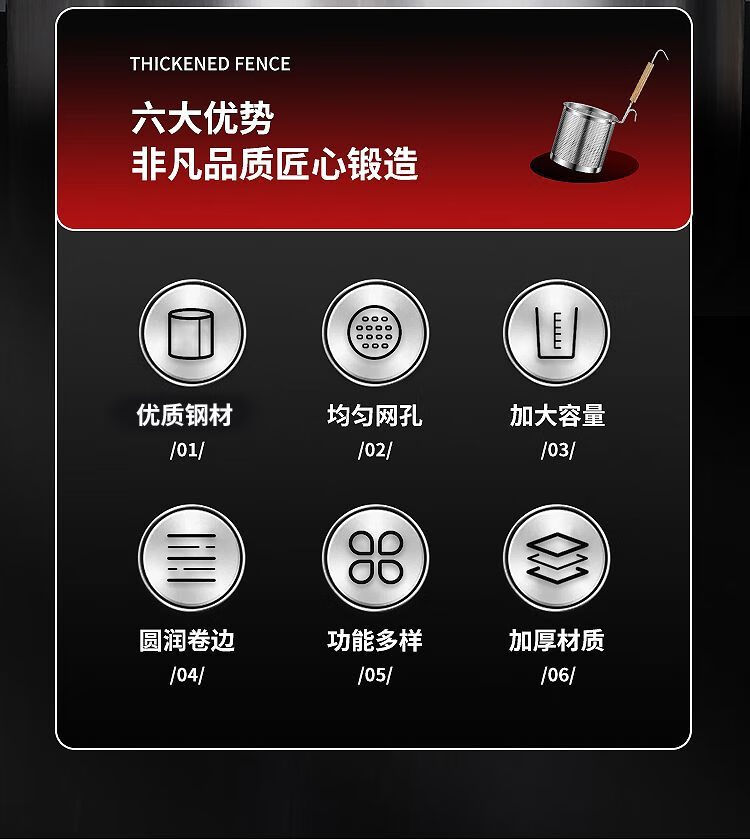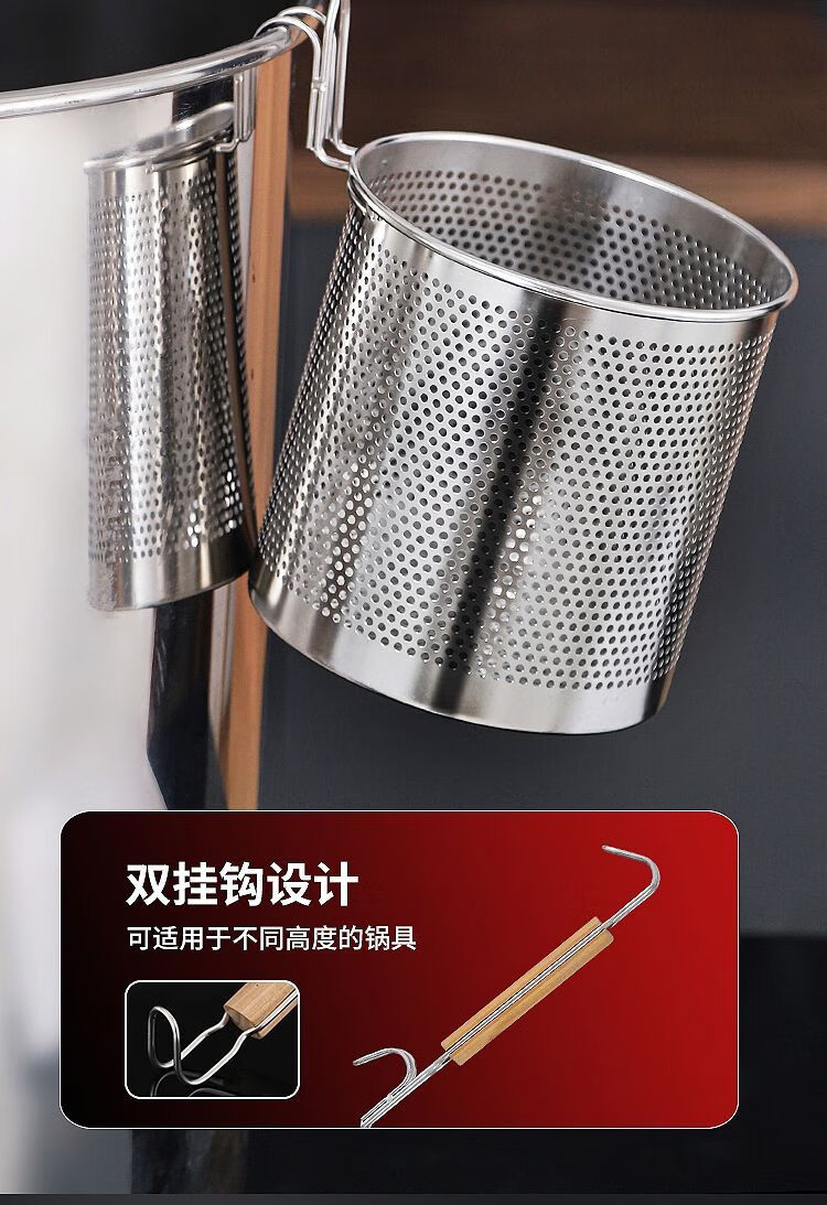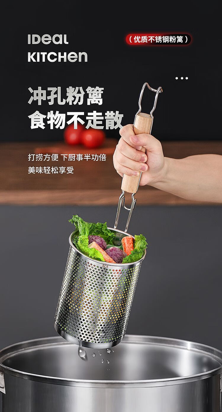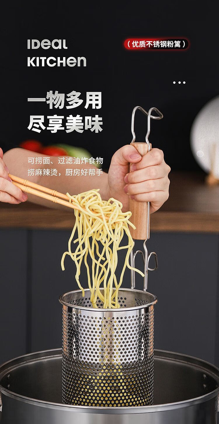 Stainless steel colander, spicy hot noodle filter, noodle spoon, cooking noodle spoon, hot vegetable basket colander, large colander 16cm - punched noodle fence flat handle