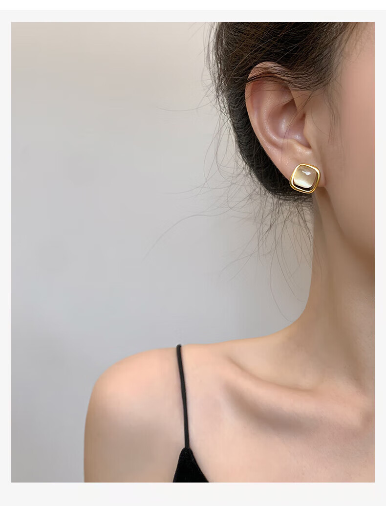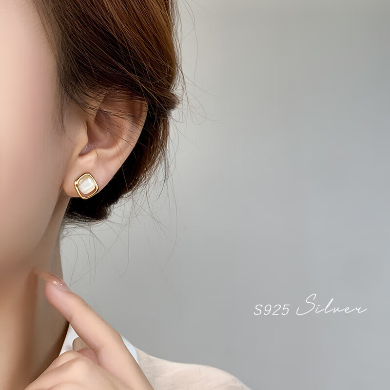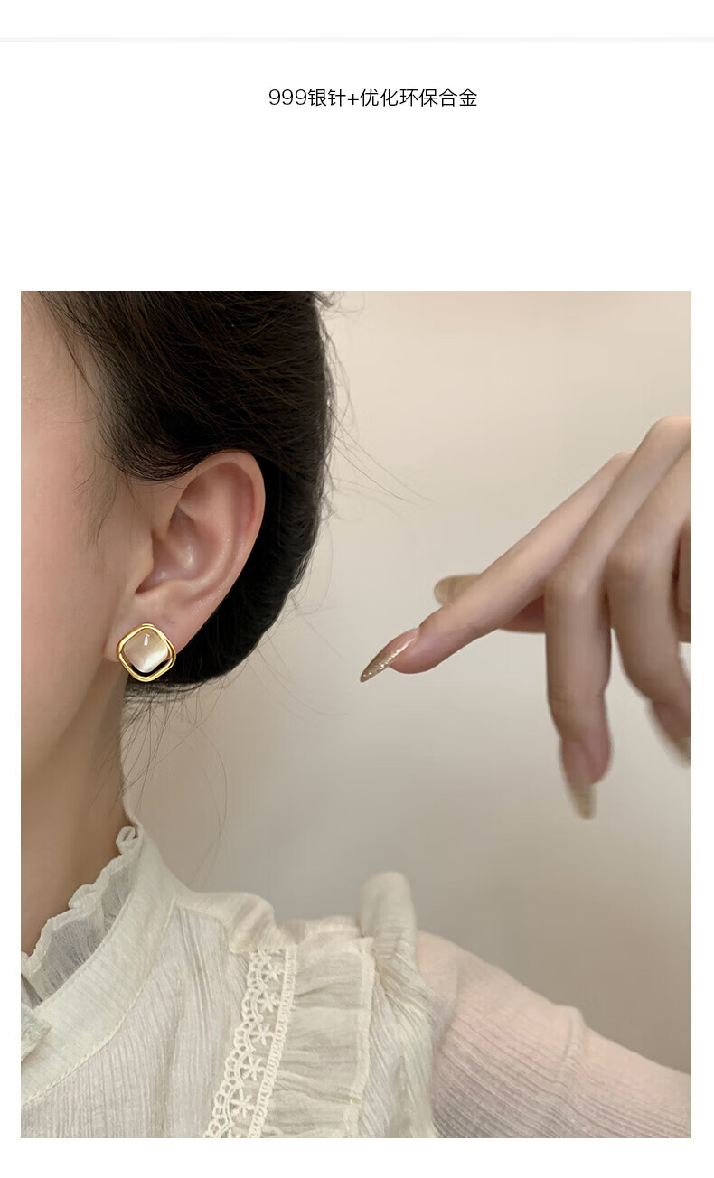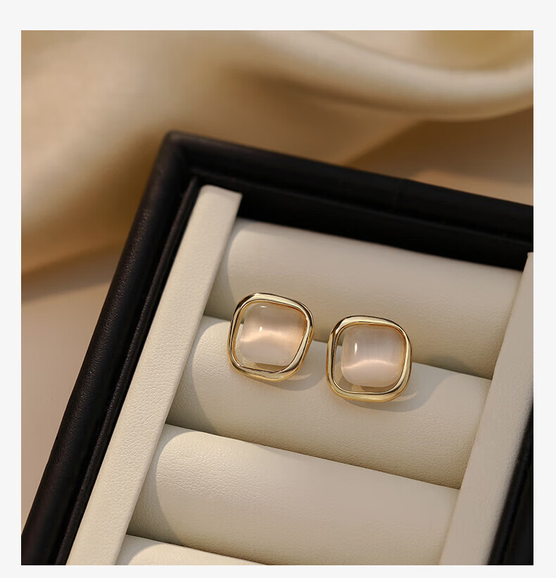 Kaximu S925 sterling silver earrings cat's eye stone earrings for women light luxury high-end 2025 new earrings temperament earrings square cat's eye stone earrings 925 silver needles