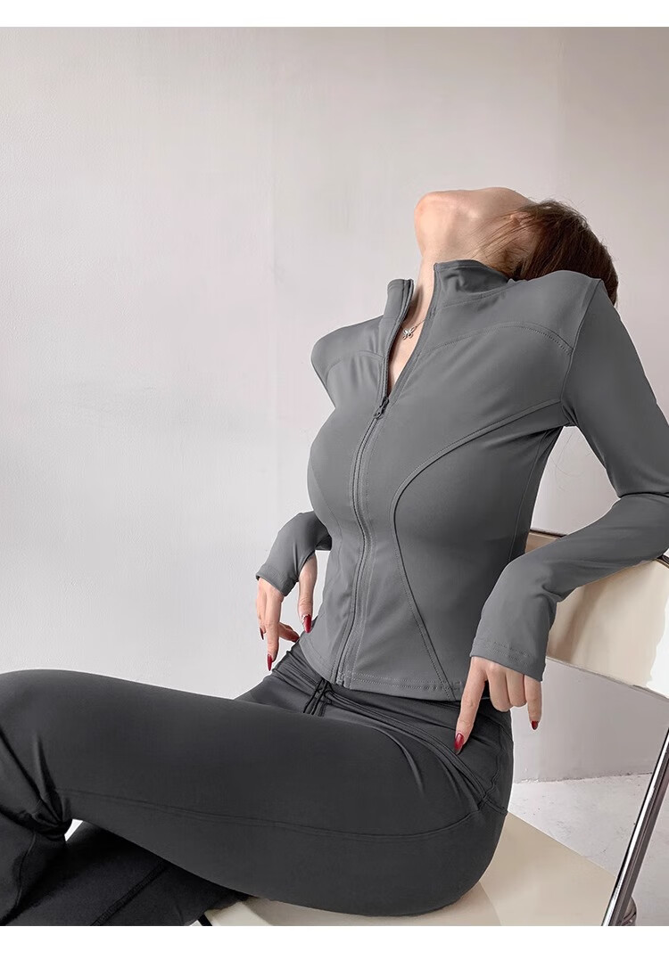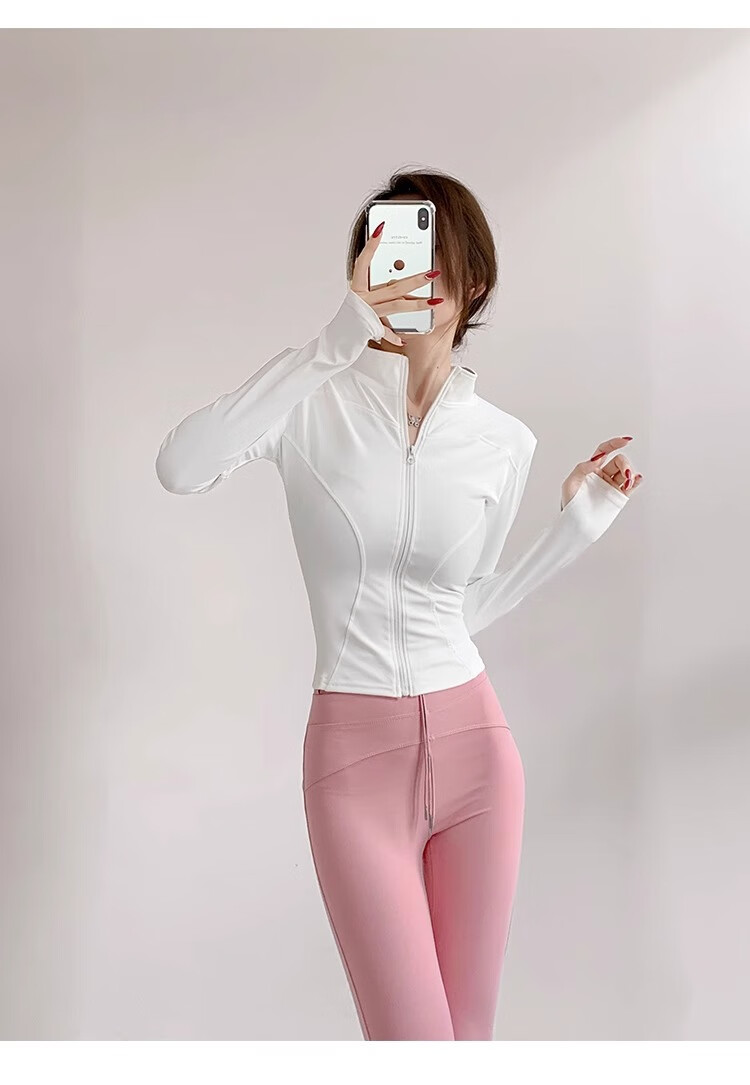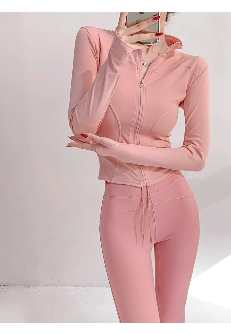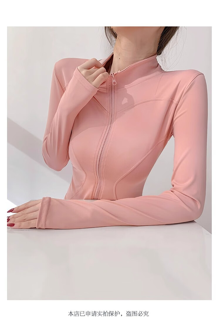 Autumn and winter slim fitness clothes Pilates yoga clothes outdoor sports running quick-drying jacket women's tight training clothes Barbie pink XL recommended 115-130 Jin Jin equals 0.5 kg