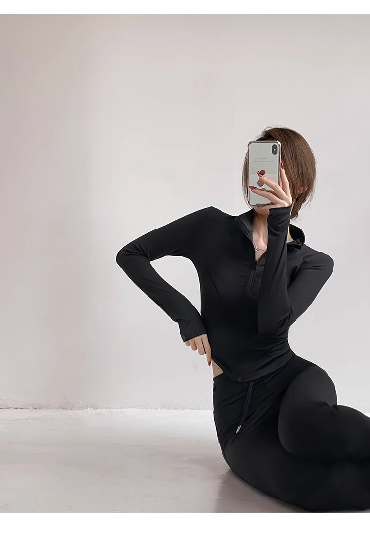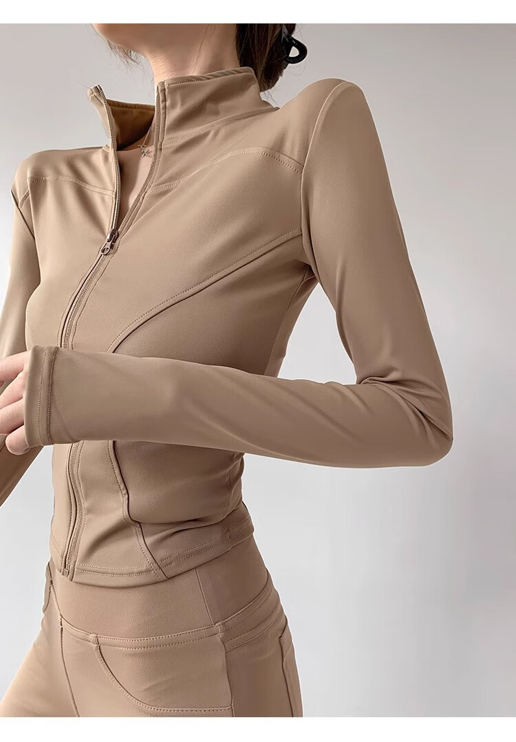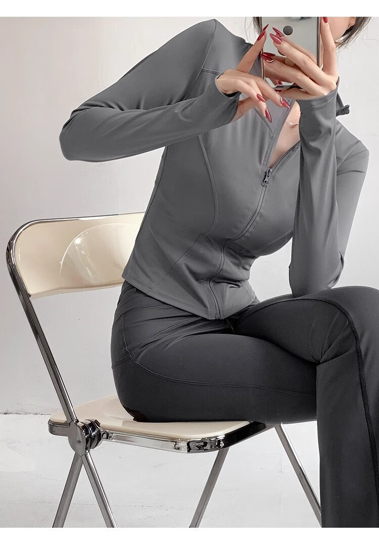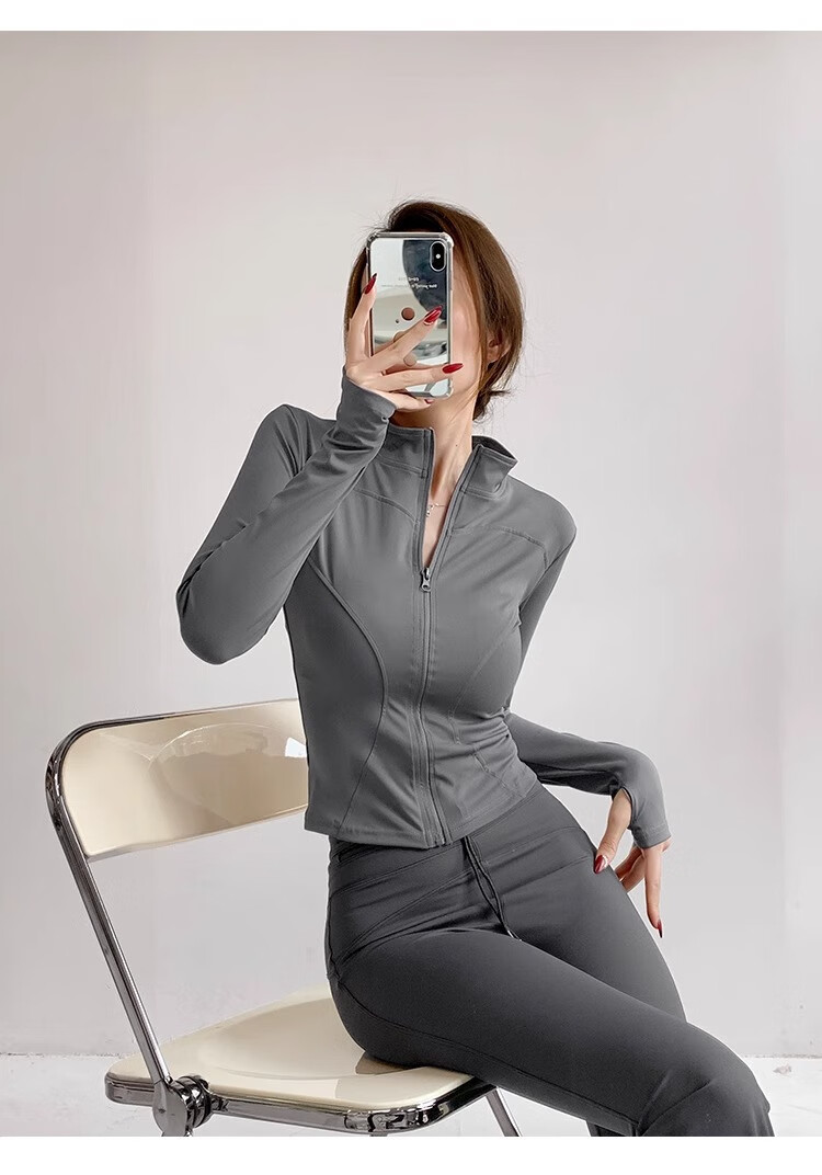 Autumn and winter slim fitness clothes Pilates yoga clothes outdoor sports running quick-drying jacket women's tight training clothes Barbie pink XL recommended 115-130 Jin Jin equals 0.5 kg