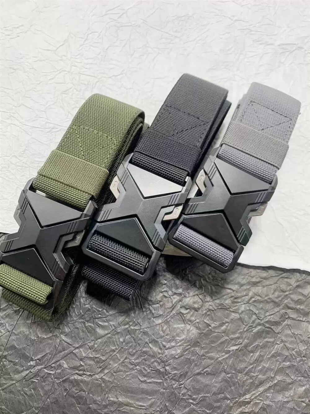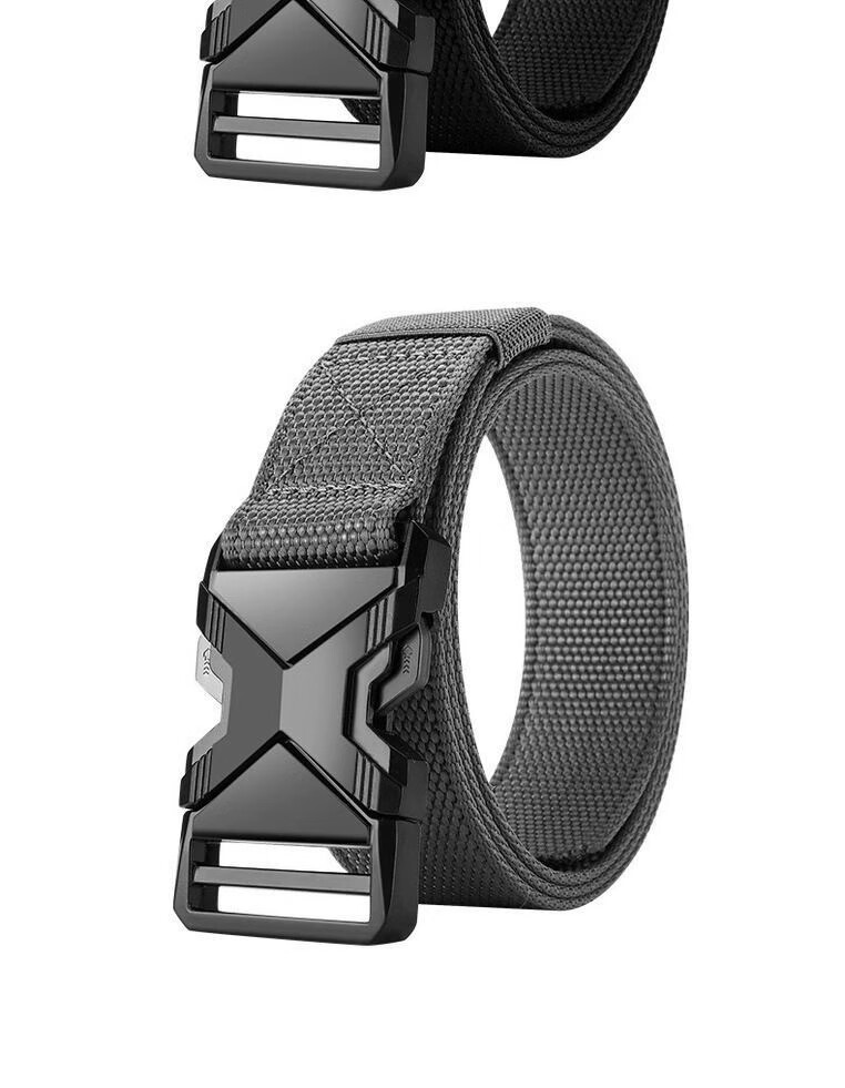 Alloy tactical buckle men's cloth belt outdoor sports stretch canvas casual overalls elastic youth military training black trendy X buckle 100% alloy buckle + elastic belt body 125cm