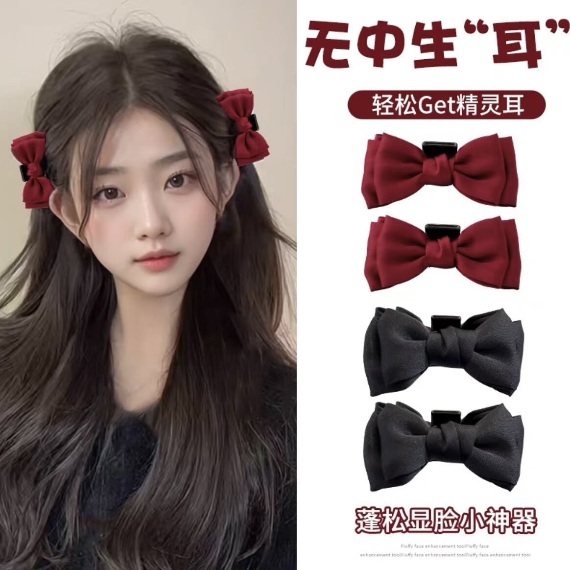 Princess head black bow small clip female hairpin elf ear bangs clip hairpin behind the ear side clip headdress main picture black bow 1 pair