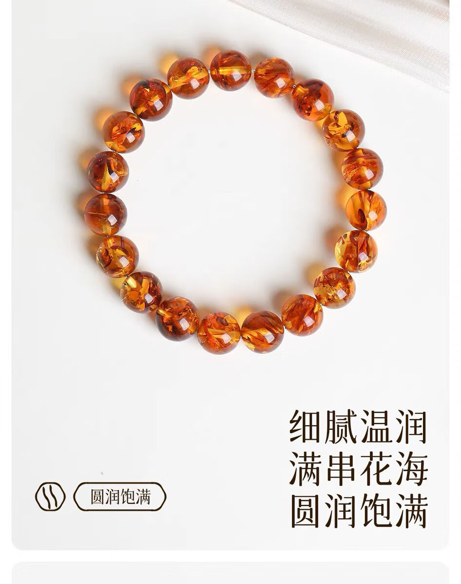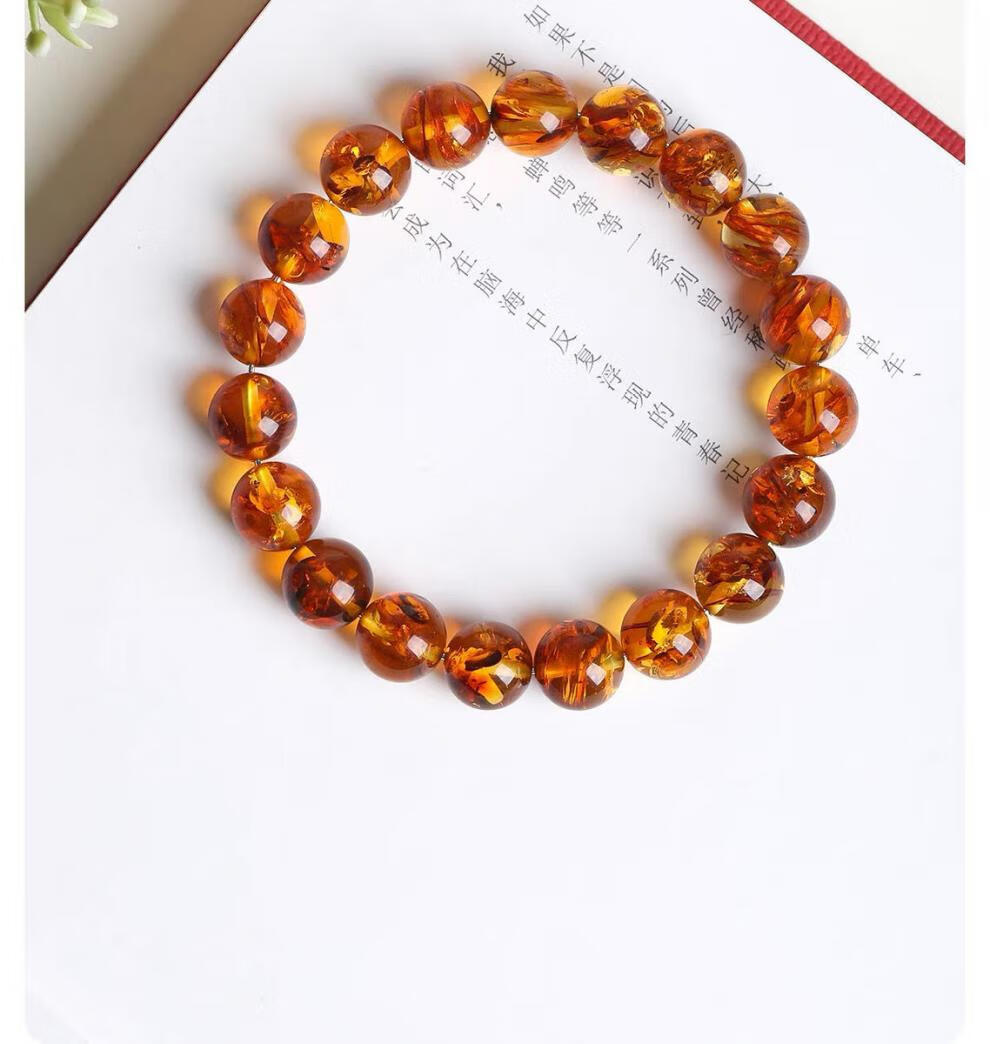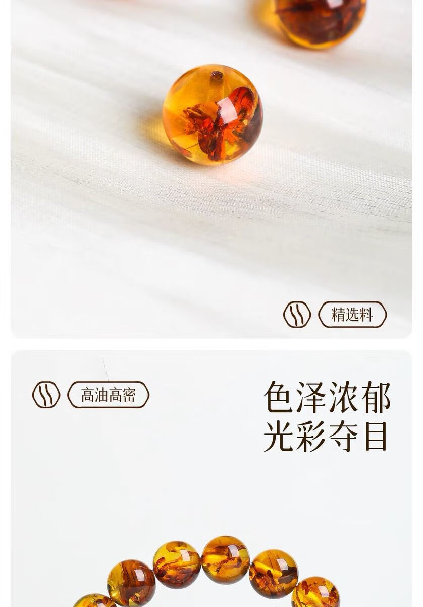 Yuze natural amber, water purified flower amber, medicinal amber, beeswax gold amber, gift box, toy for men and women, natural 6mm flower amber, 108 Buddhist beads