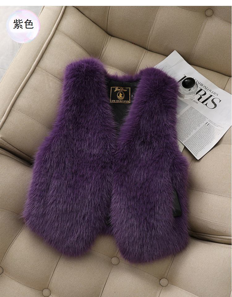 Yinshi Grape Purple 2025 new style imitation fox fur imitation fur vest short vest for women high-end light luxury model slim large size black S