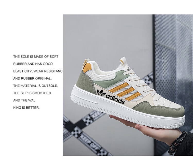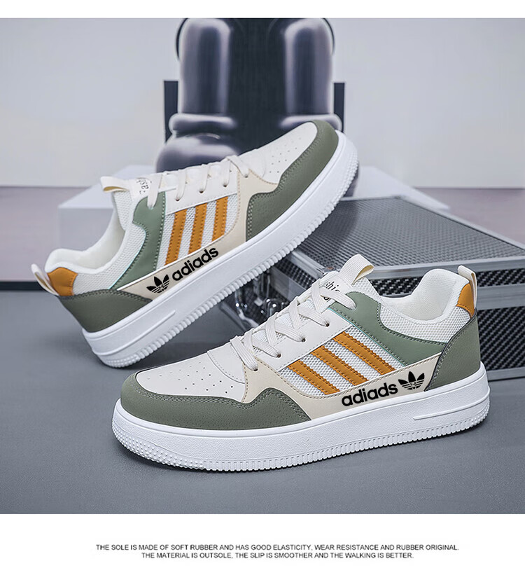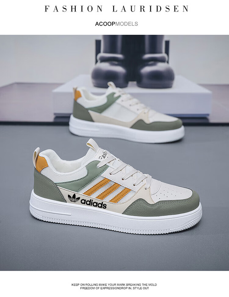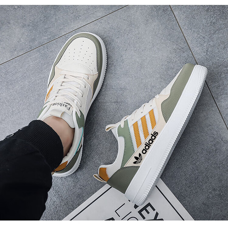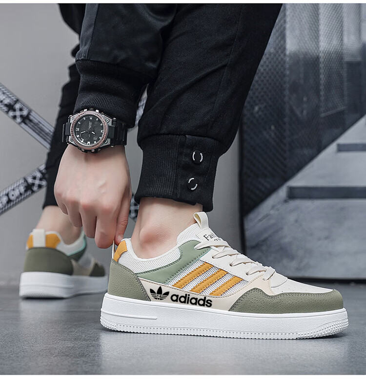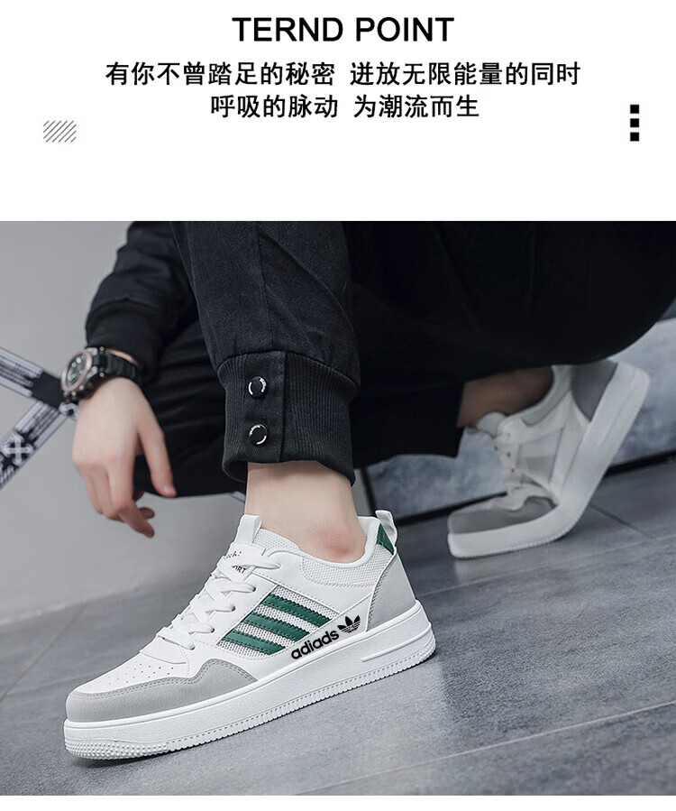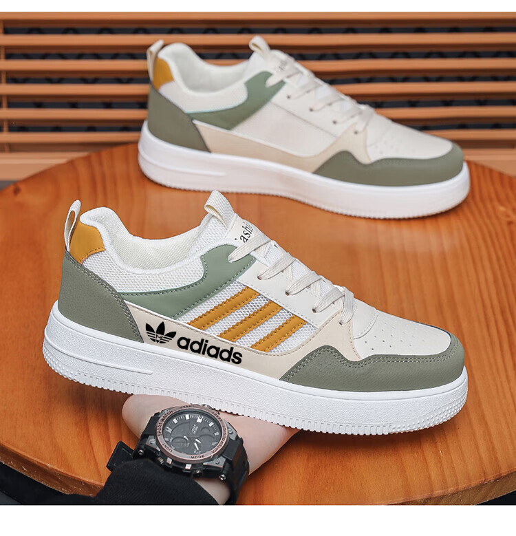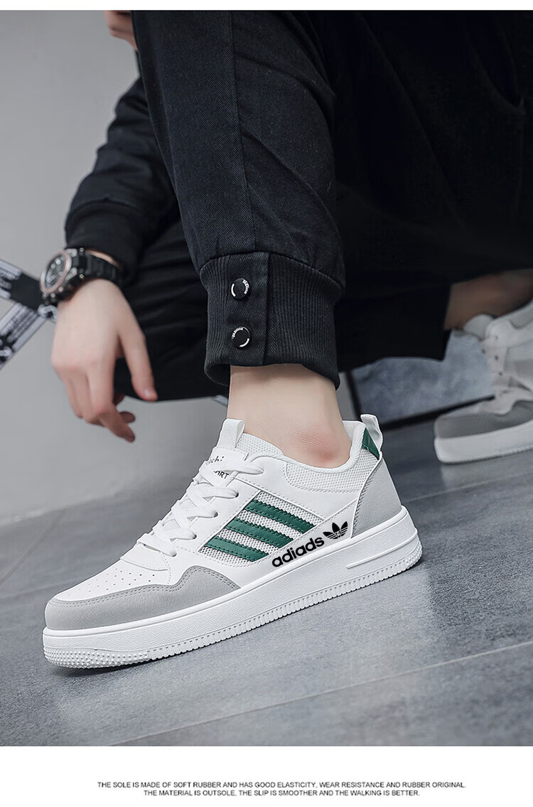 Broken code men's shoes 2025 summer breathable sports shoes men's trendy white shoes sneakers men's versatile casual shoes men AD522 white and green leather single layer 41