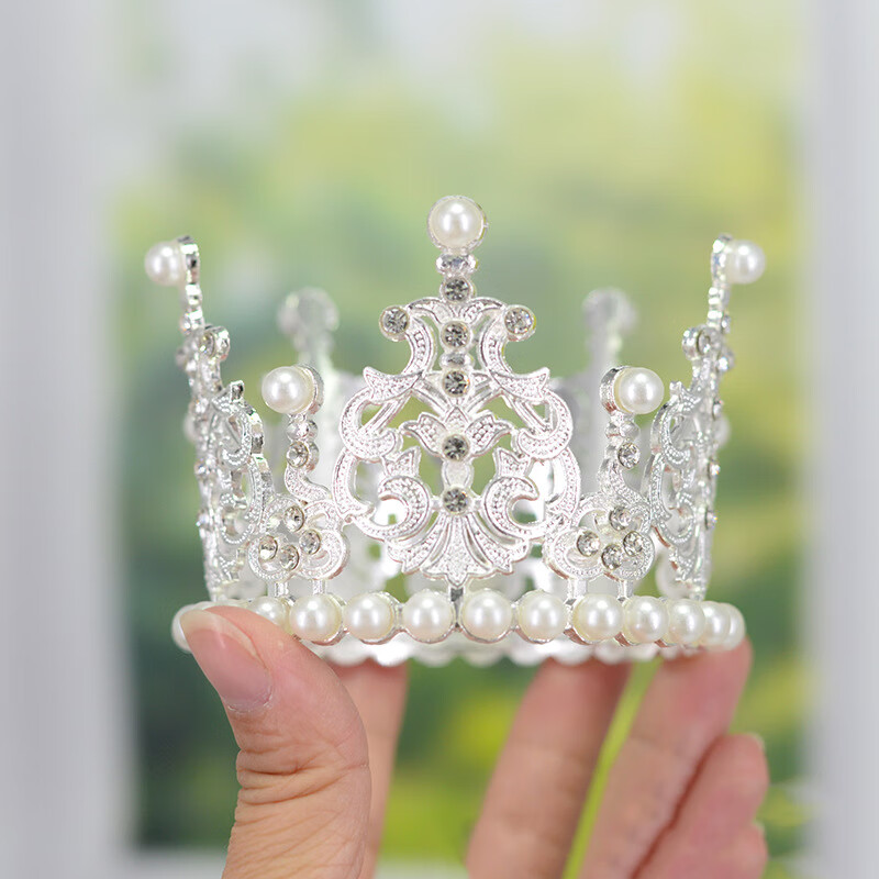Children's small crown alloy small hair crown rhombus corner exquisite cake decoration 7-leaf clover mini silver