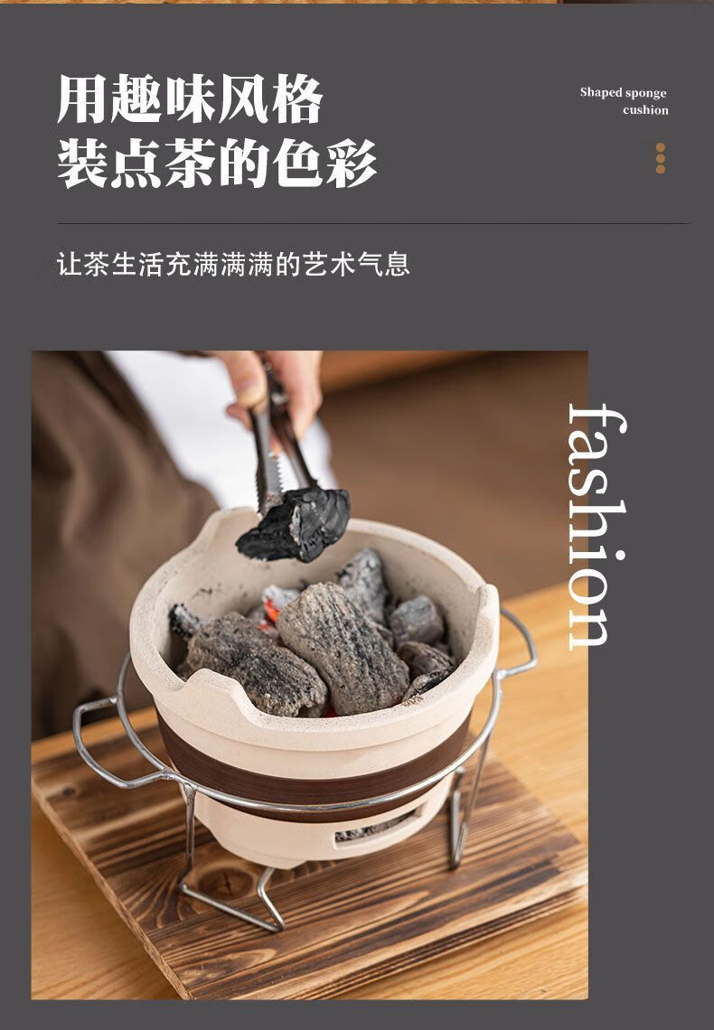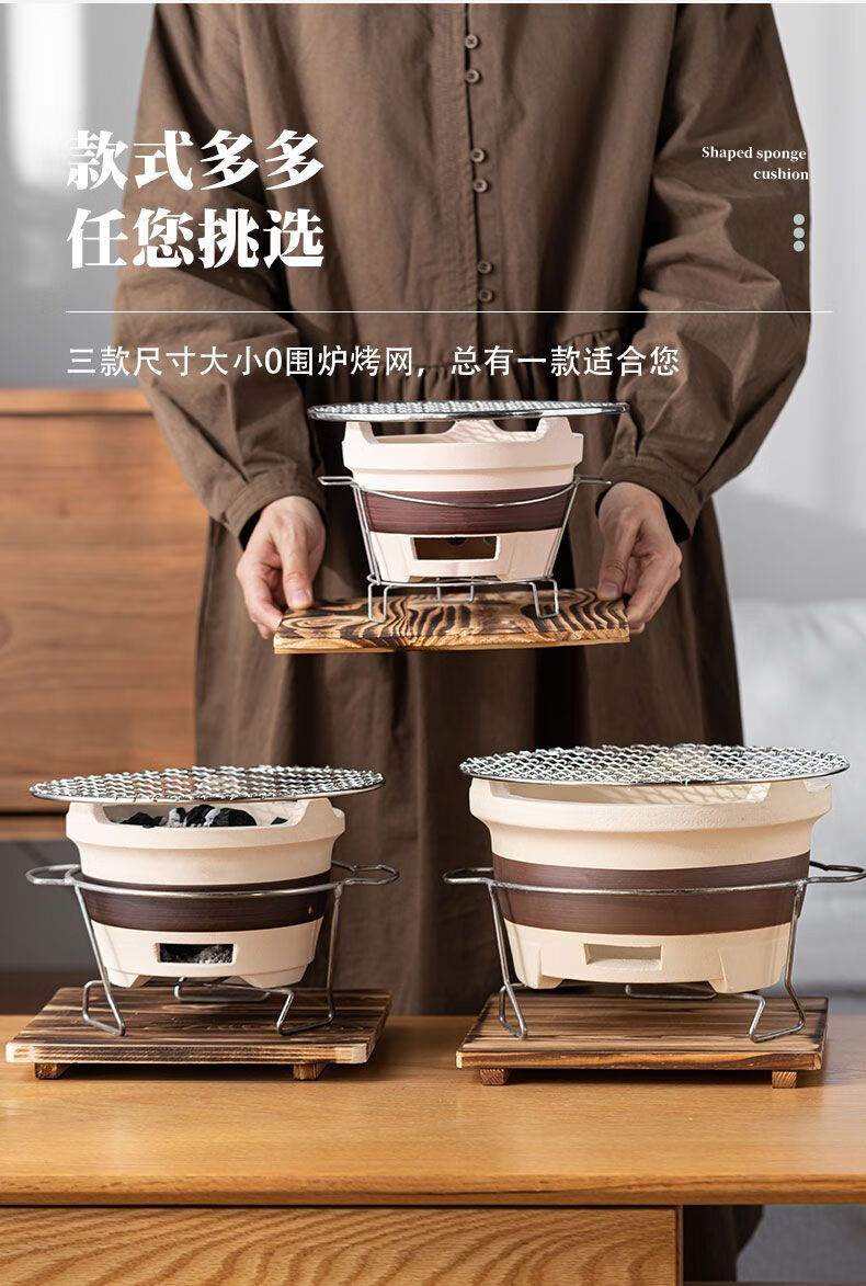 Cooking tea around the stove, indoor old-fashioned edge stove, Internet celebrity roasting stove, charcoal mud stove, outdoor carbon stove, free tea towel + carbon clip, 20.5CM carbon stove + iron frame + iron mesh + brown can