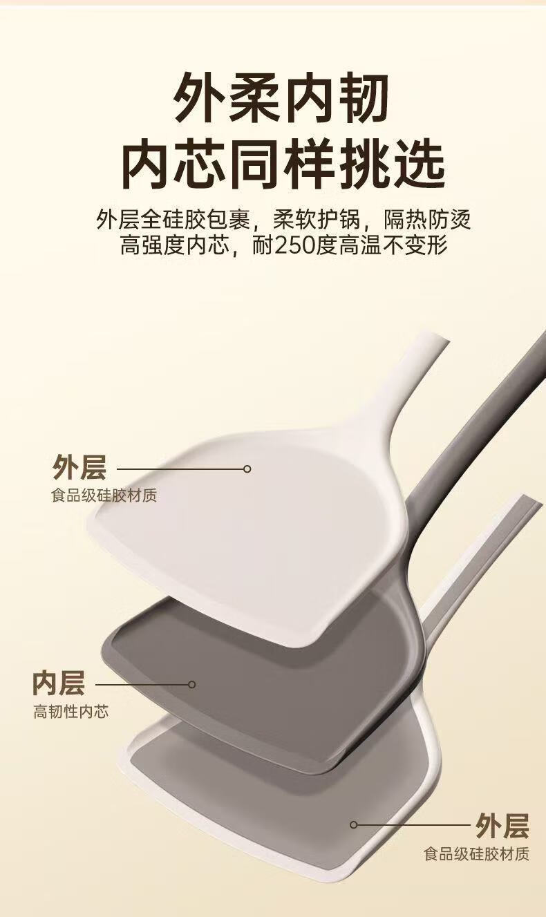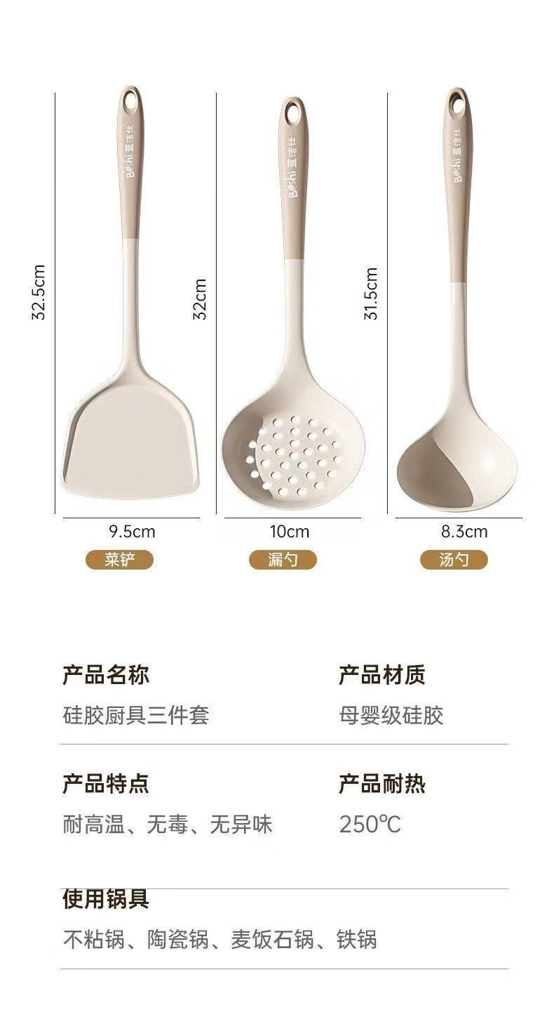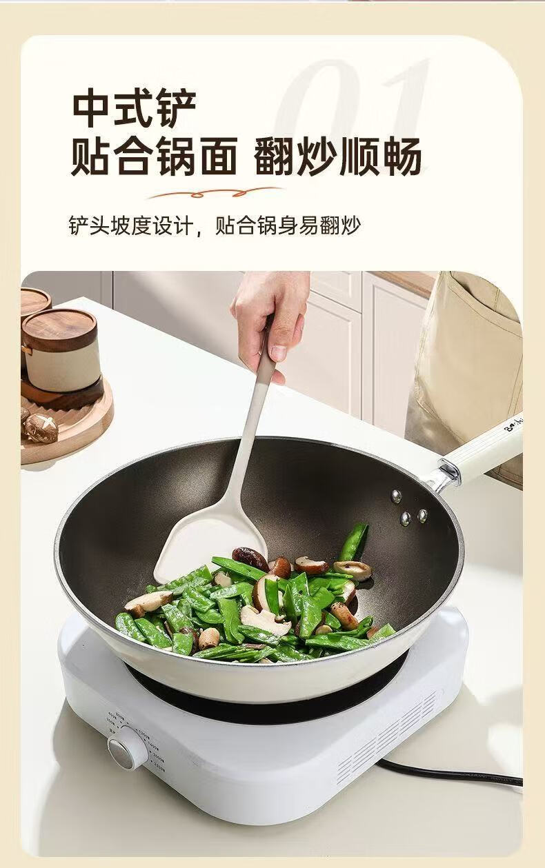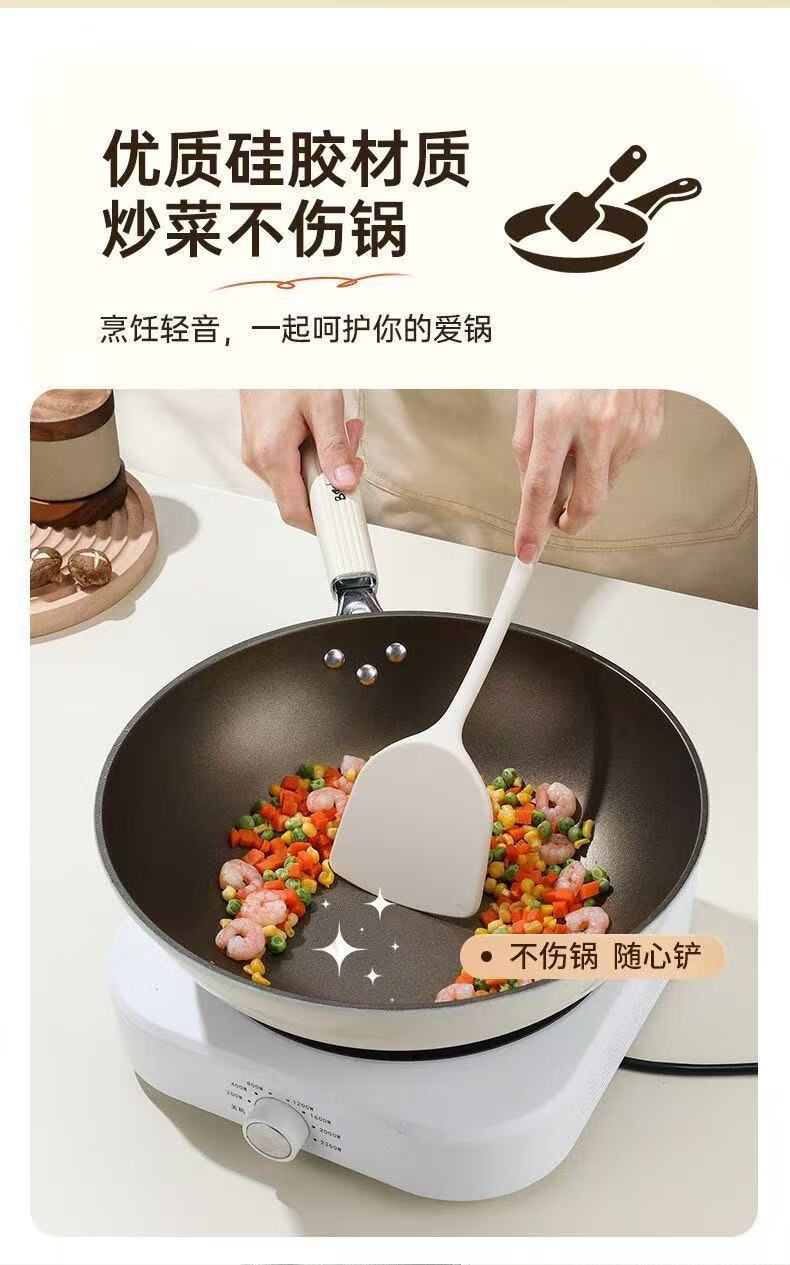 Silicone spatula, cooking spatula, non-stick pan, special household extended food grade high temperature resistant spoon kitchen utensil set, extended handle, maternal and child grade silicone - spatula + spoon