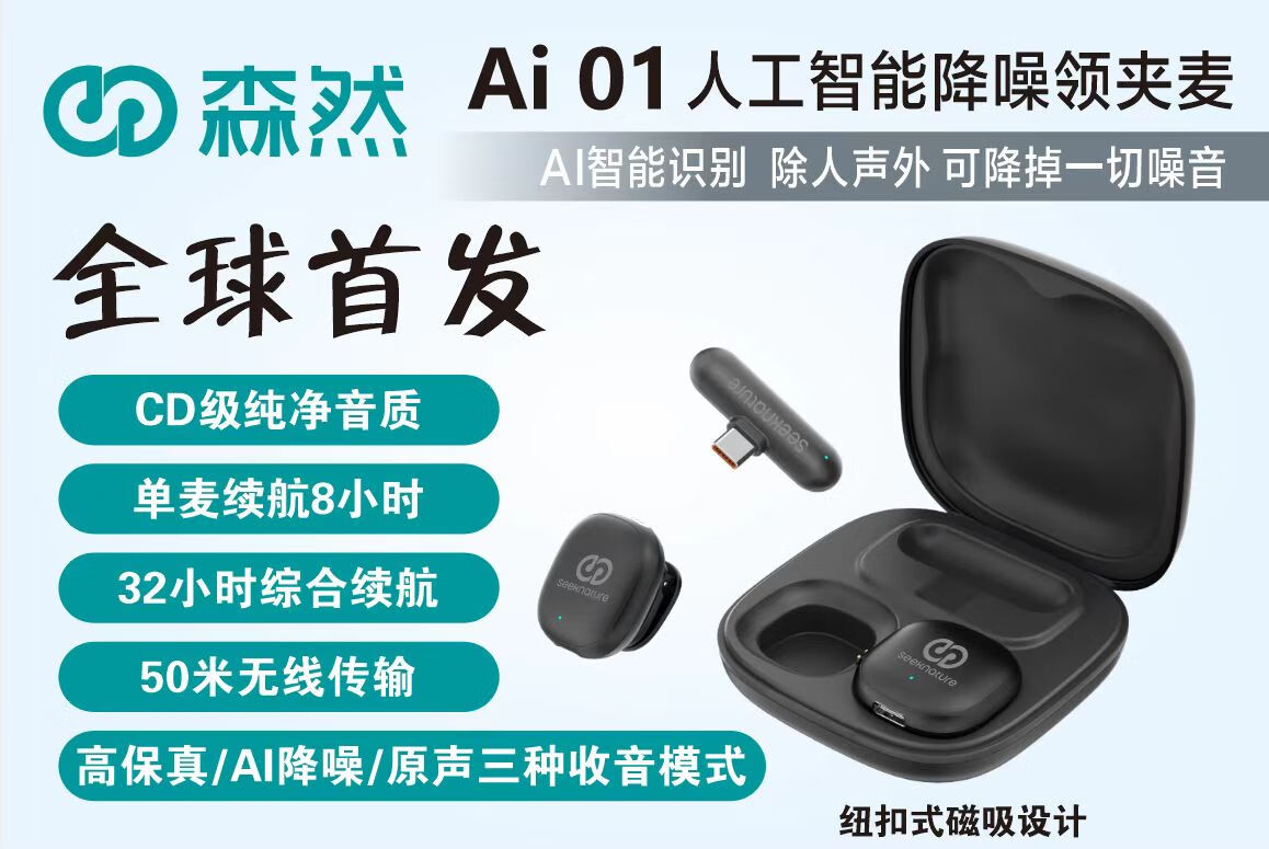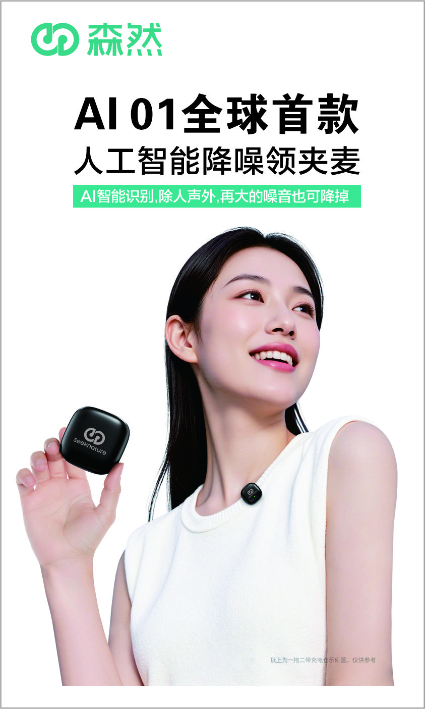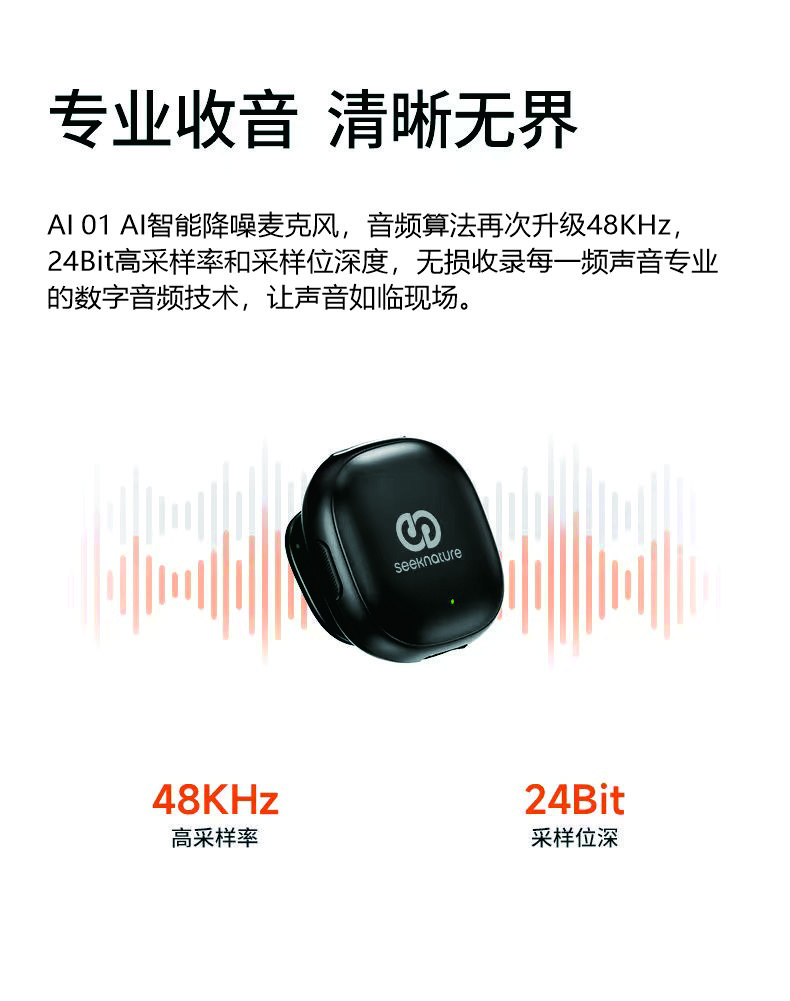 Seeknature's new AI01 wireless lavalier microphone, professional monitoring radio microphone, AI noise reduction, real-time live broadcast and internal recording, MOMA Mammoth one-to-two microphone, interview business shooting radio, new AI01 (powerful noise reduction) Android Apple version 15-17