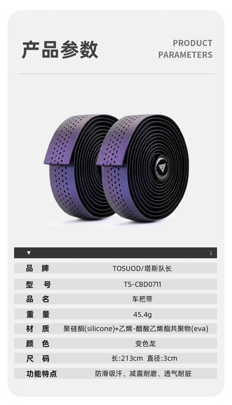 TOSUOD Captain Tas Road Handlebar with Grip Leather Bicycle Handlebar with Anti-slip Wear-Resistant Strap Bicycle Cycling Handlebar Ziqi Donglai - Chameleon EVA Material_Double Shock Absorption