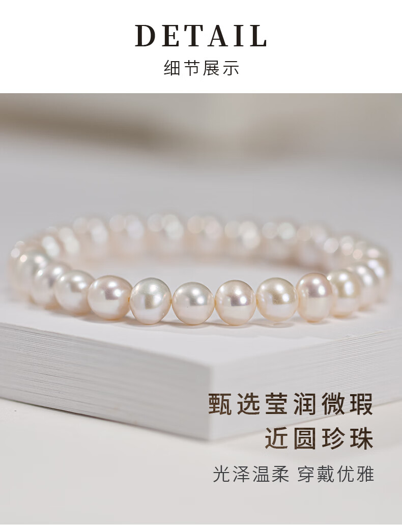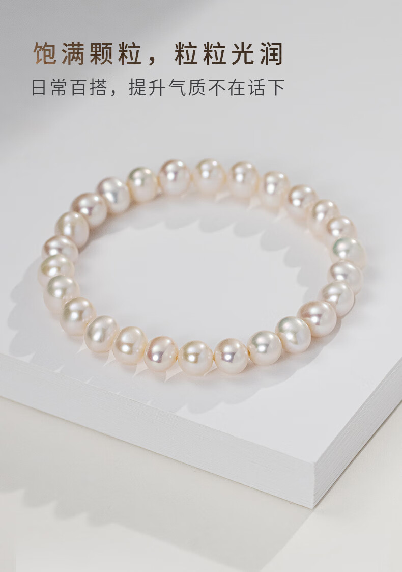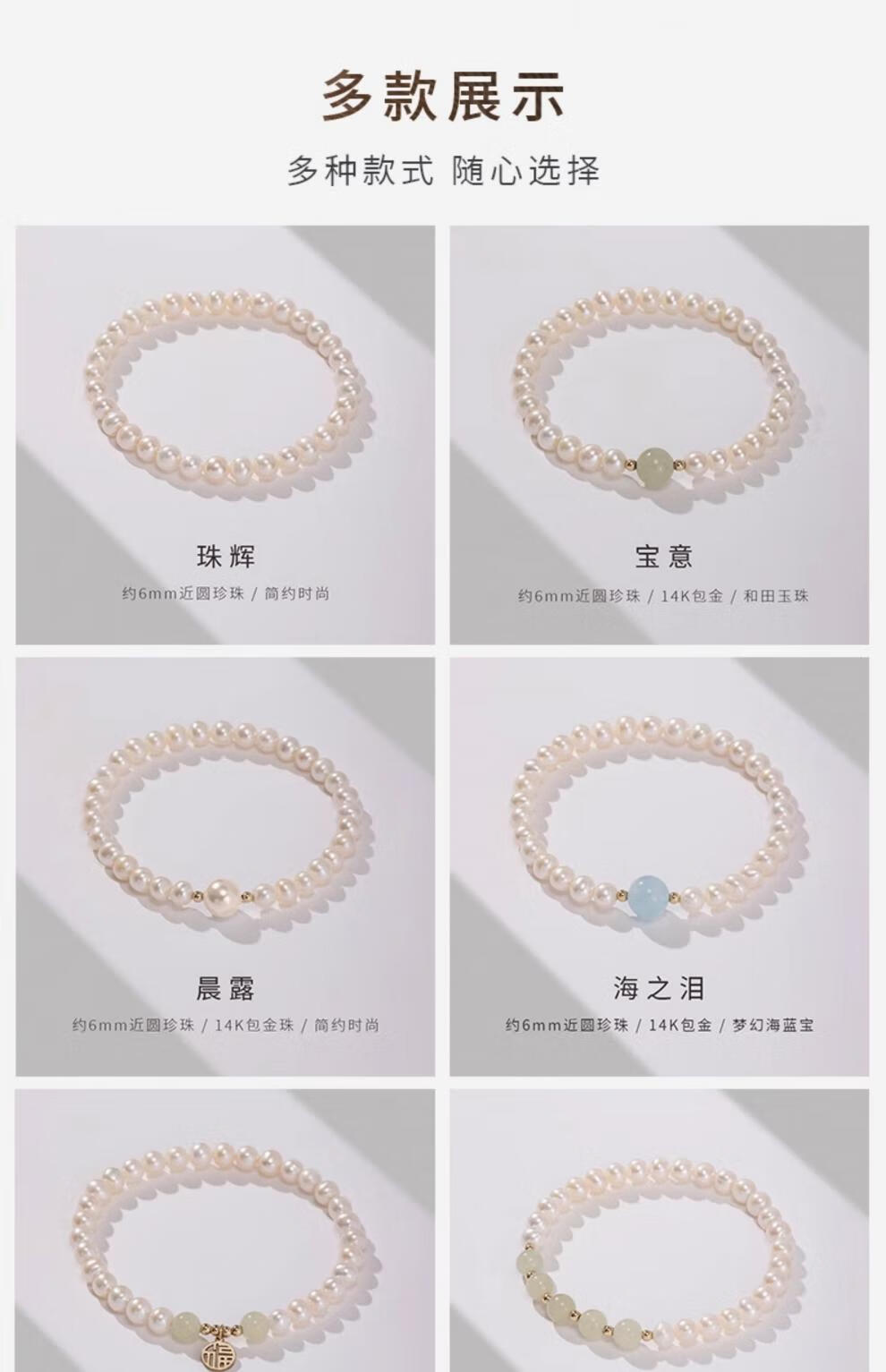 Century-old Fengxiang genuine freshwater pearl bracelet for women Zhuji 2024 new elastic cord French bracelet small stack wear Zhuhui 7-8mm 14K gold beads 16cm