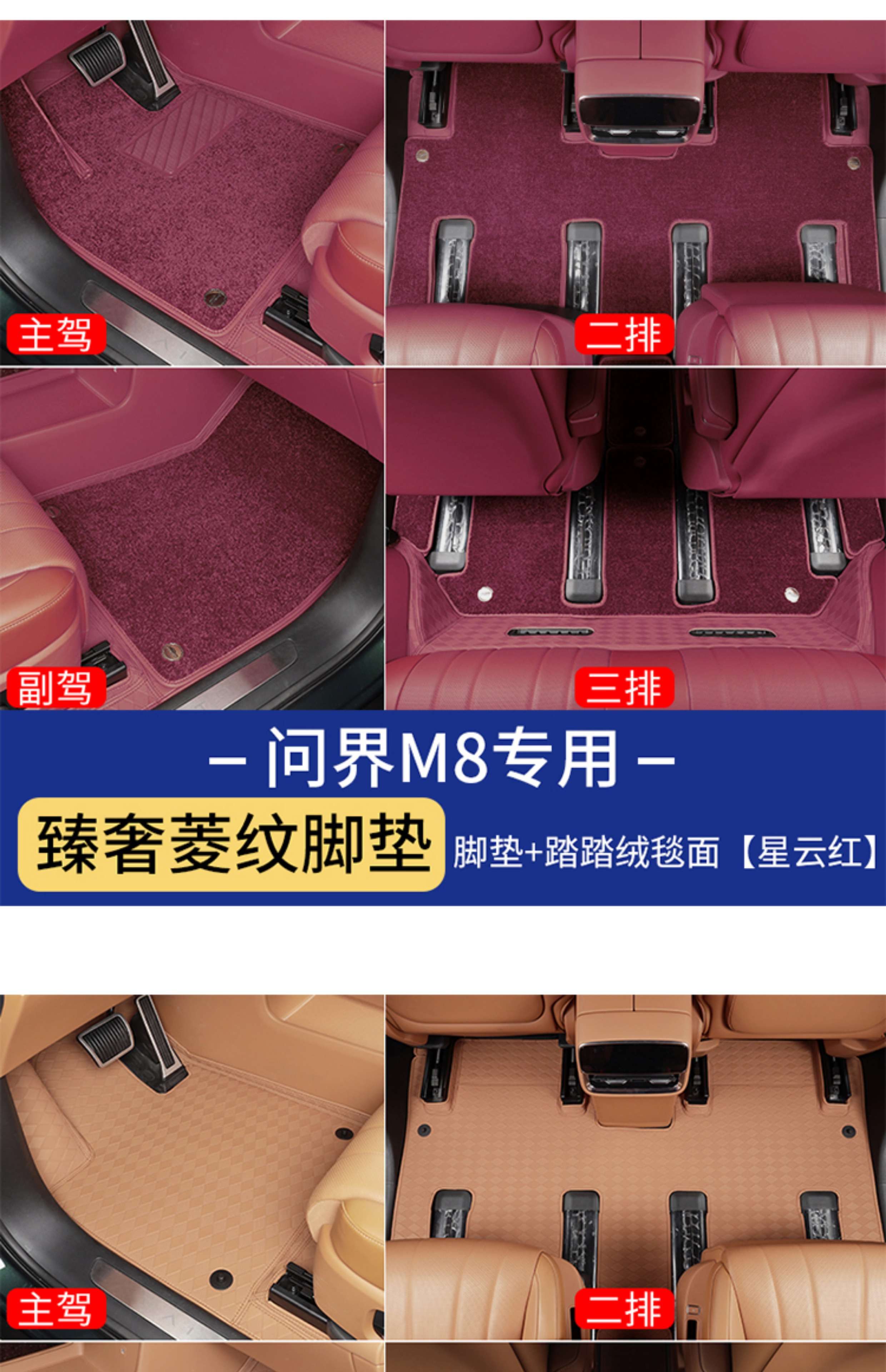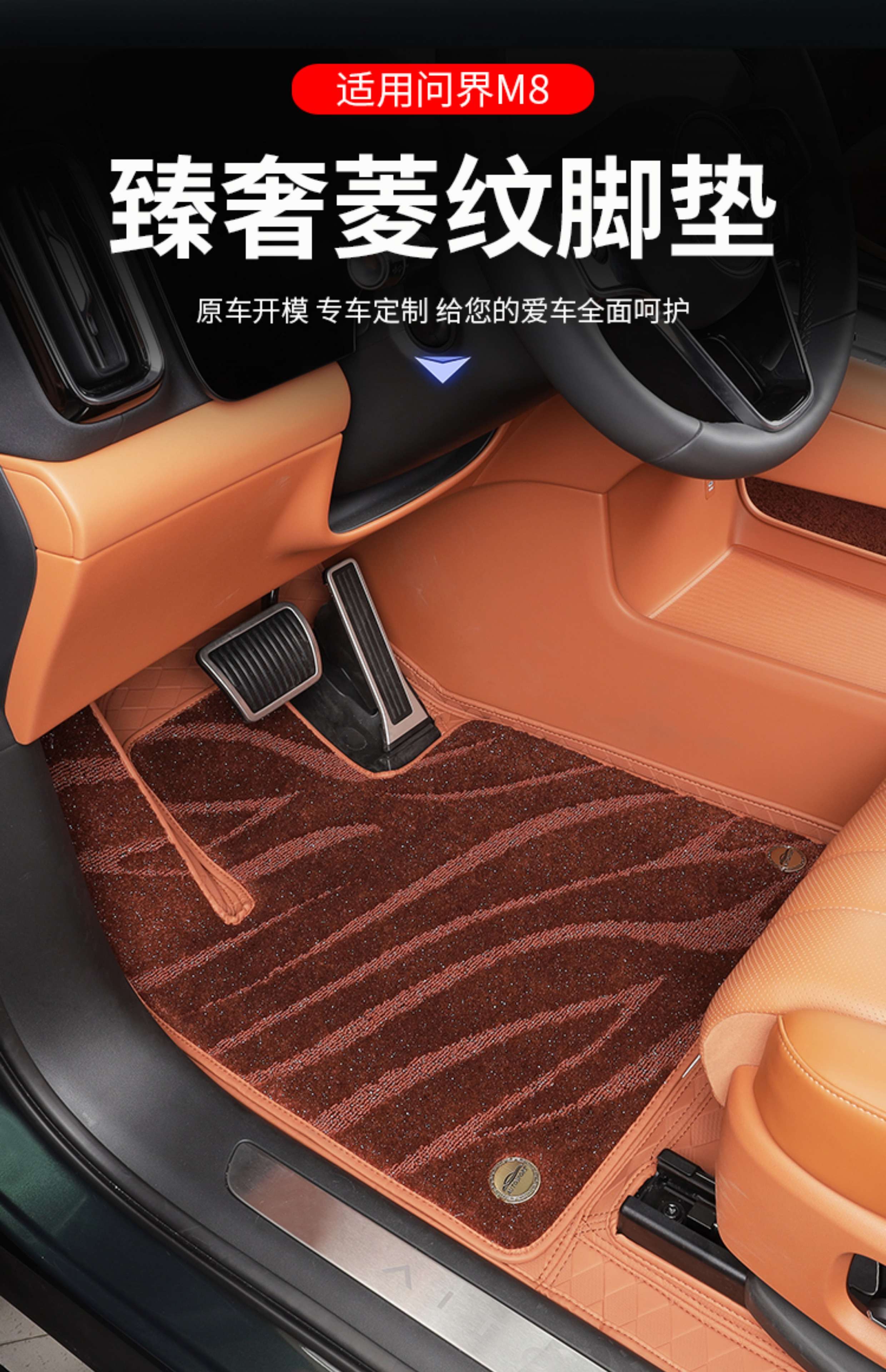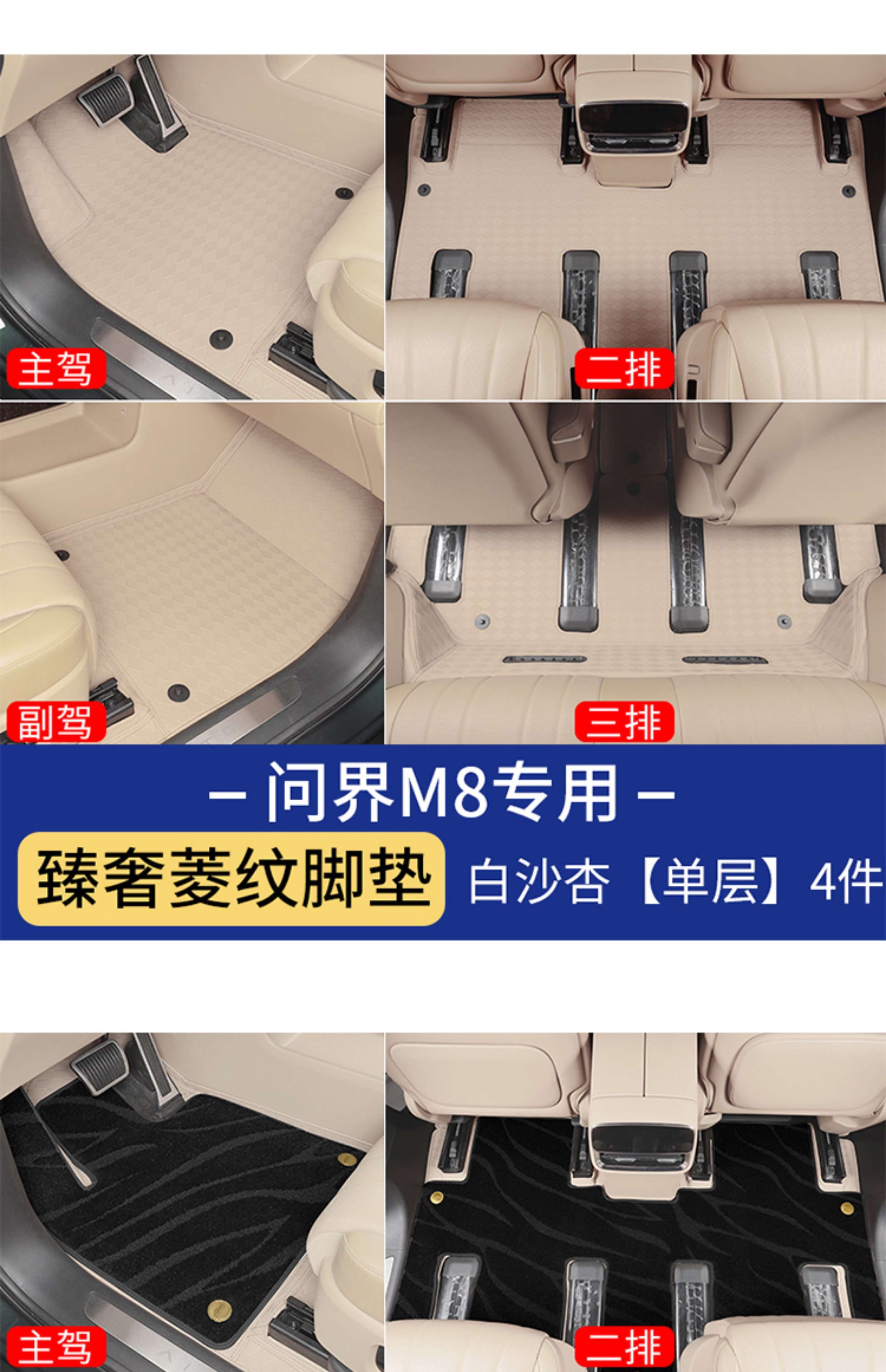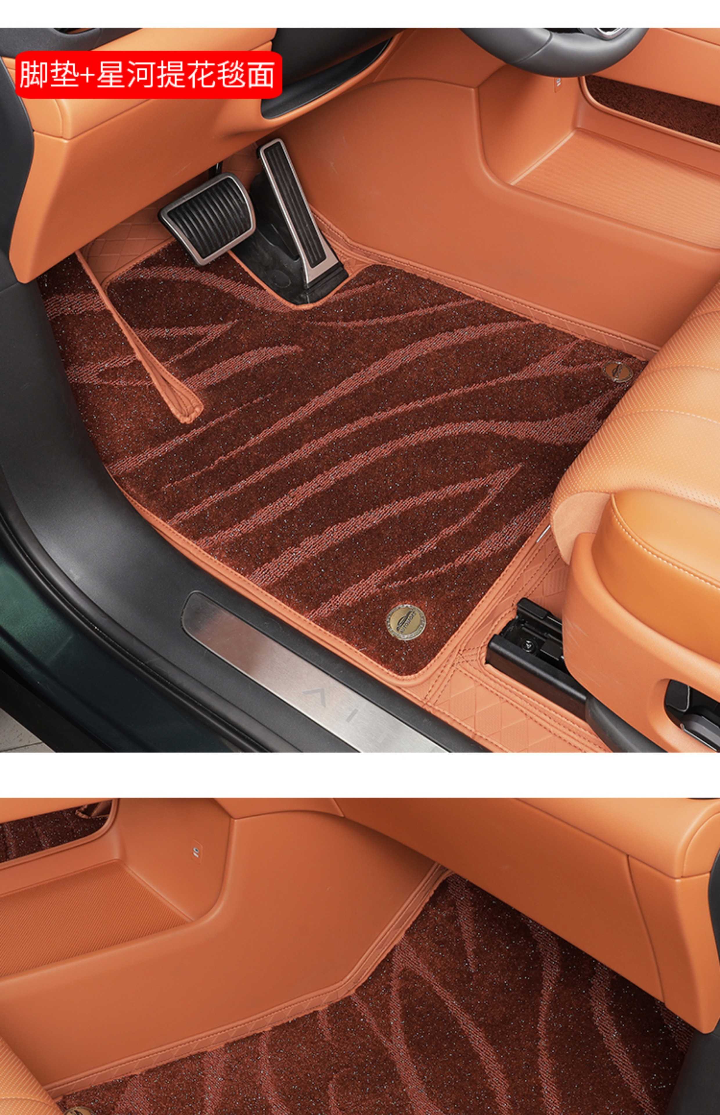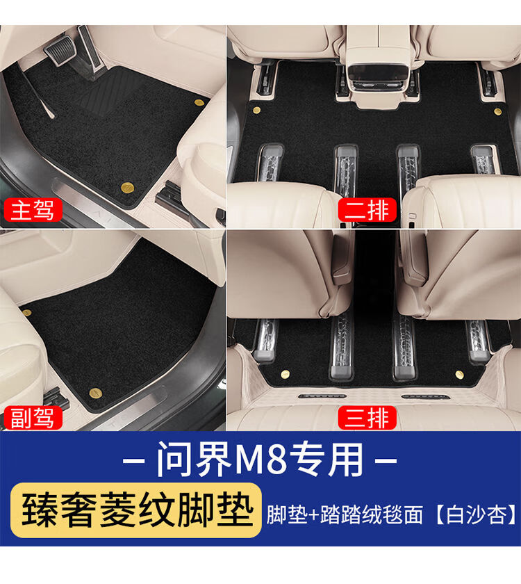Suitable for Wenjie M8 foot pads, fully surrounded by leather, double-layer carpet, waterproof foot mats, interior supplies of the same color (6 seats), Wenjie M8 rhombus leather foot pads + treaded velvet carpet surface, black 9