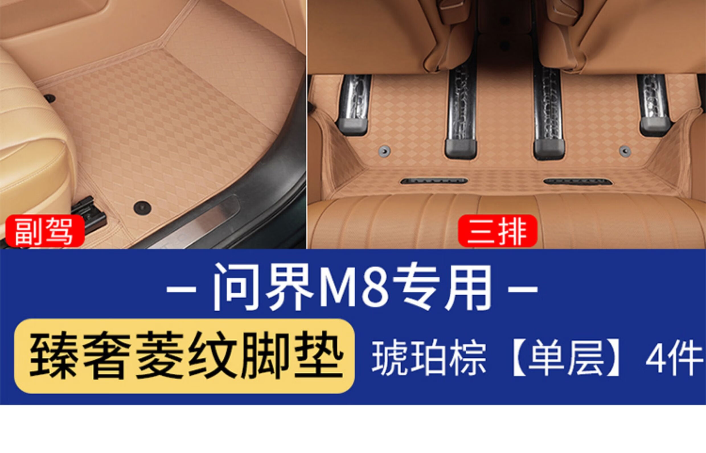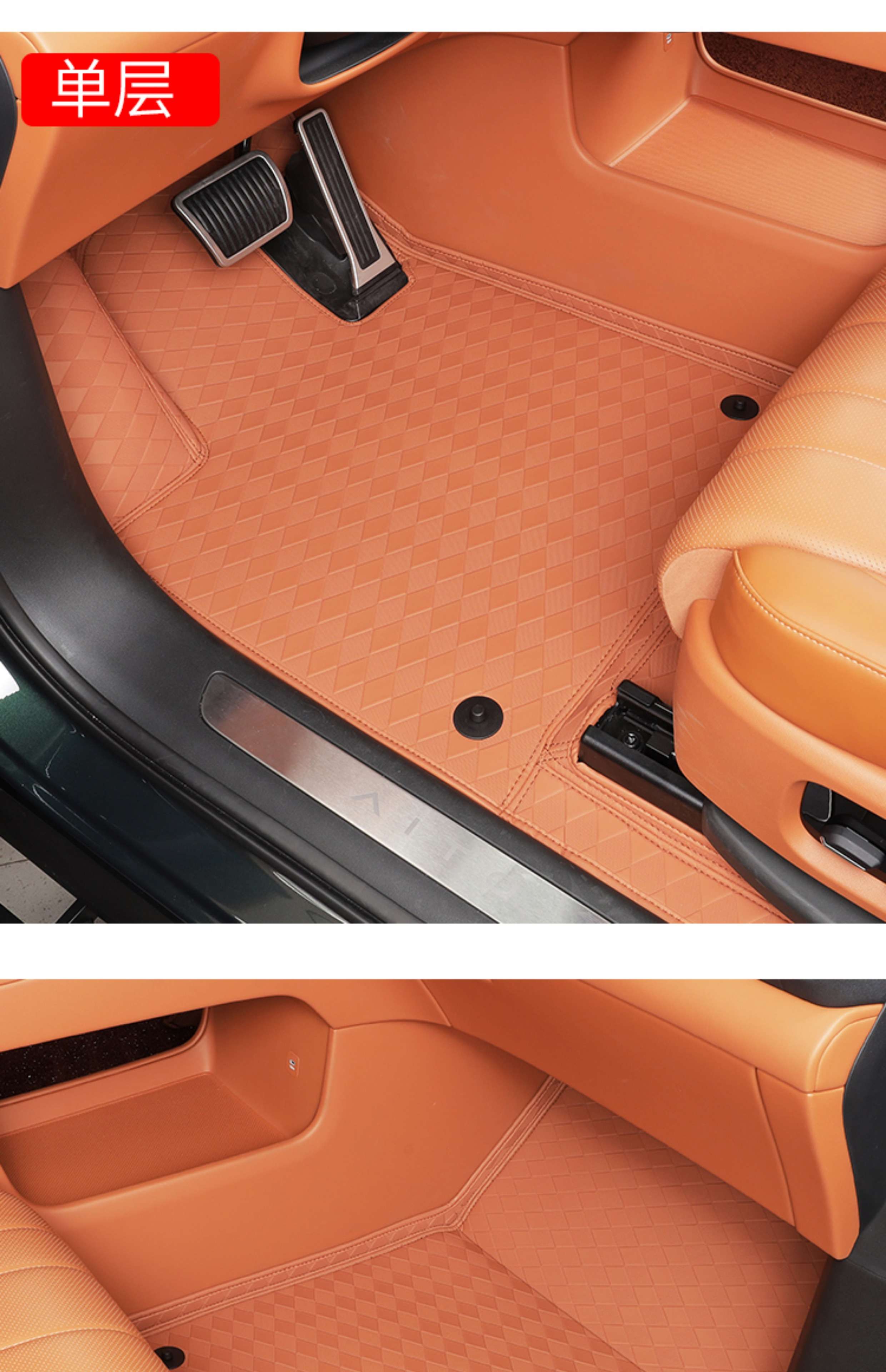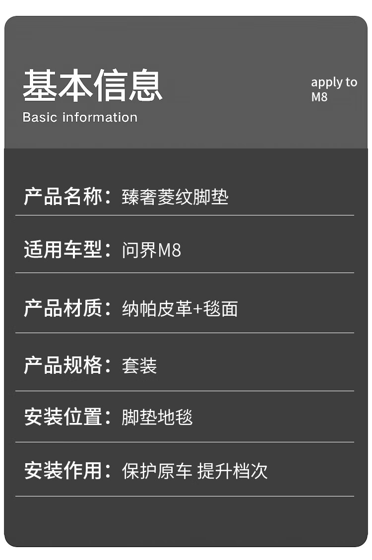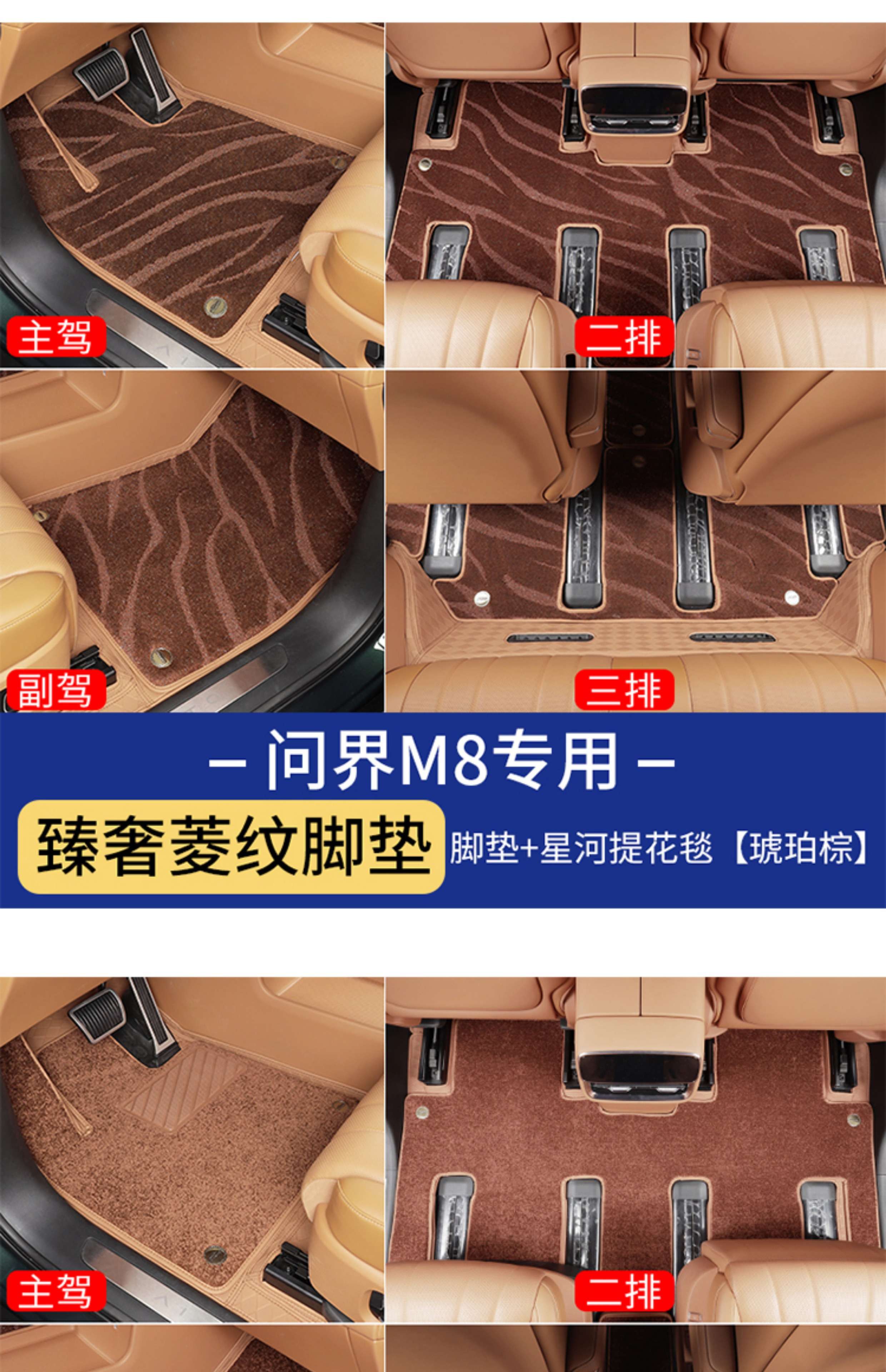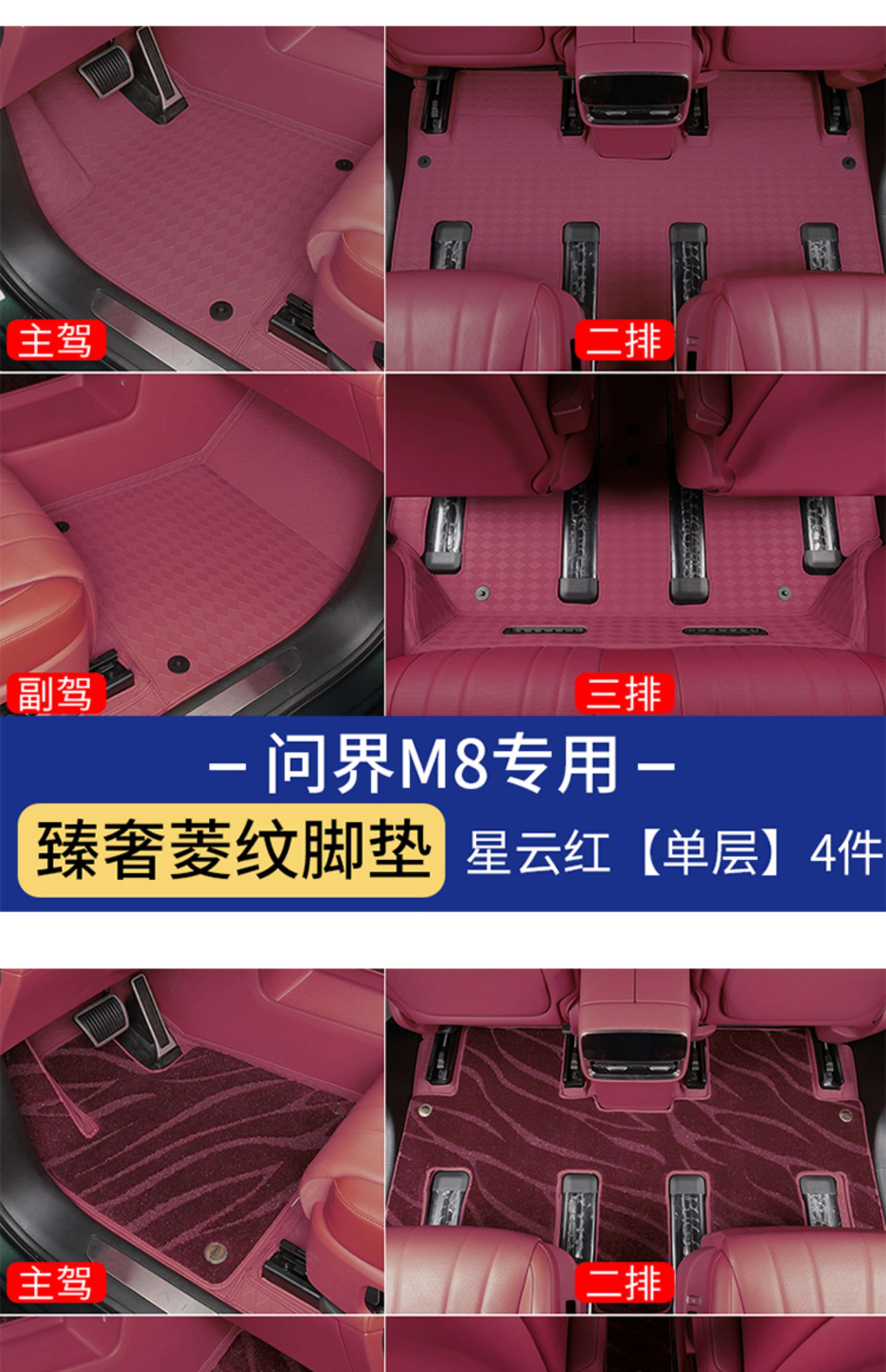Suitable for Wenjie M8 foot pads, fully surrounded by leather, double-layer carpet, waterproof foot mats, interior supplies of the same color (6 seats), Wenjie M8 rhombus leather foot pads + treaded velvet carpet surface, black 9