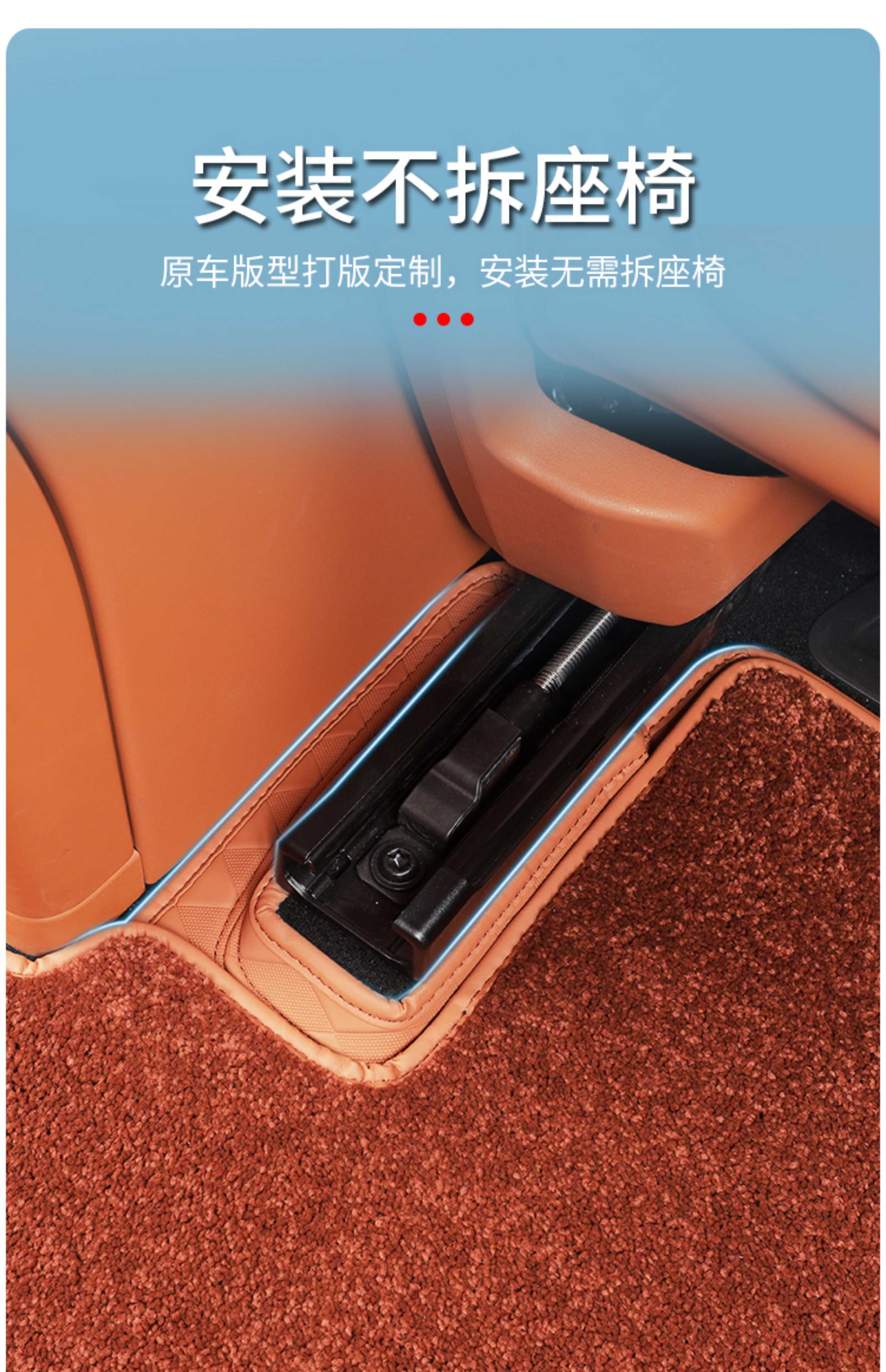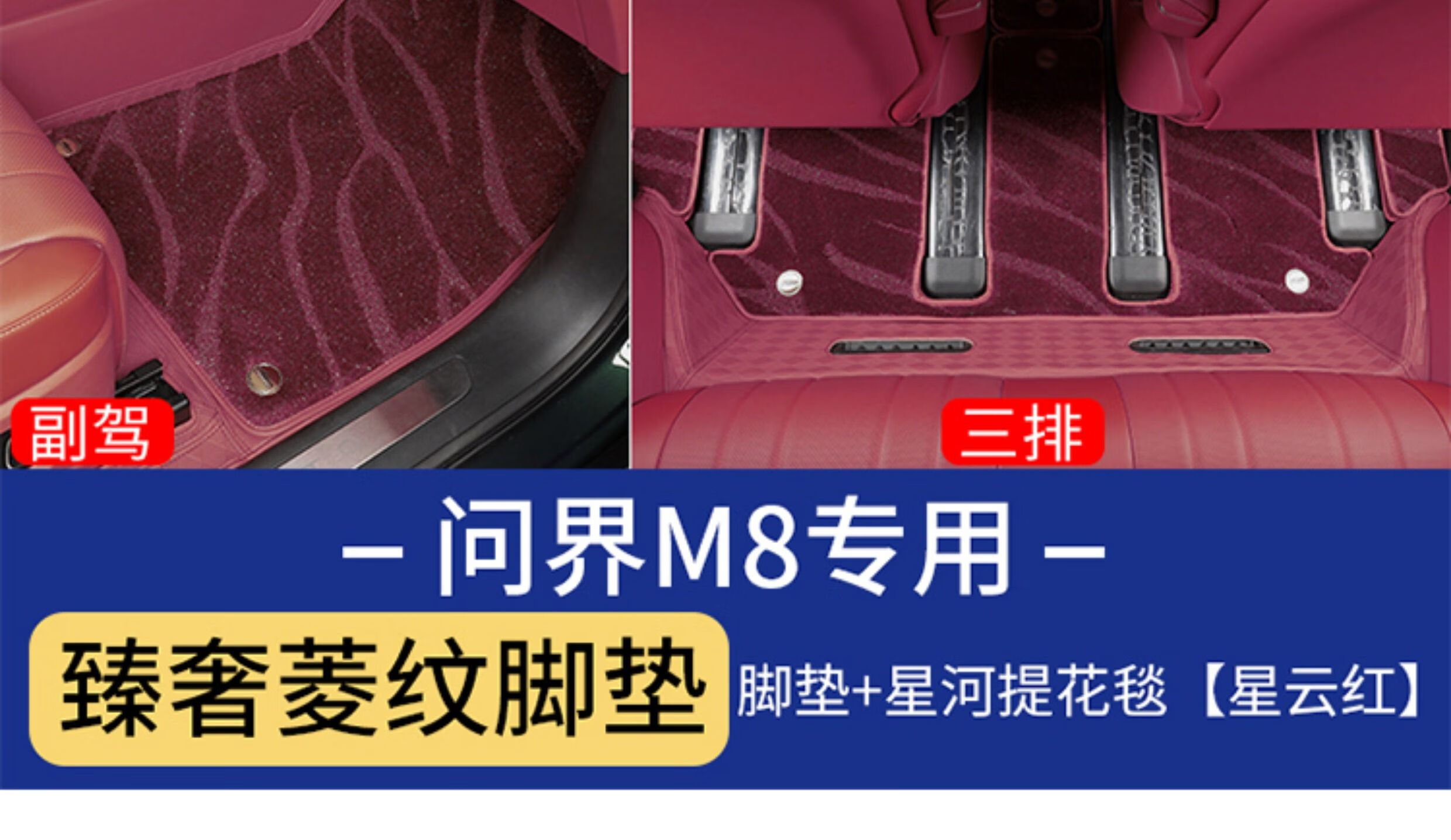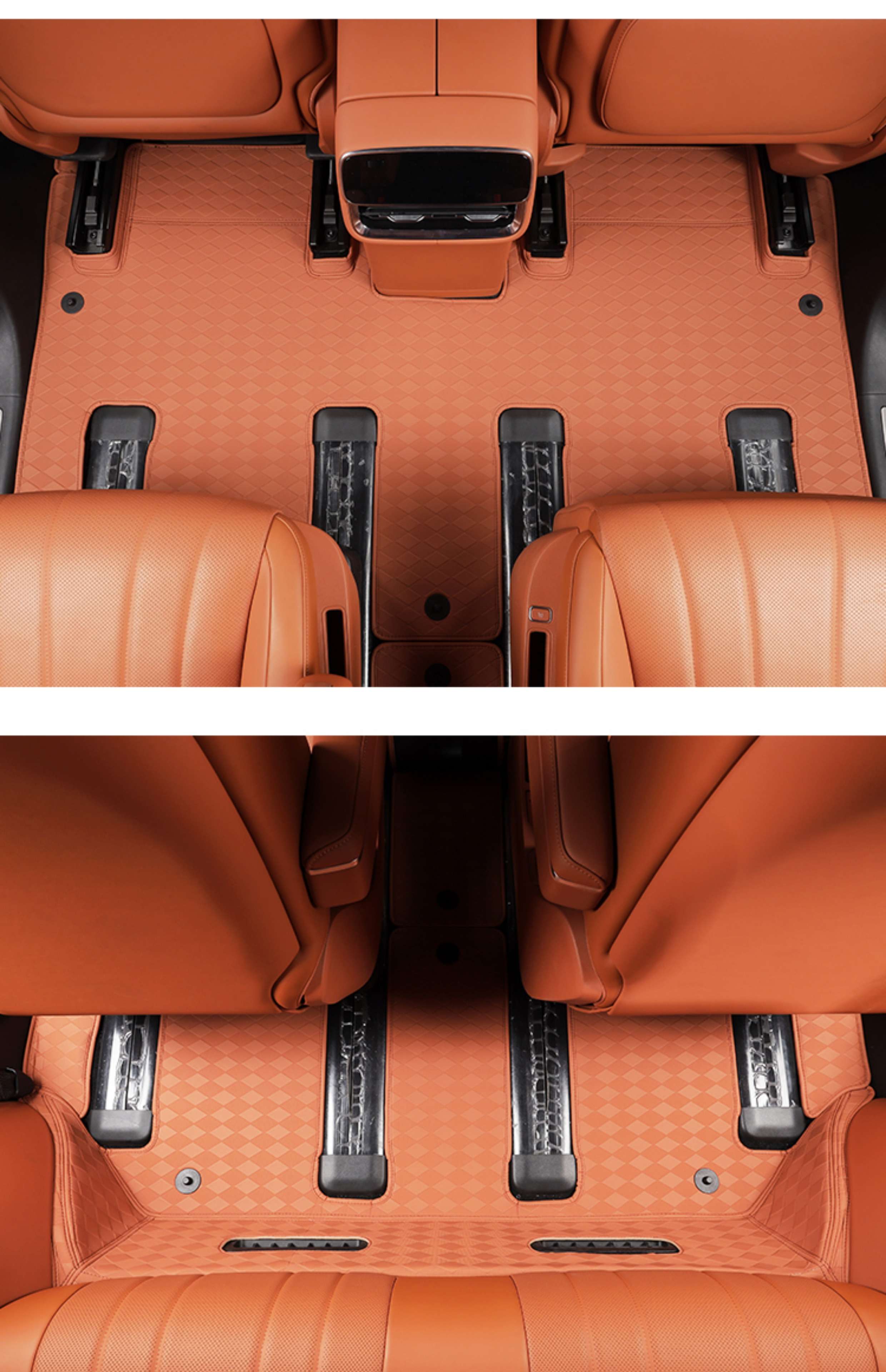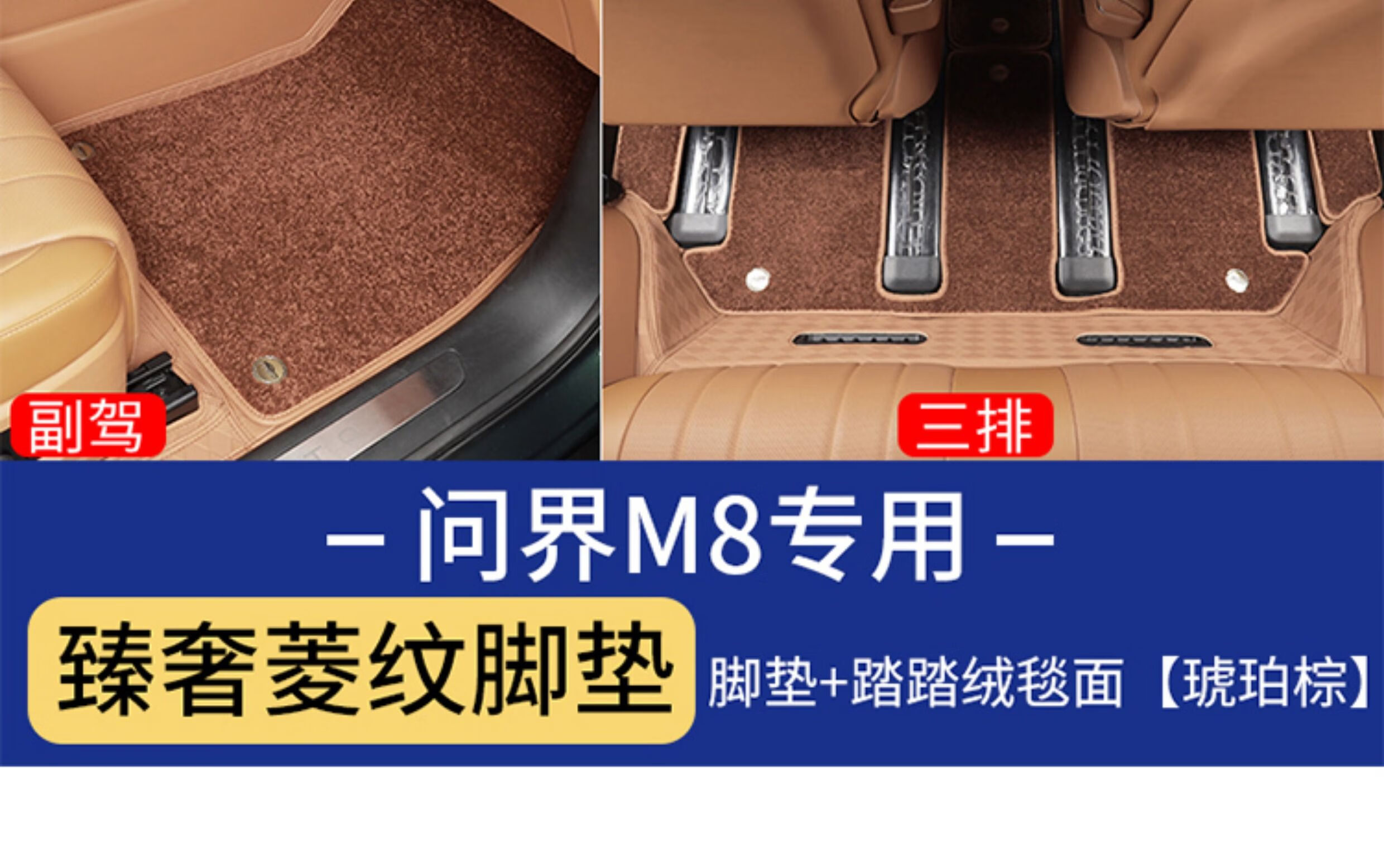 Suitable for Wenjie M8 foot pads, fully surrounded by leather, double-layer carpet, waterproof foot mats, interior supplies of the same color (6 seats), Wenjie M8 rhombus leather foot pads + treaded velvet carpet surface, black 9