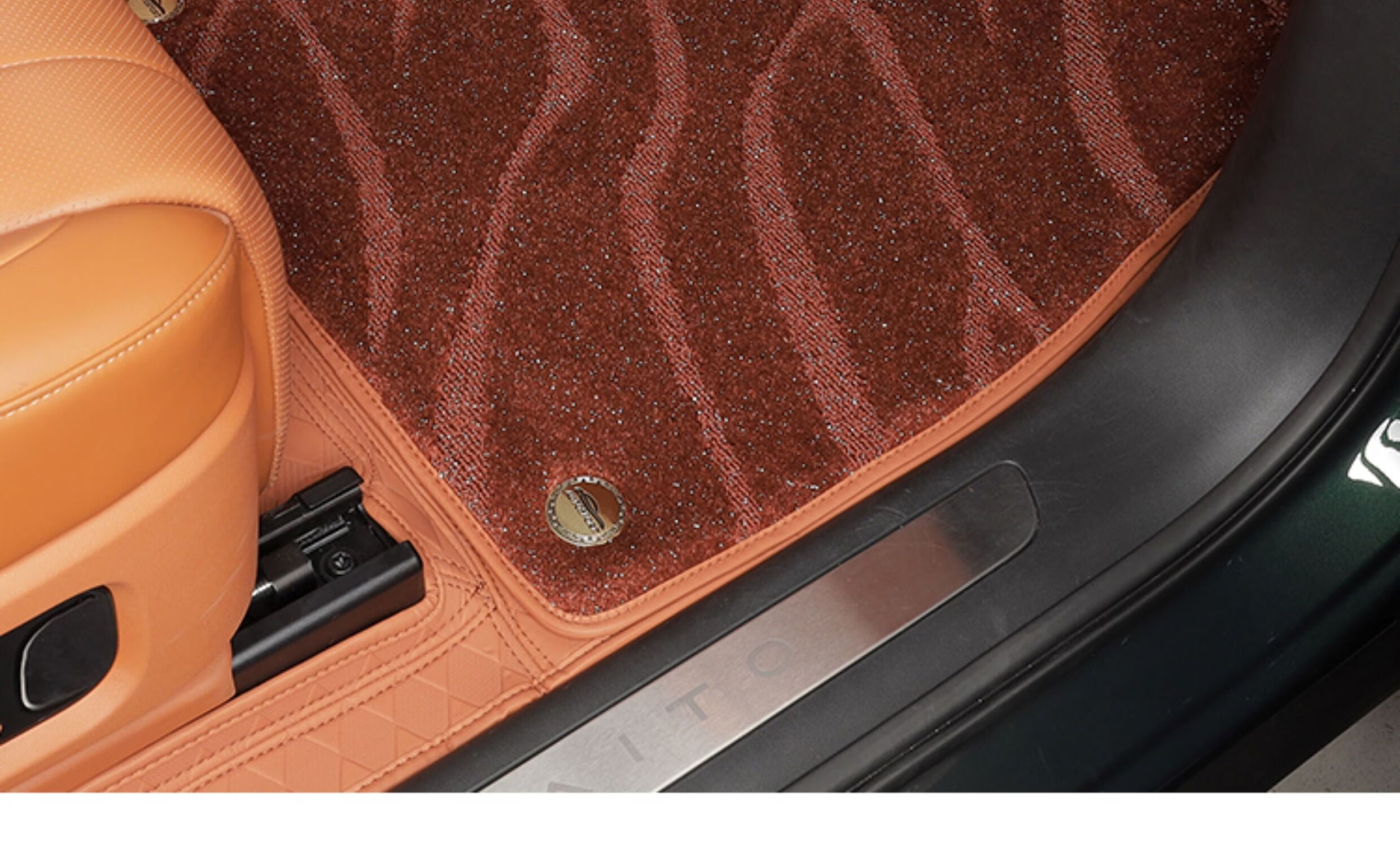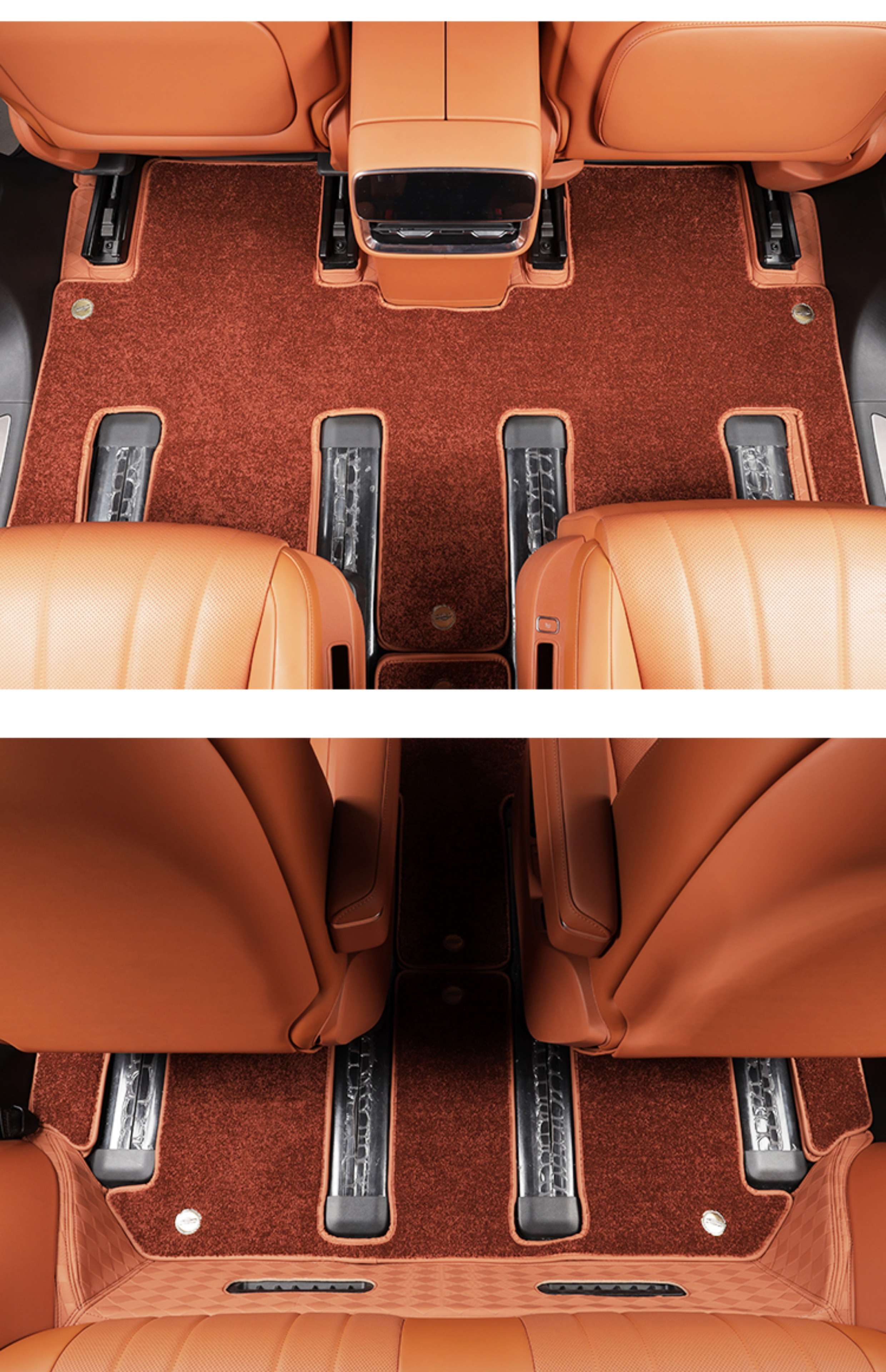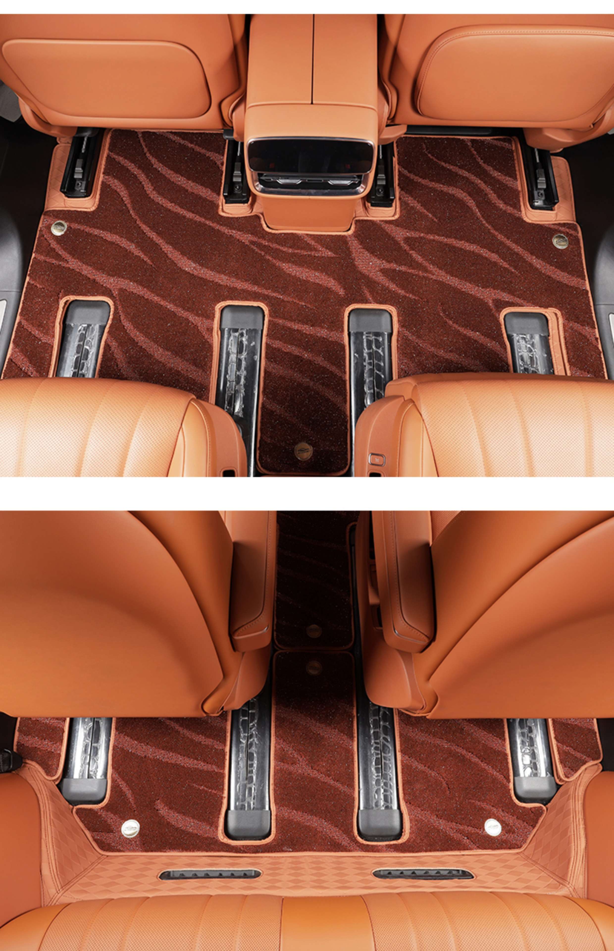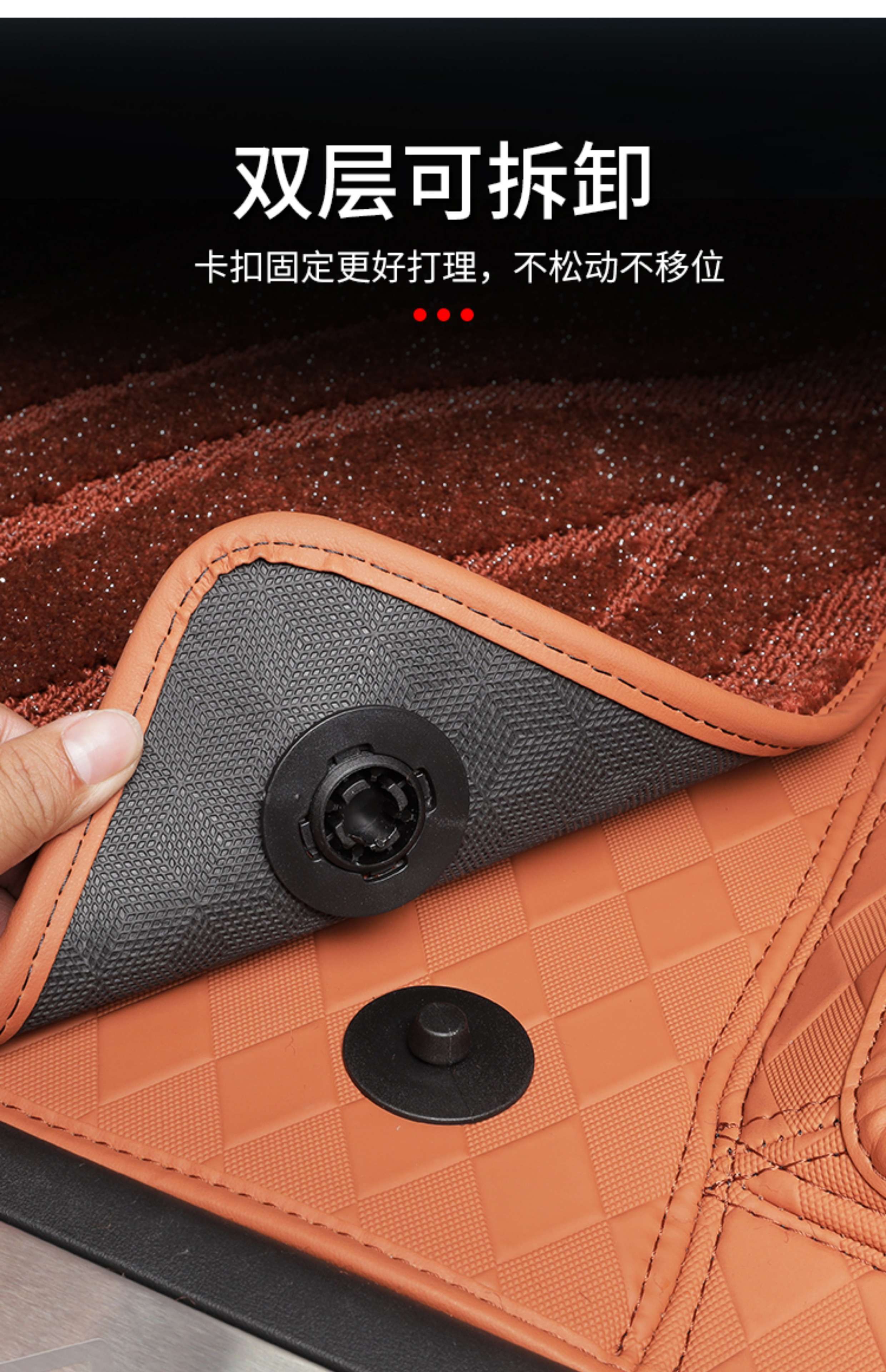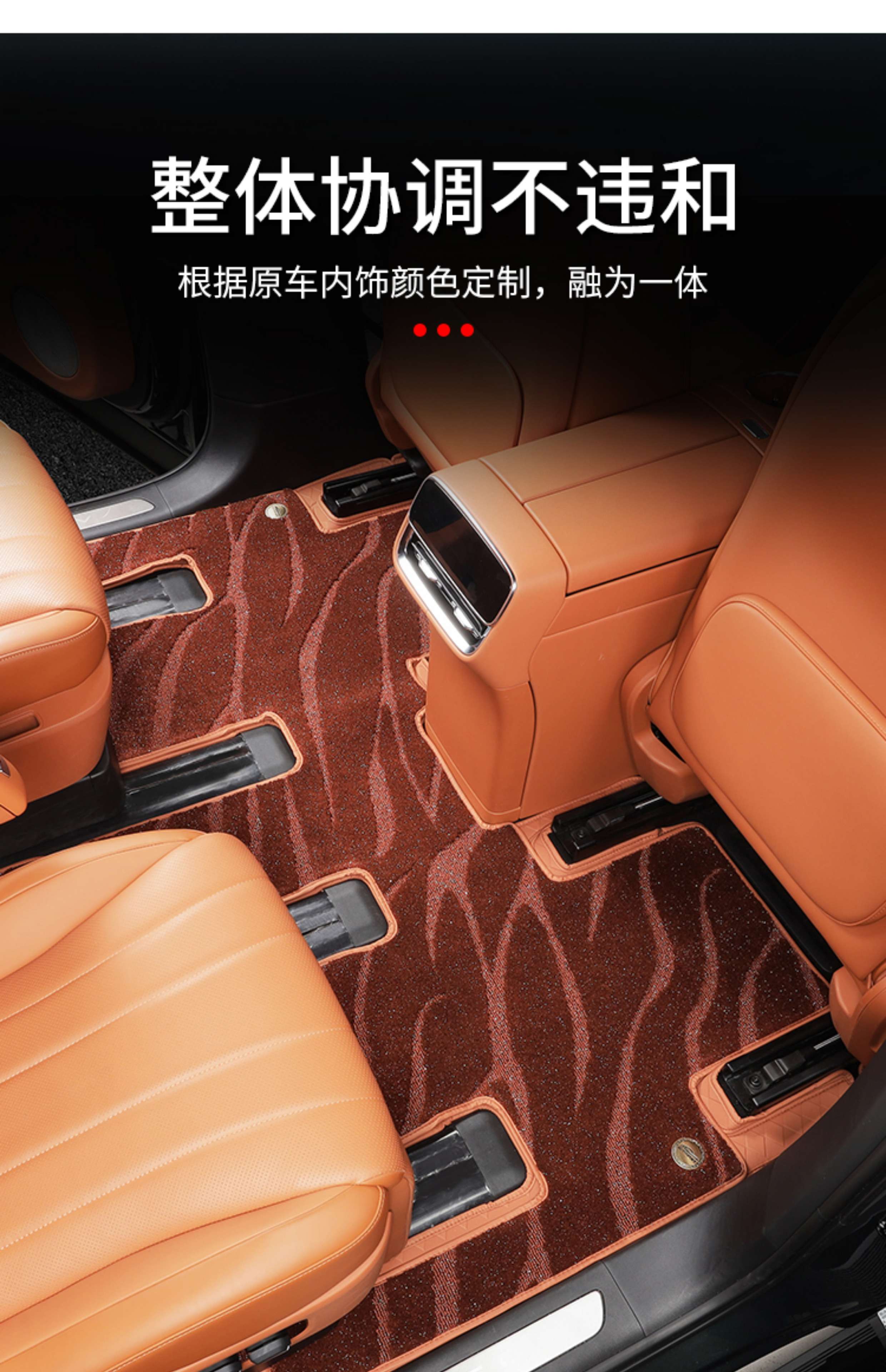 Suitable for Wenjie M8 foot pads, fully surrounded by leather, double-layer carpet, waterproof foot mats, interior supplies of the same color (6 seats), Wenjie M8 rhombus leather foot pads + treaded velvet carpet surface, black 9