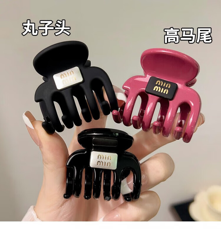 Xiao Panda Temperament High Ponytail Clip for Women Half-tied Hair Clip on the Back of the Head Pumpkin Clip Shark Clip Hair Clip Headwear Black Frosted Letter Clip