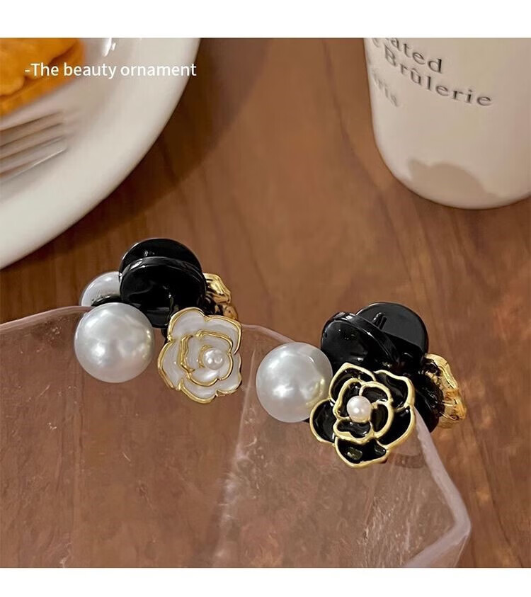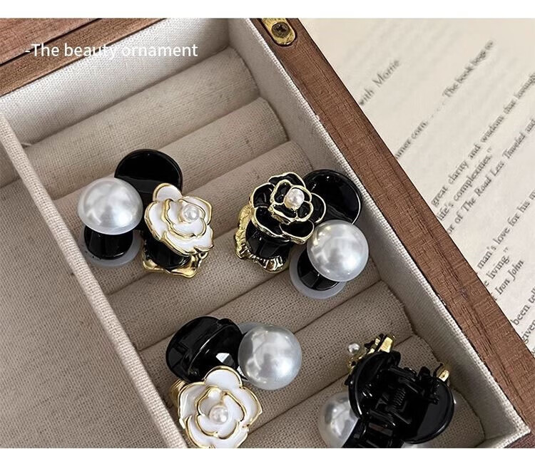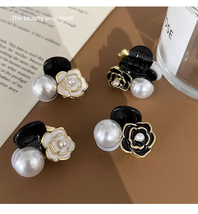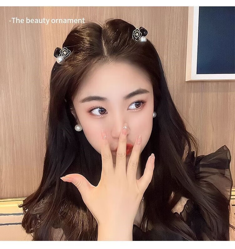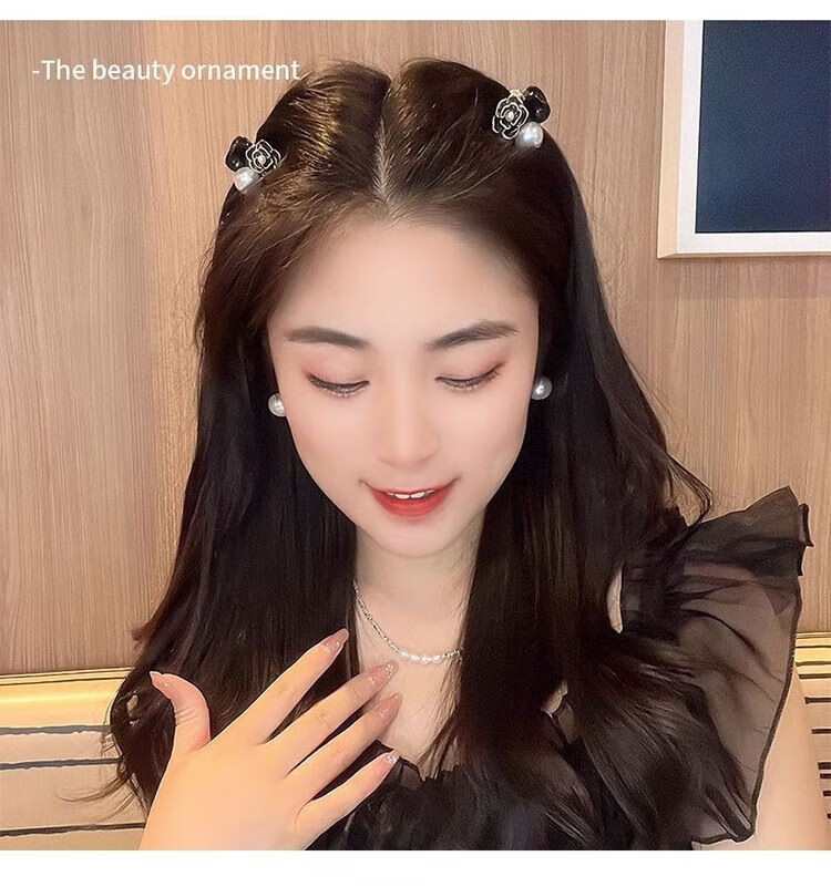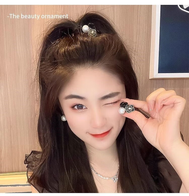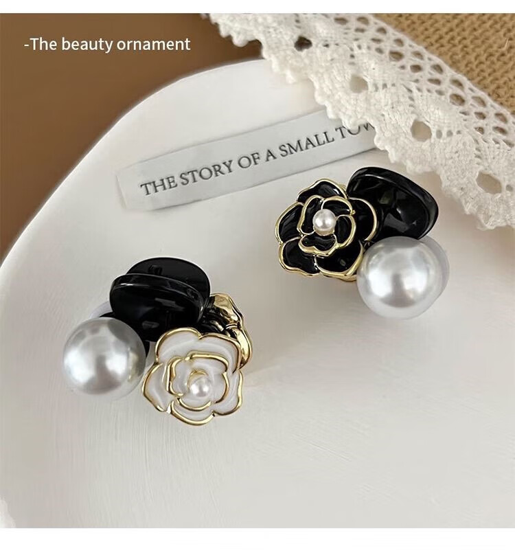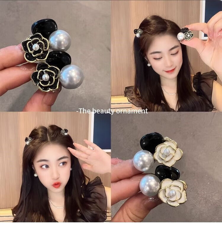 Xiao Panda 2025 New Retro Camellia Pearl Mini Small Clip Female Bangs Broken Hair Clip Princess Hair Card Headdress White Camellia + Pearl Pair