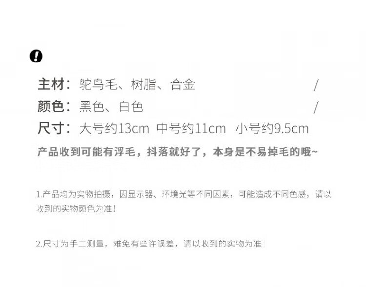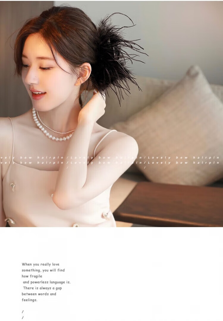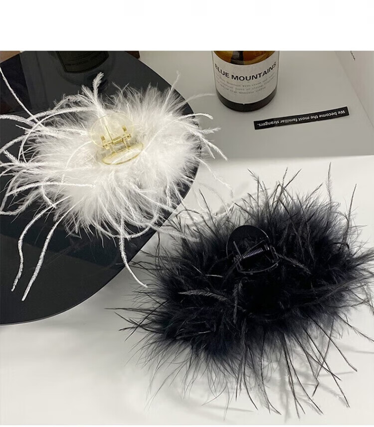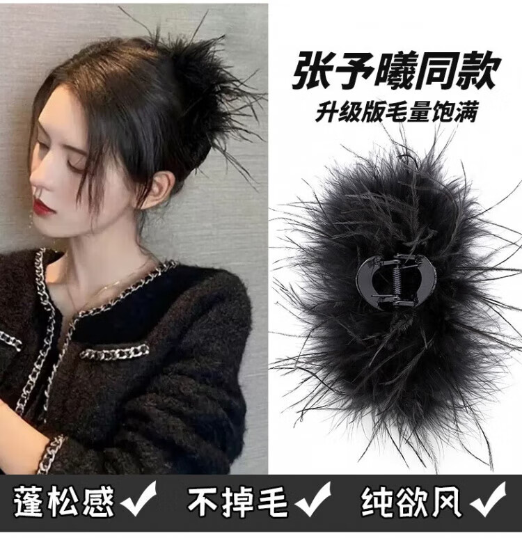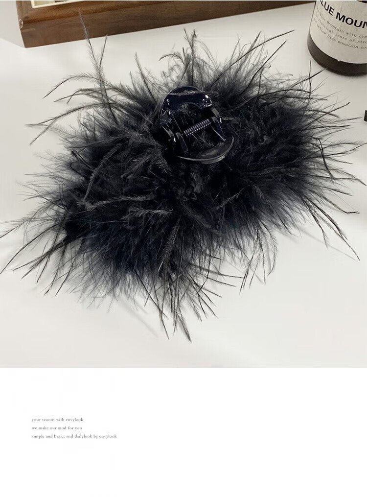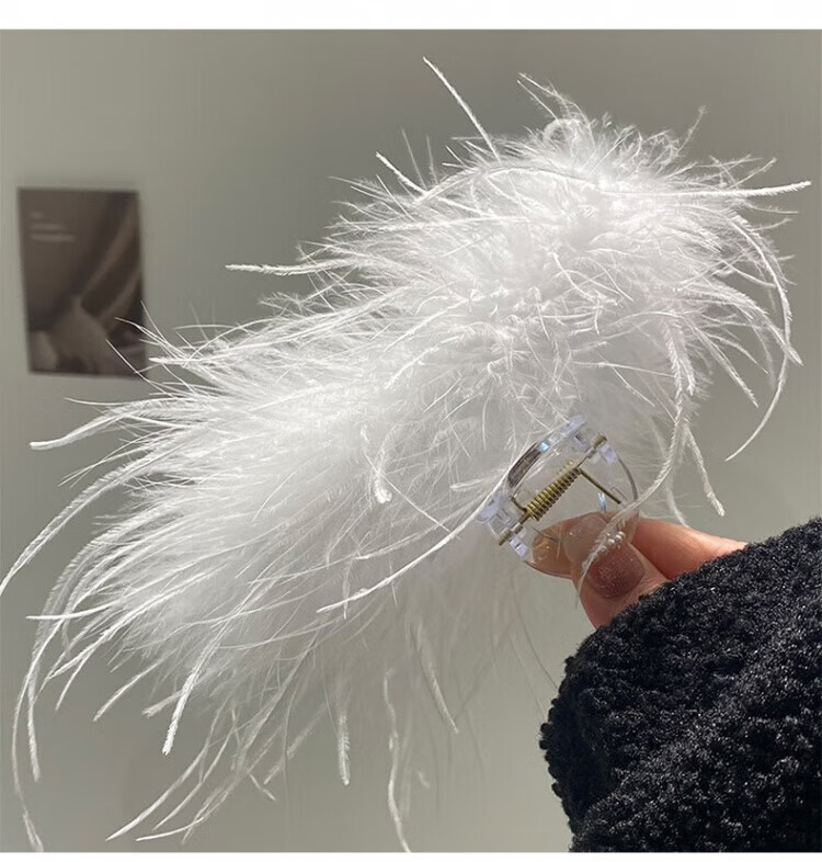 Xiaopanda Korean style ins style feather gripping hairpin for women ostrich hair clip for the back of the head plush shark clip hairpin black extra large size 13cm extra large base clip