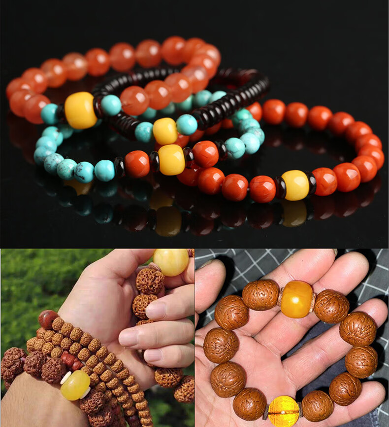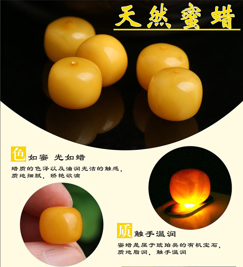 Xidian natural raw mineral beeswax old-style barrel beads single beads loose beads spaced beads Buddha beads bracelet single bead amber bracelet accessories diameter about 7mm single bead