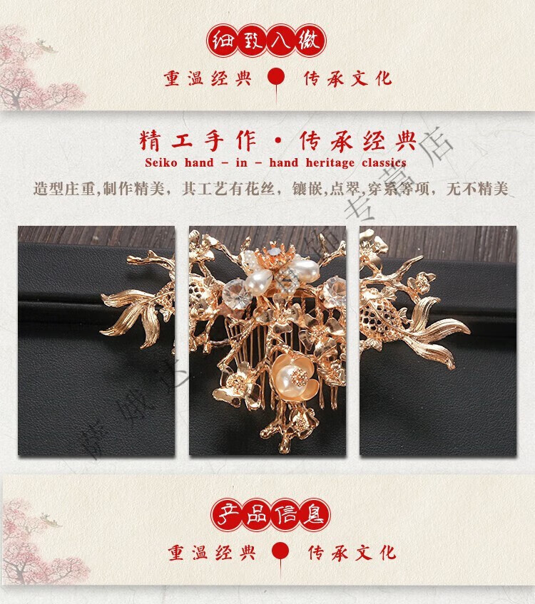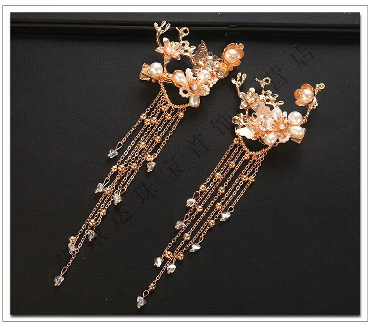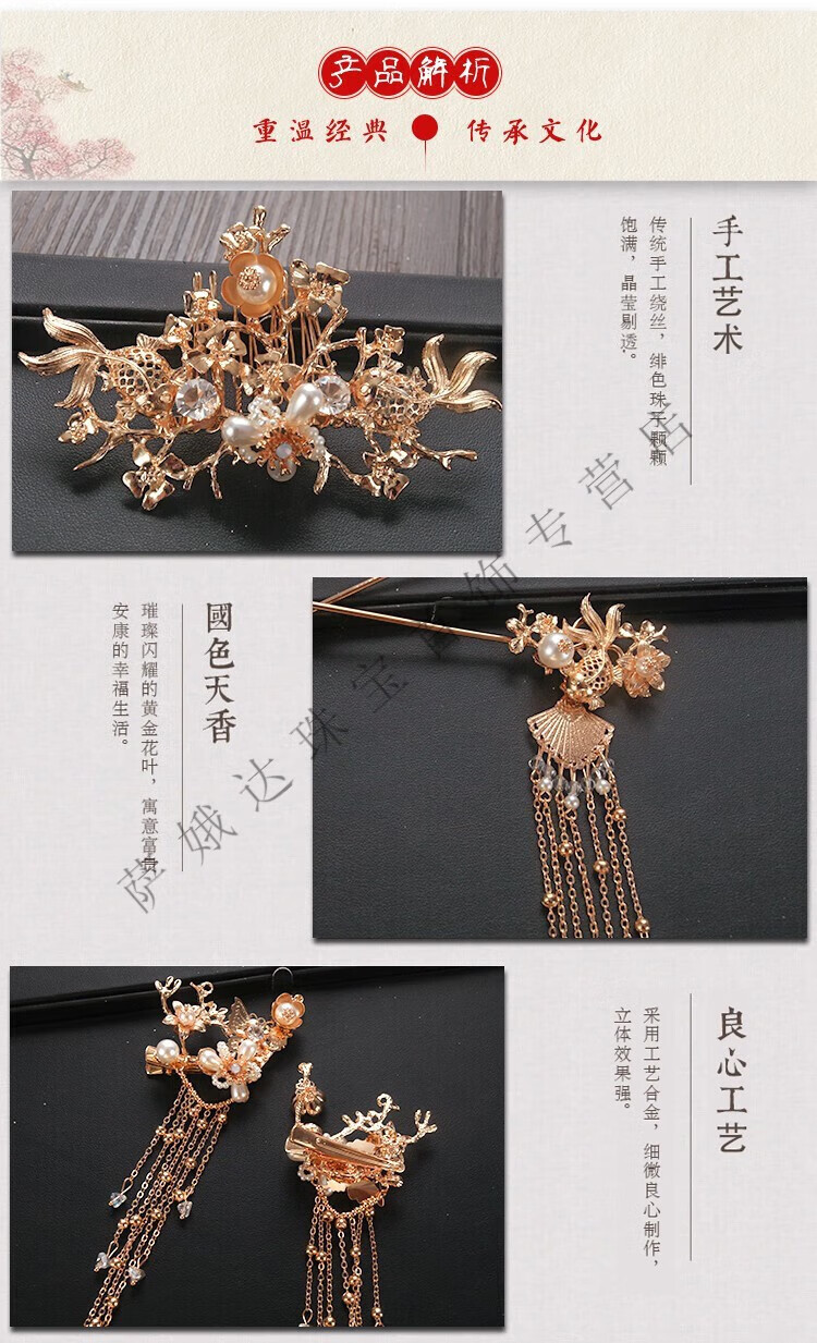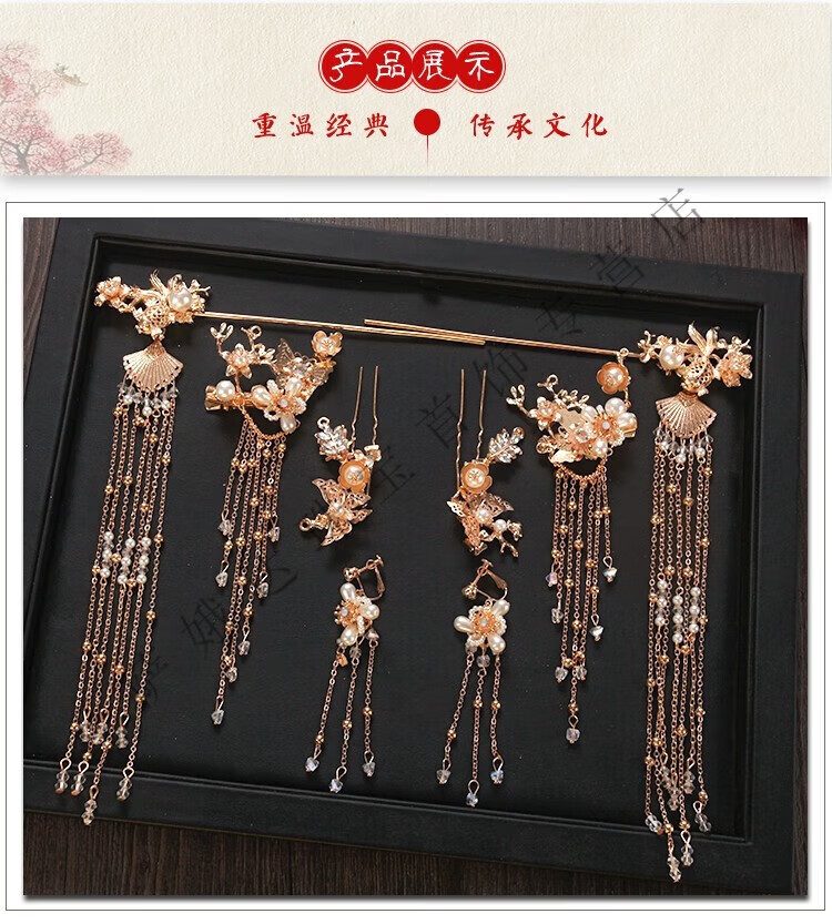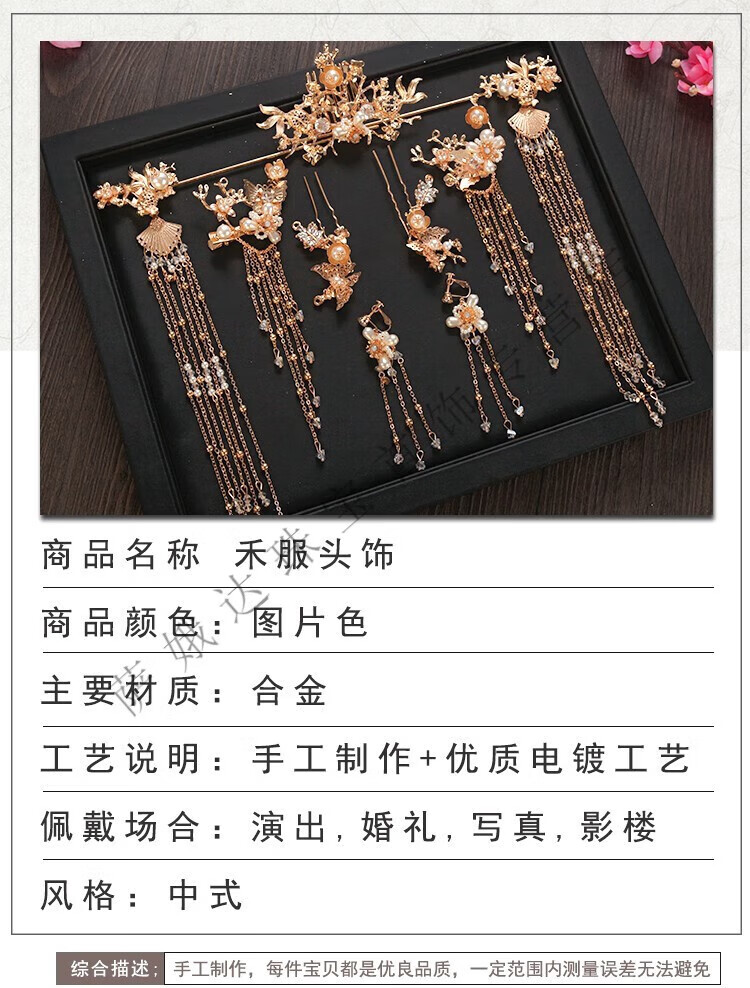 Hengjiu Ye Lao Phoenix Gold Store Style Chinese Xiuhe Clothing Headwear Bride Wedding Attractive Phoenix Crown Hanfu Full Set Wedding Hair Accessories Picture Set (Ear Clip Style)