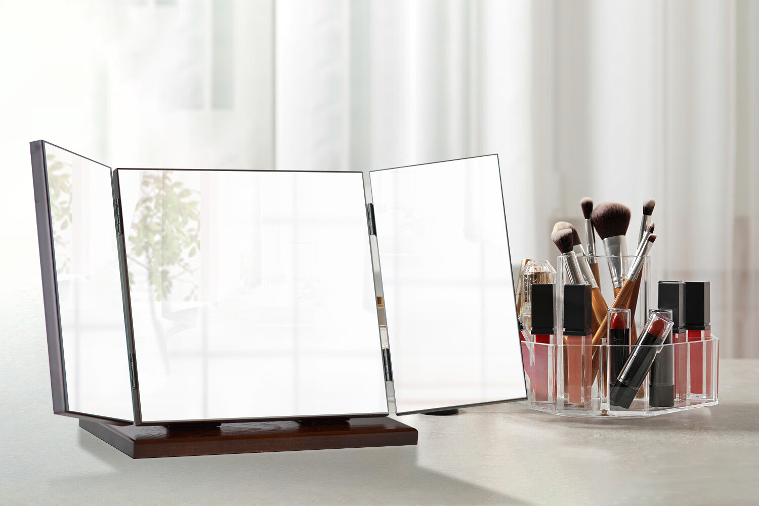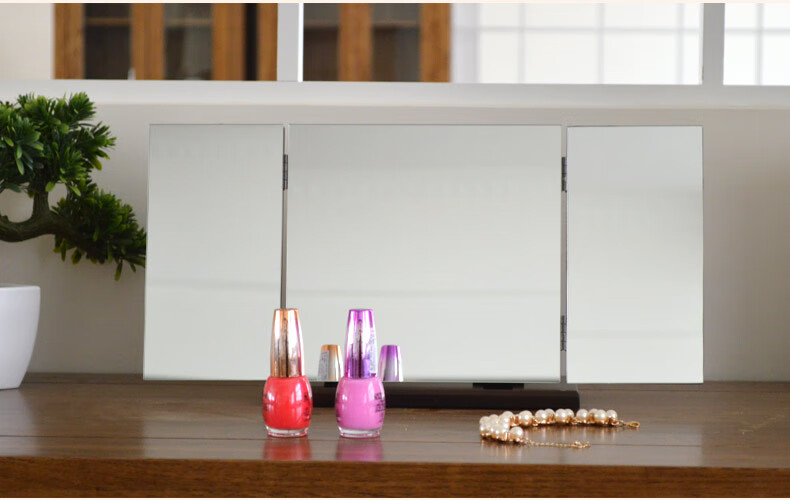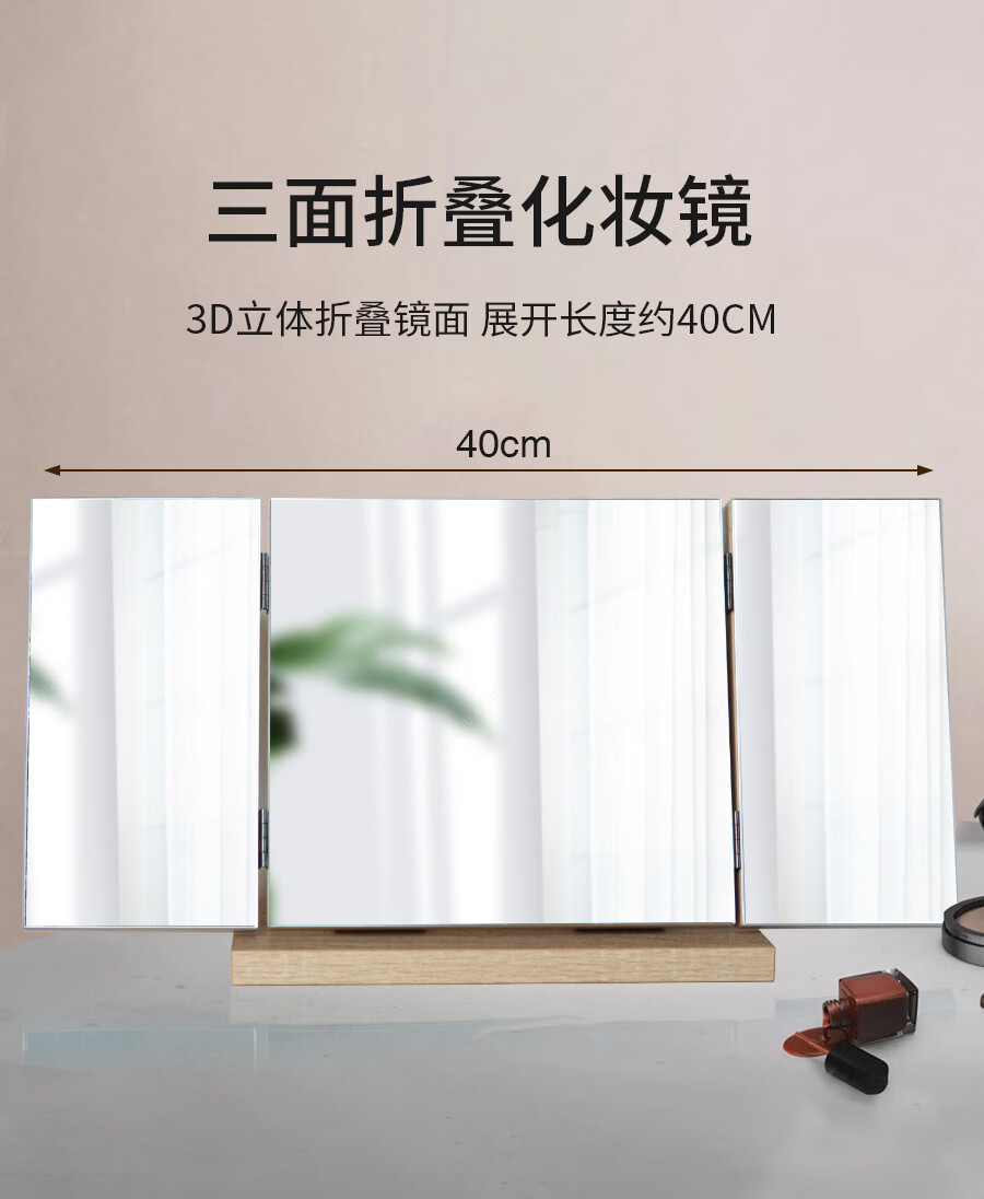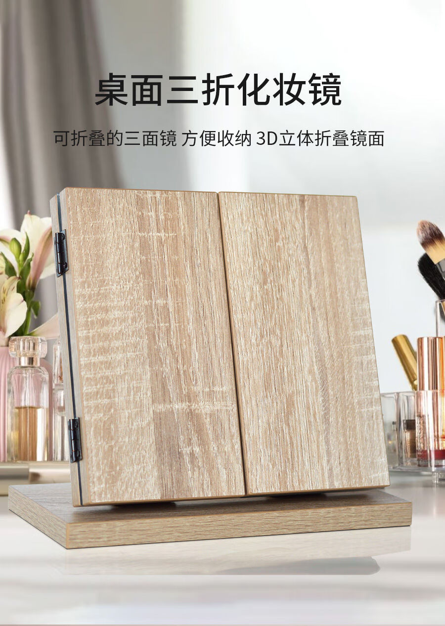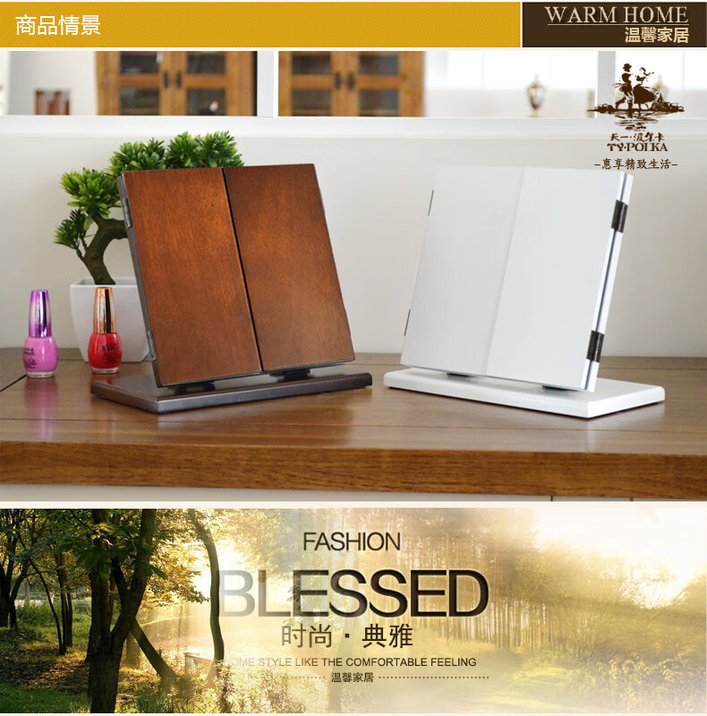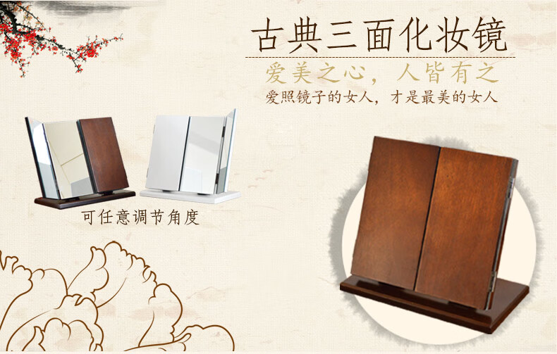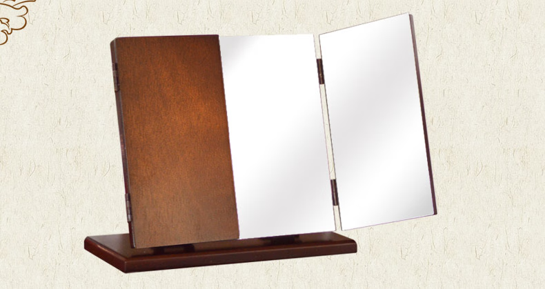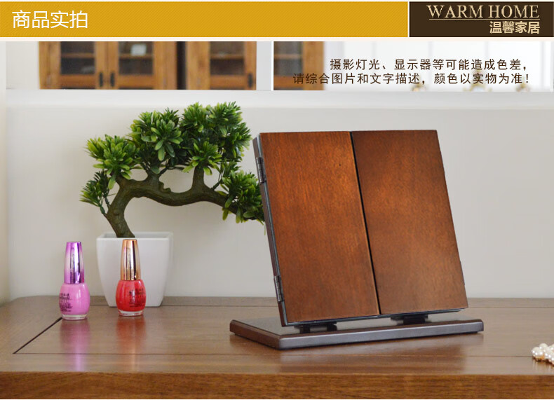 Ins makeup mirror creative makeup mirror Chinese style personalized mirror folding antique wood red walnut color without light