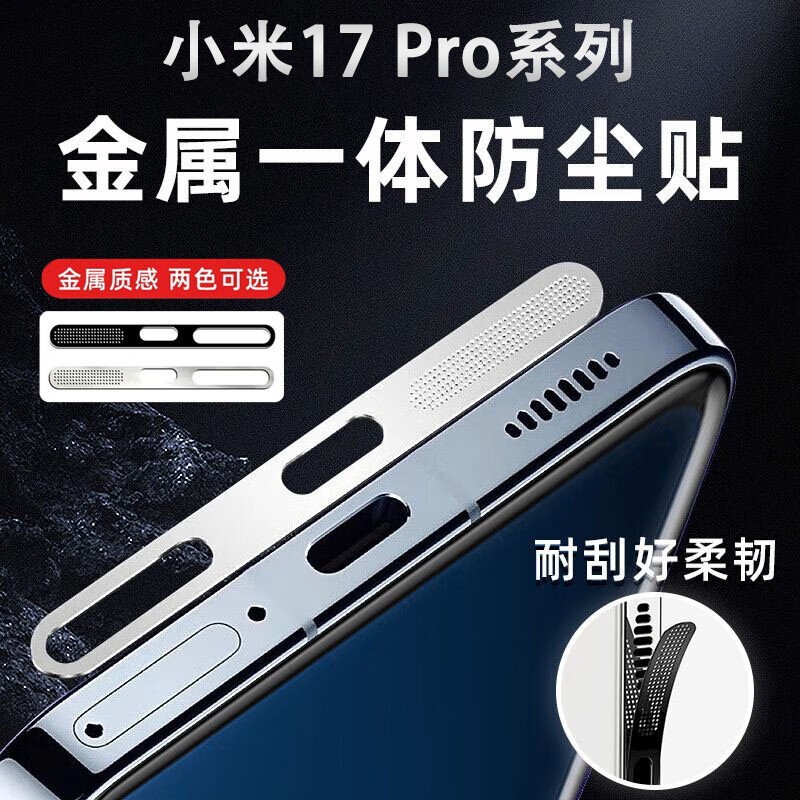 Chenzu is suitable for Xiaomi 17 Pro mobile phone, metal integrated dust filter, speaker dustproof sticker, bell mouth protector, anti-dust metal protective film, dustproof plug, mobile phone accessories, Xuanjing Black 2 pieces, metal dust filter + gifts